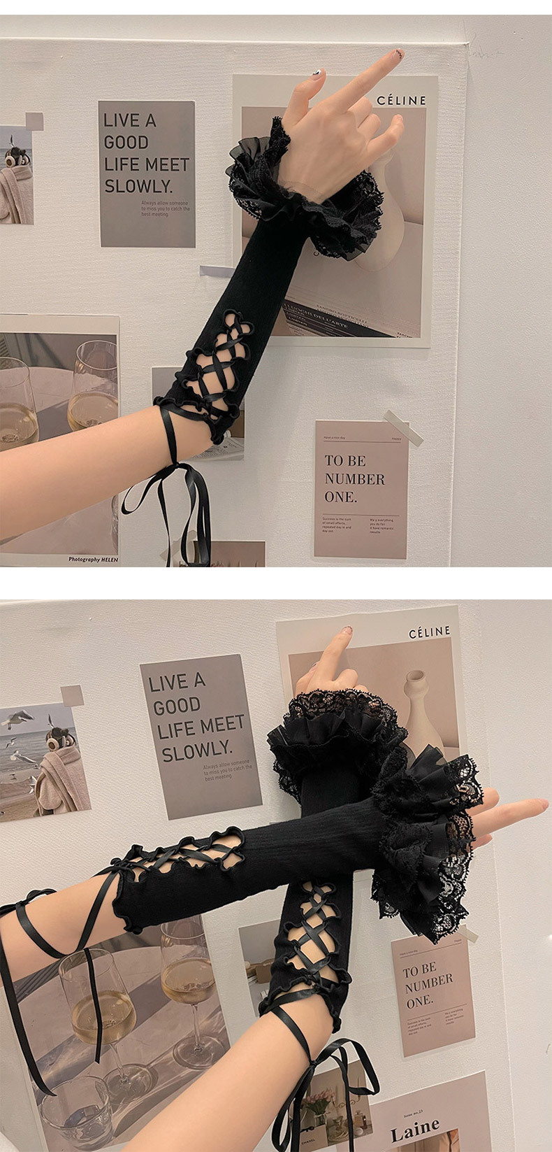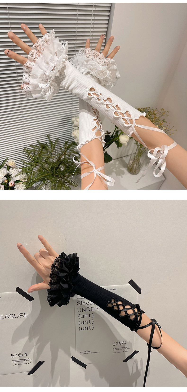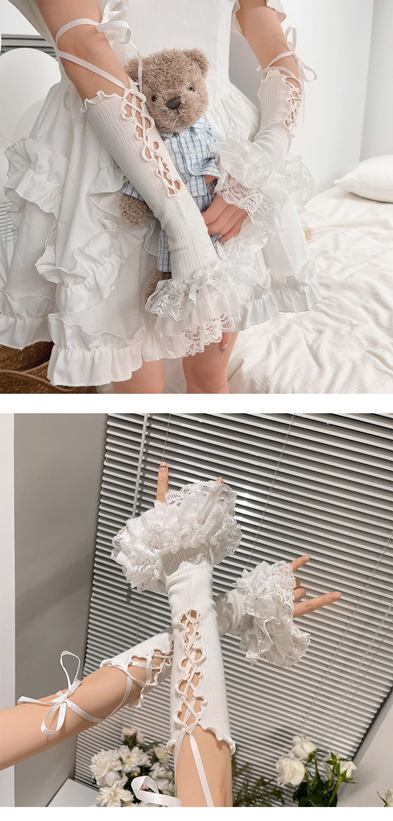 밀레니엄 y2k 핫 걸 발레 스트랩 레이스 로리타 소녀 애니메이션 선 스크린 핸드 슬리브 jk 장갑스토어 가기