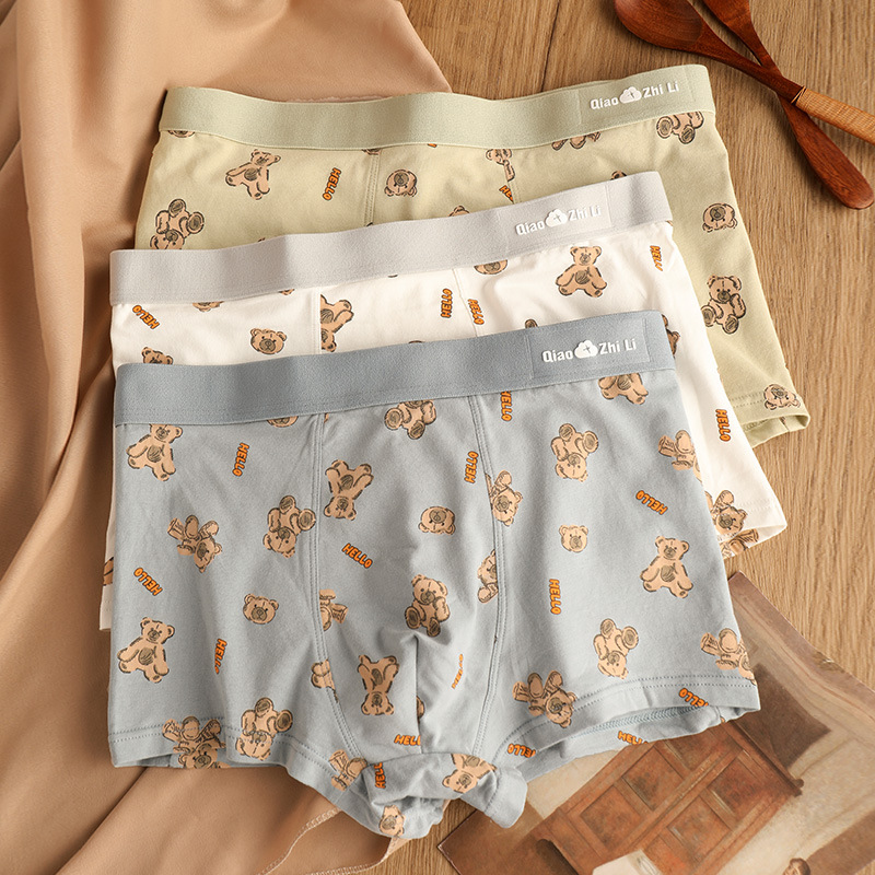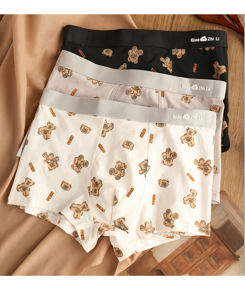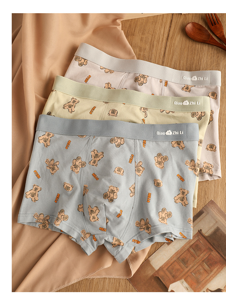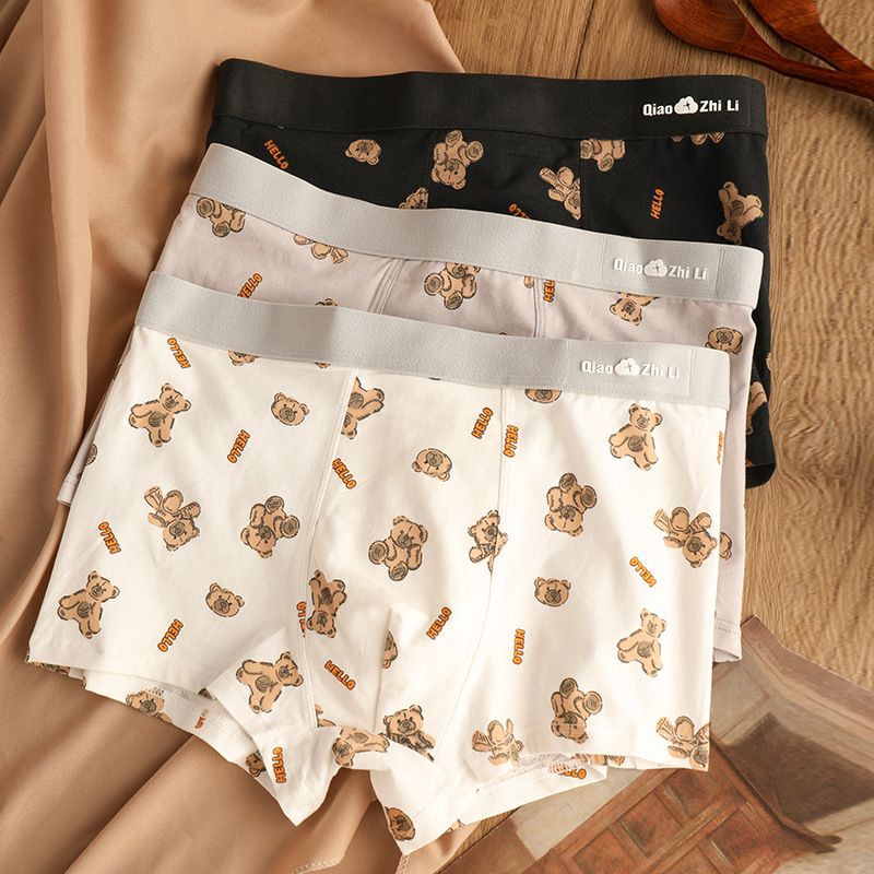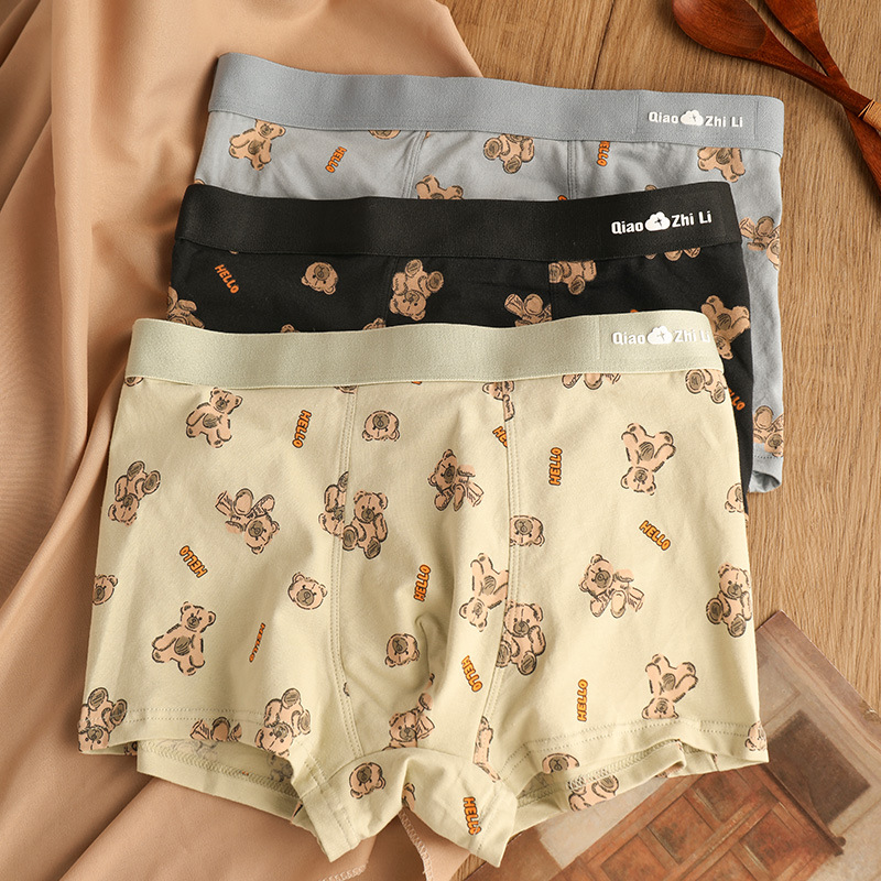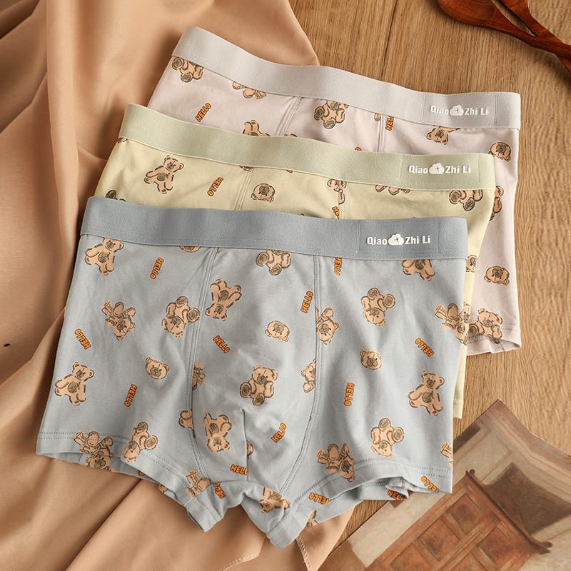 면 남자 속옷 남자의 복서 바지 귀여운 만화 곰 통기성 중간 허리 젊은 남자의 복서 바지스토어 가기