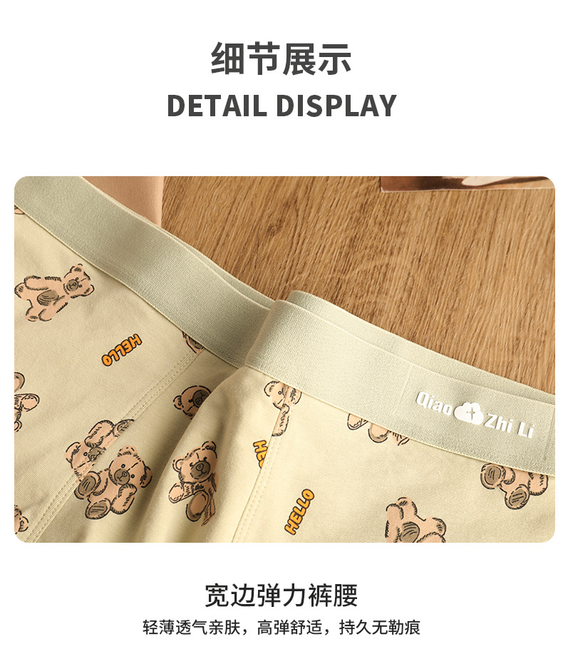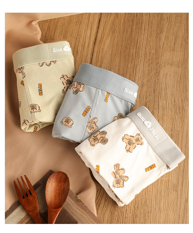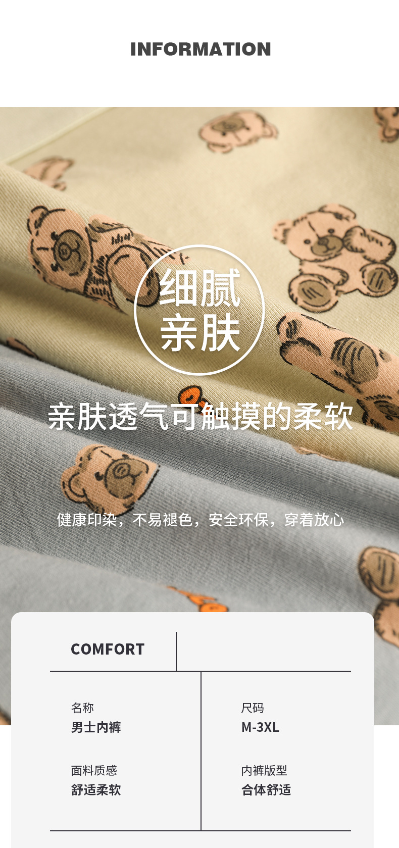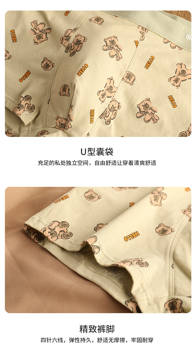 면 남자 속옷 남자의 복서 바지 귀여운 만화 곰 통기성 중간 허리 젊은 남자의 복서 바지스토어 가기
