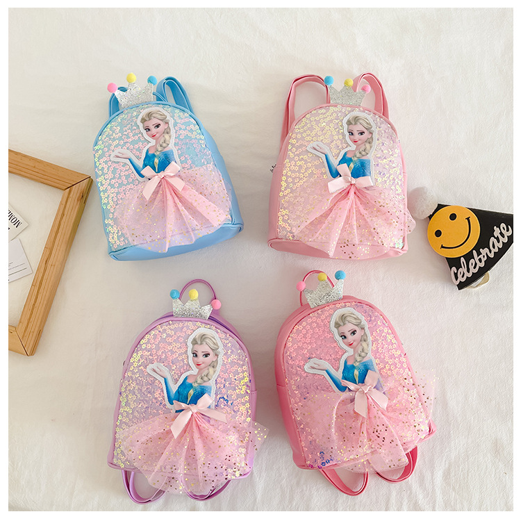 어린이 공주 아이샤 배낭 유치원 아기 미니 학교 가방 만화 귀여운 스팽글 가방 여아 배낭