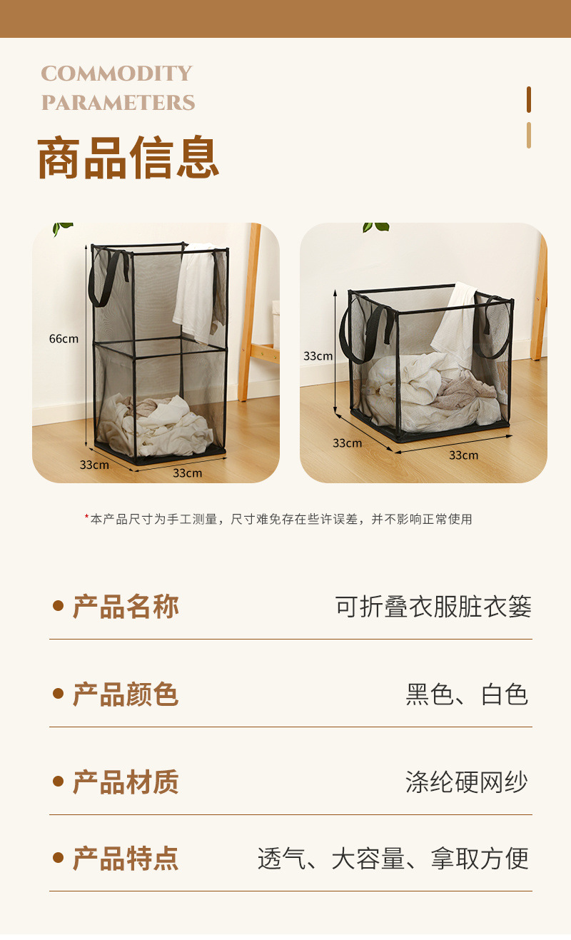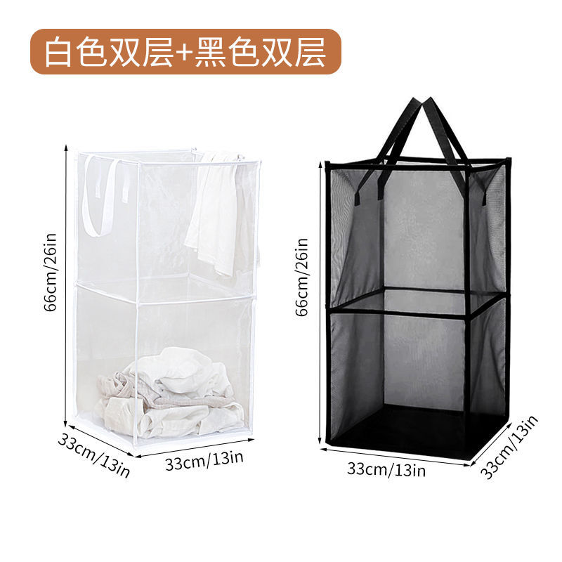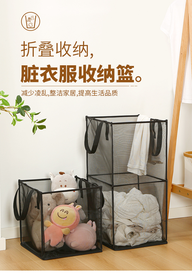 • 스퀘어 메쉬 더티 옷 바구니 [블랙]]