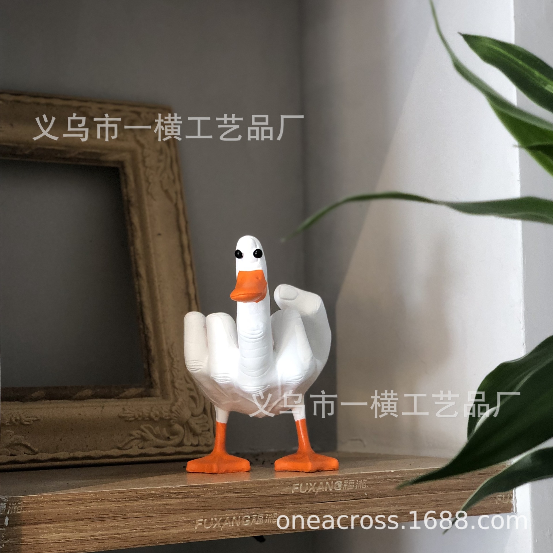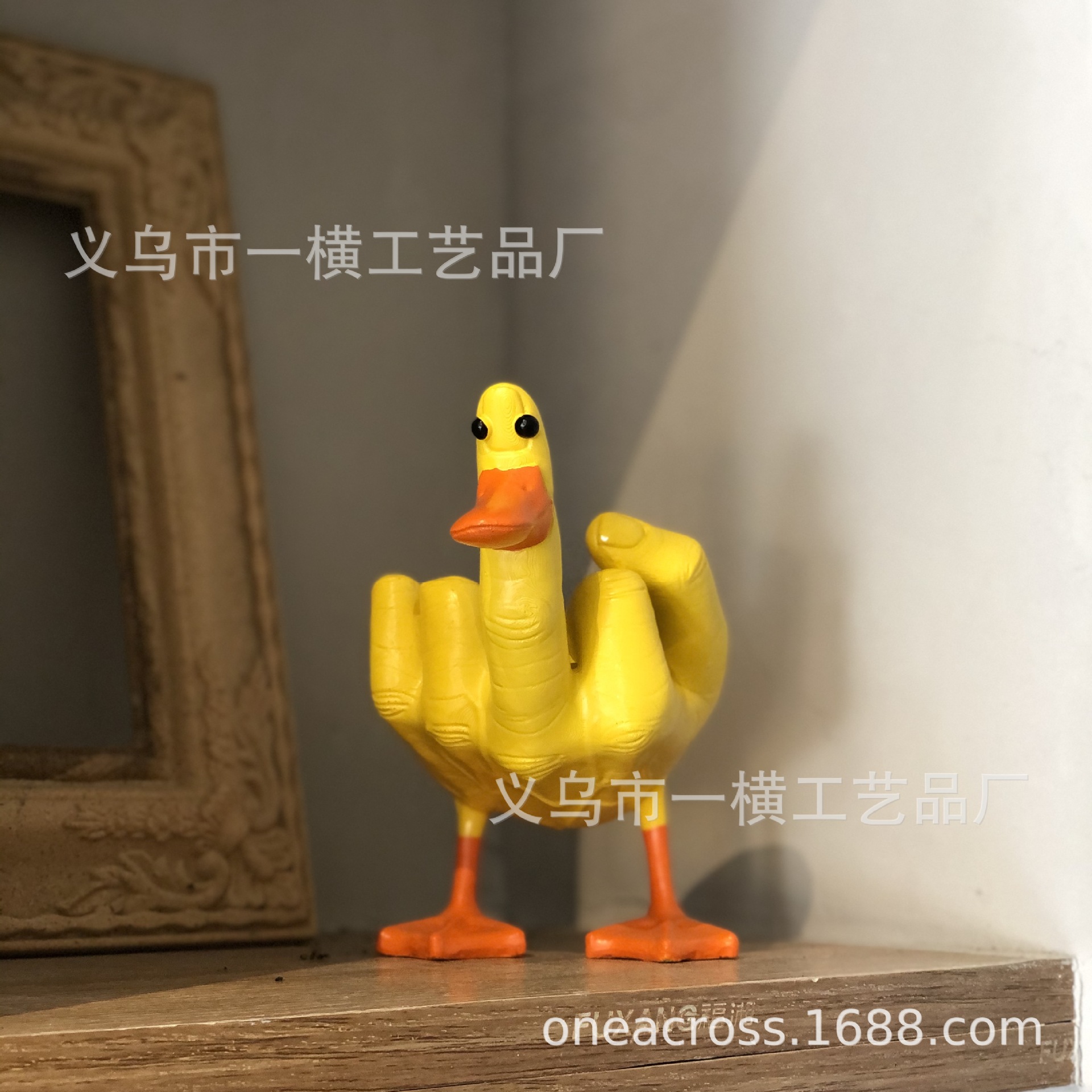 국경 간 가운데 손가락 오리 동상 수지 공예 장식품 크리 에이 티브 시뮬레이션 가운데 손가락 오리 장식 장식품 조각스토어 가기