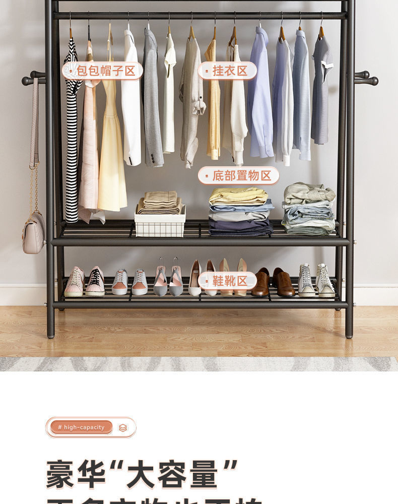옷걸이 굵은 바닥 침실 코트 랙 가정용 간단한 옷 건조 막대 기숙사 옷걸이 발코니 건조 랙