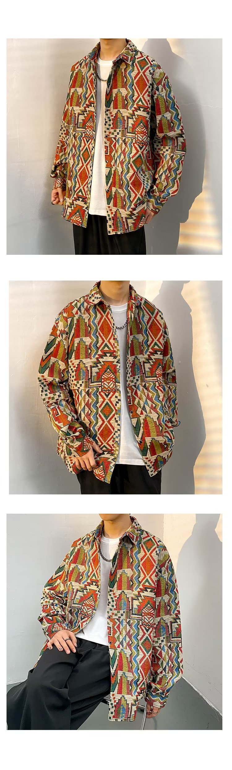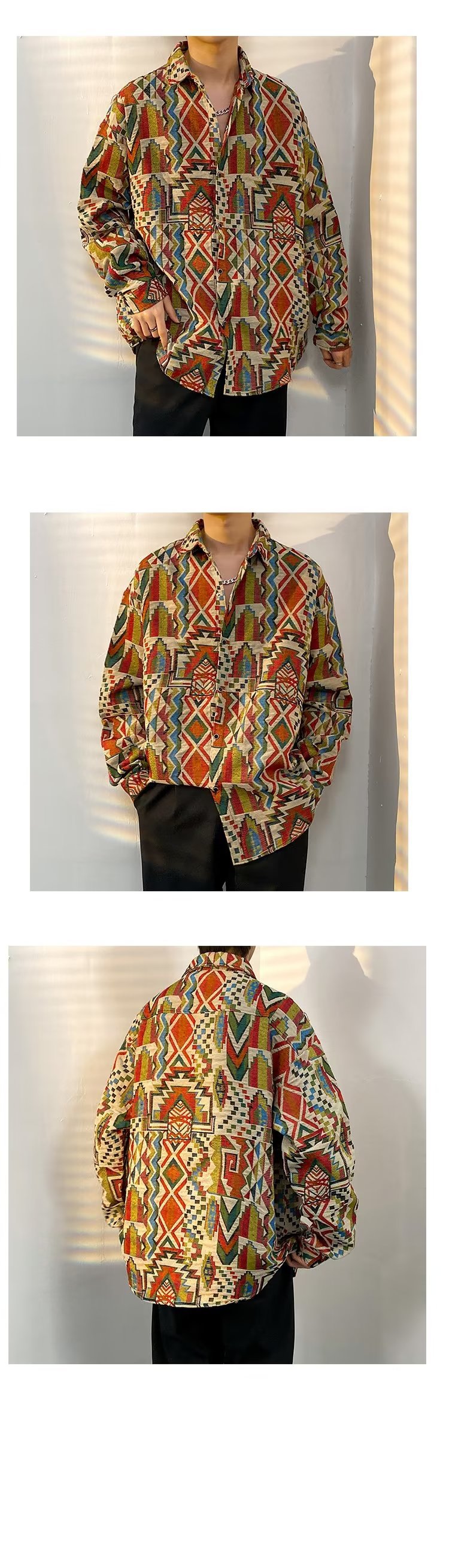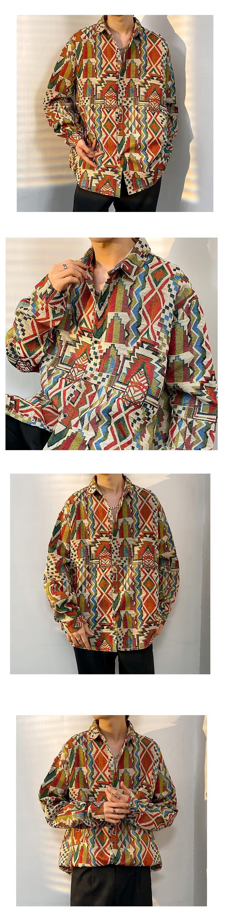 봄과 가을 빈티지 플라워 셔츠 2023 일본 스타일 남자의 잘 생긴 옷깃 긴 소매 홍콩 스타일 캐주얼 느슨한 셔츠 유행스토어 가기