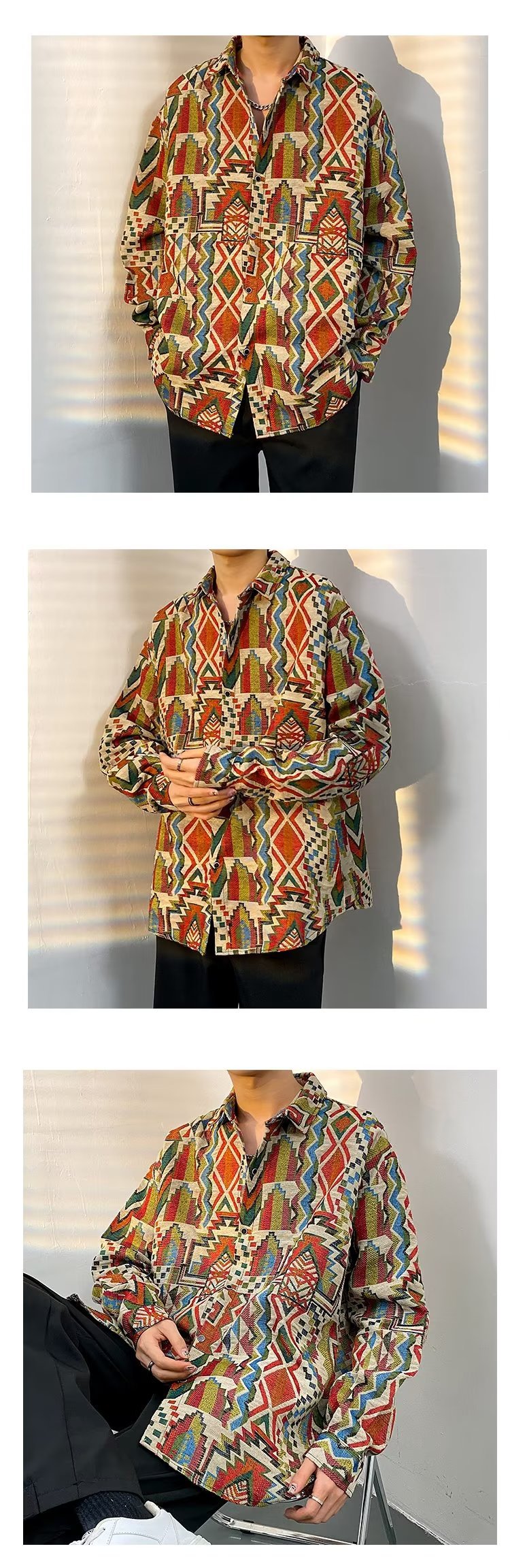 봄과 가을 빈티지 플라워 셔츠 2023 일본 스타일 남자의 잘 생긴 옷깃 긴 소매 홍콩 스타일 캐주얼 느슨한 셔츠 유행