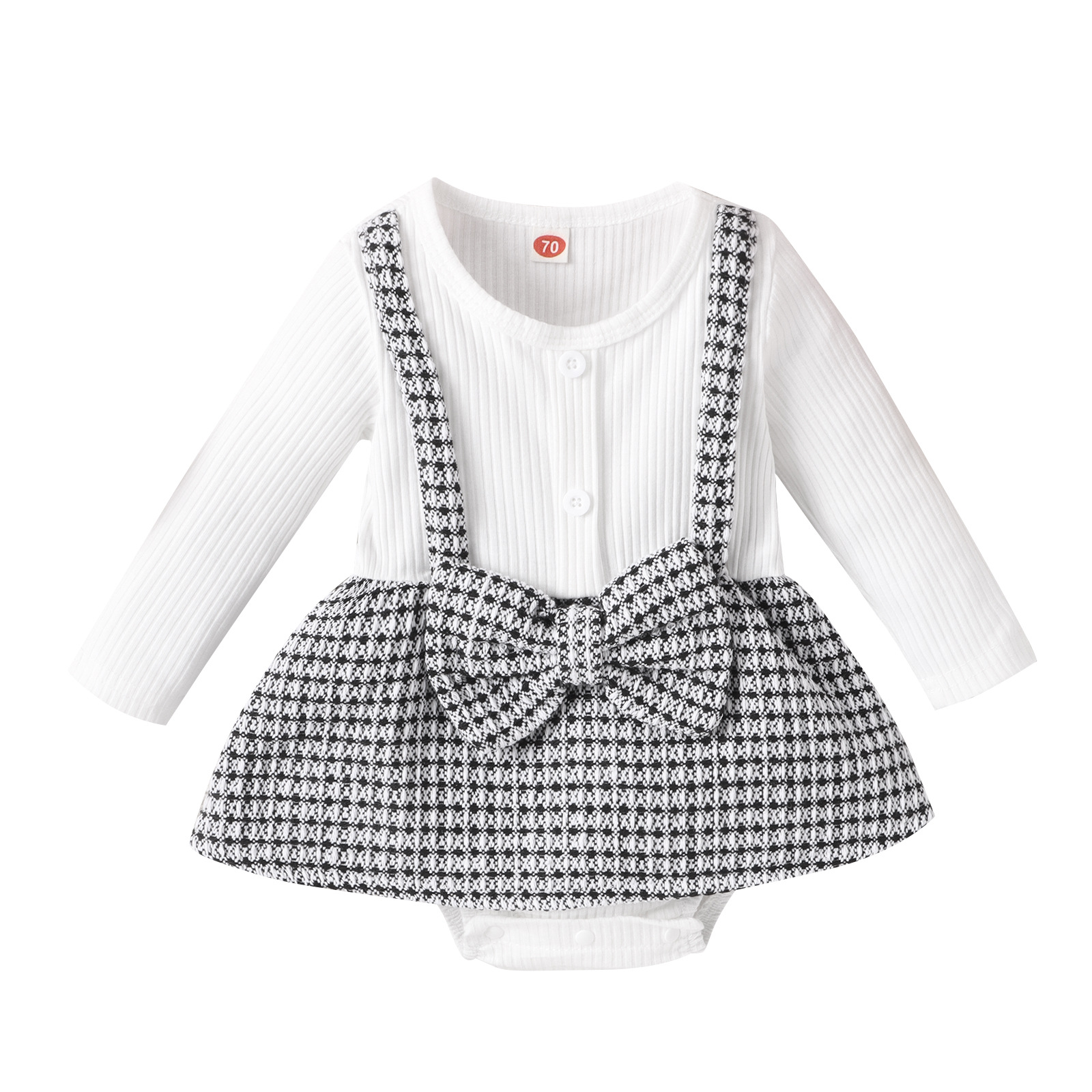 바오핀 아동복 한국식 아기 가을/겨울 스트랩 가짜 2 피스 클래식 격자 무늬 스커트 긴팔 아기 소녀의 토끼 옷스토어 가기