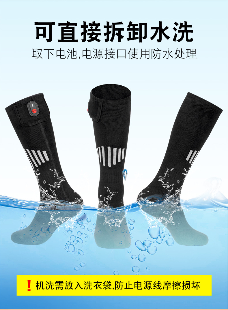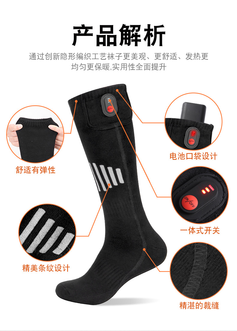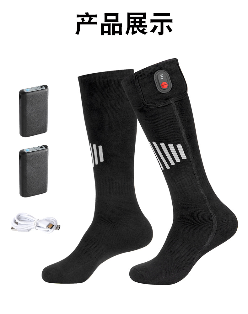 加热袜长筒纯棉电加热袜子滑雪休闲男女暖脚袜保暖充电自发热袜子