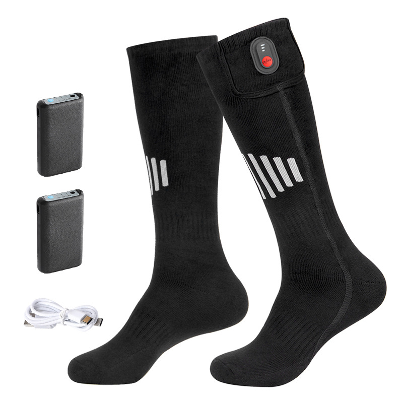 전기 가열 양말 긴 튜브형 순면 전기 가열 양말 스키 레저용 남녀 공용 발 따뜻하게 하는 양말 충전식 자가 발열 양말