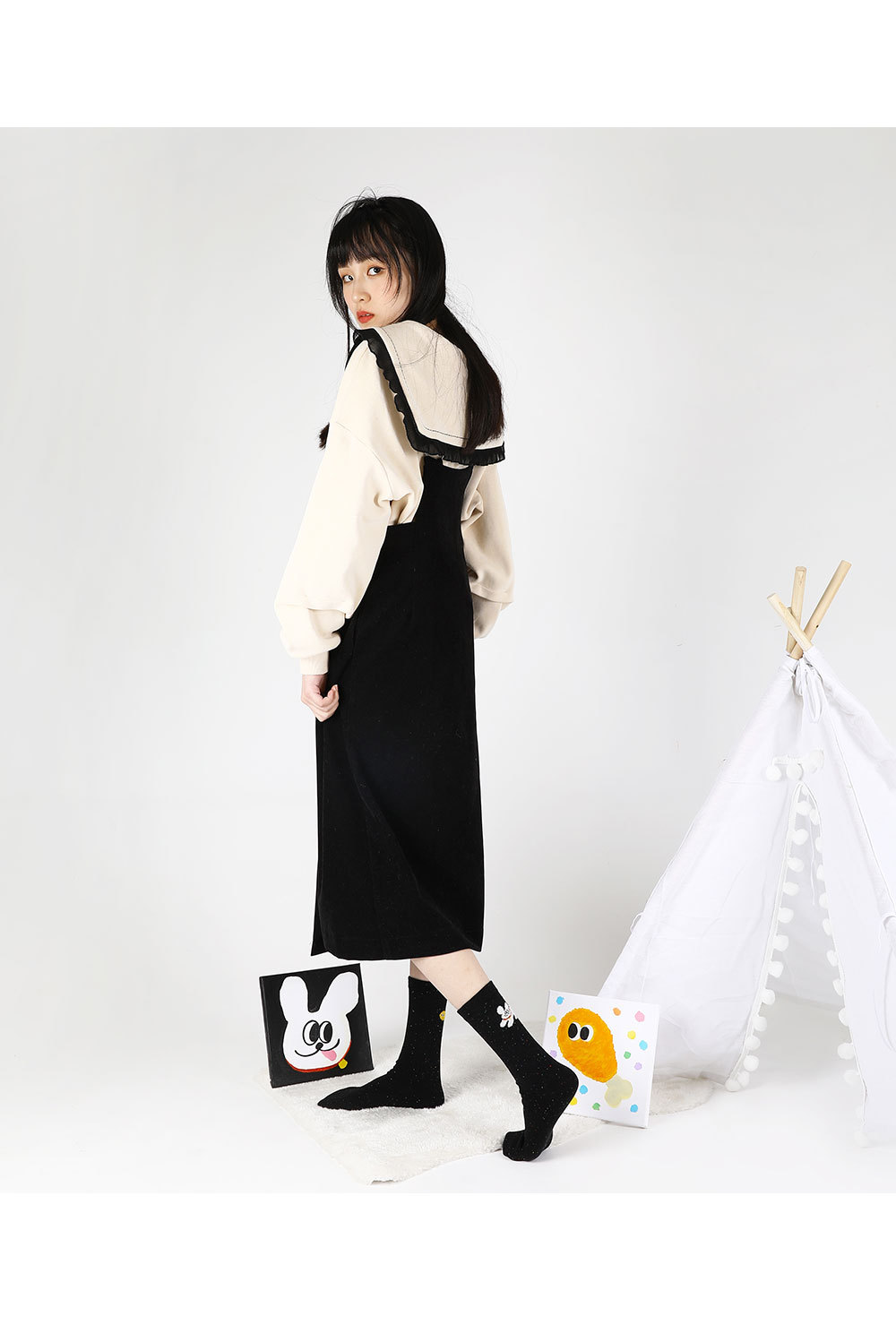 봄 신상품 일본식 심플하고 귀여운 강아지 종아리 양말 학생용 인스타 인터넷 연예인 트렌디한 여성용 종아리 양말