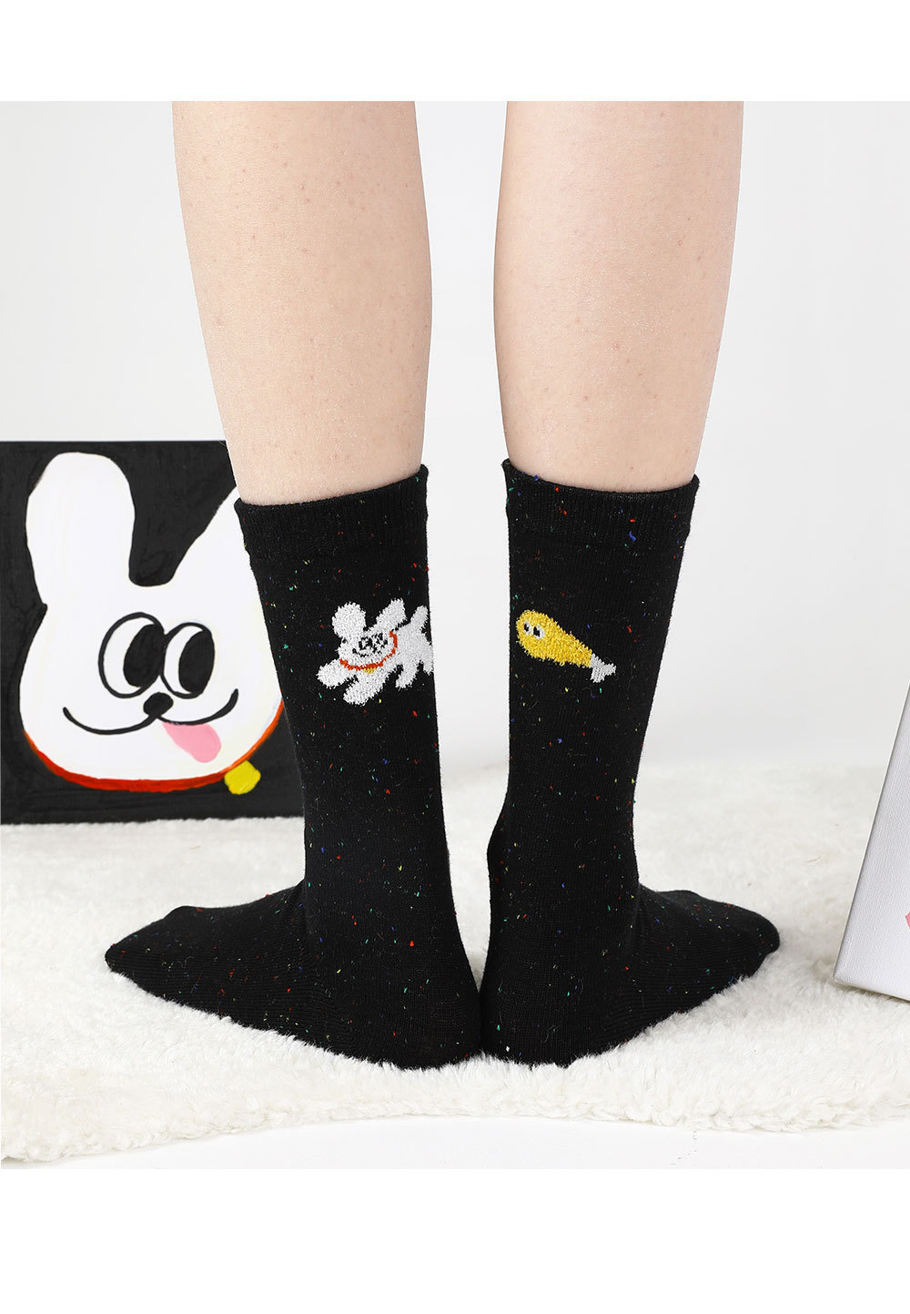 봄 신상품 일본식 심플하고 귀여운 강아지 종아리 양말 학생용 인스타 인터넷 연예인 트렌디한 여성용 종아리 양말스토어 가기