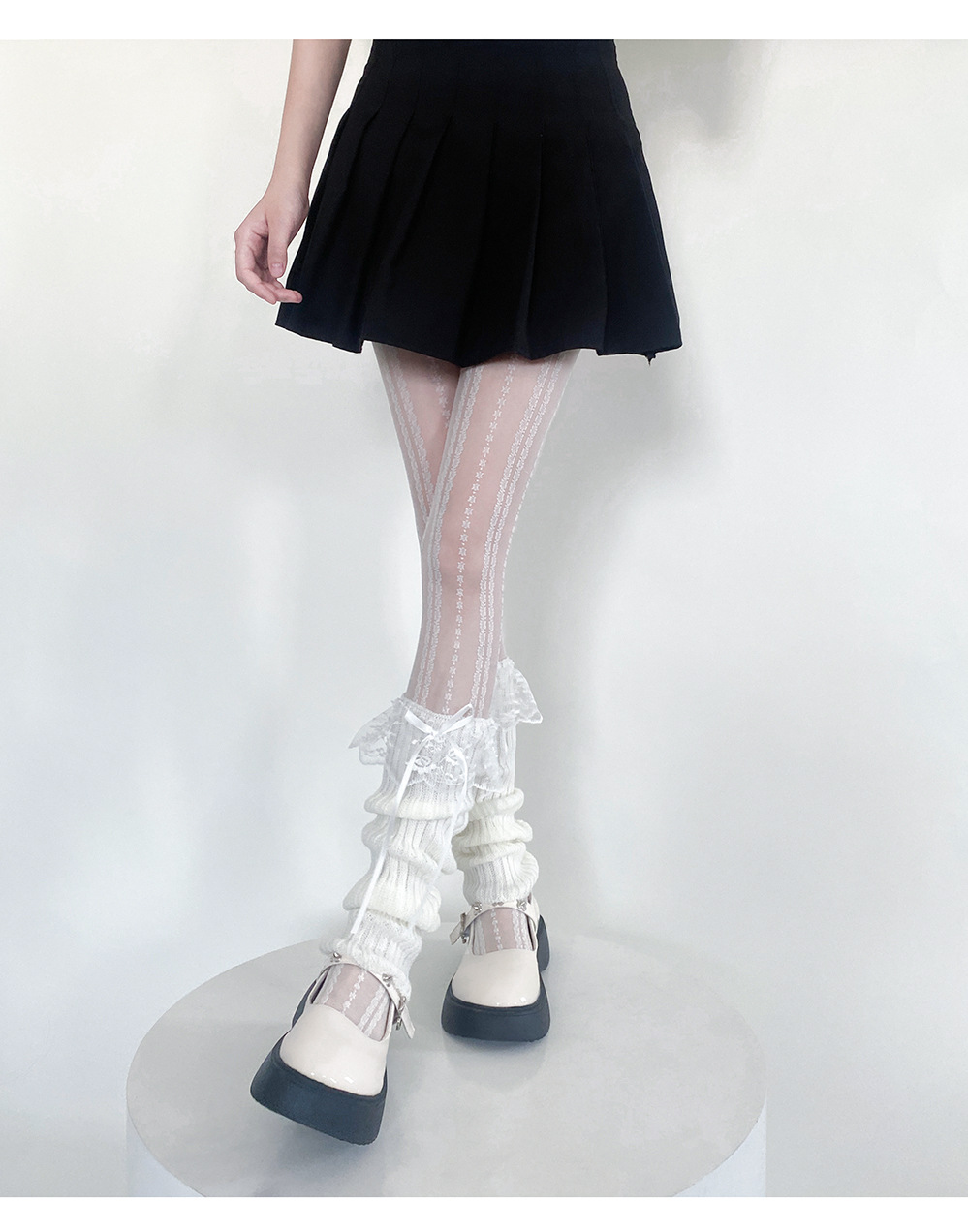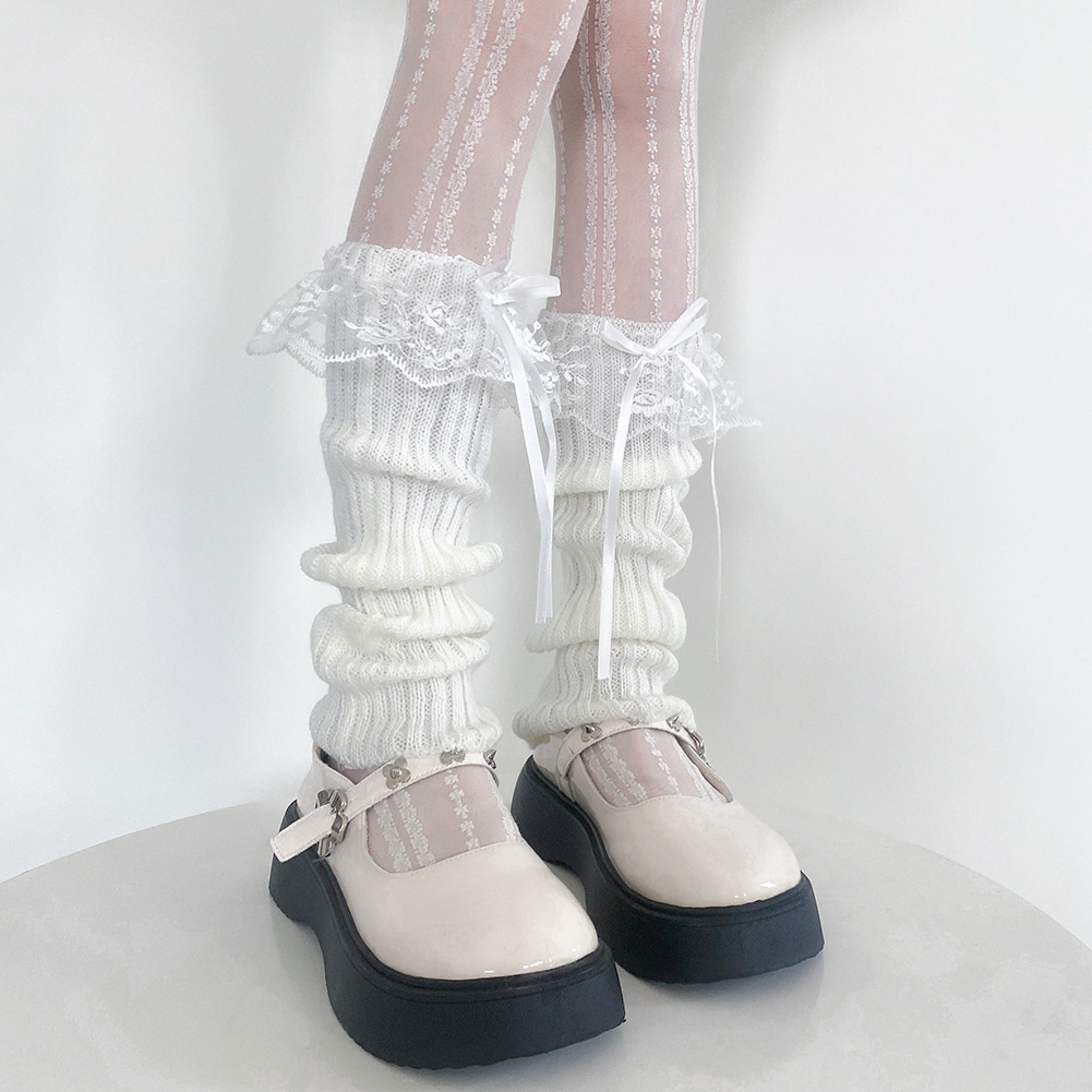장미 꽃 레이스 양말 귀여운 활 더미 양말 다리 커버 달콤한 소녀 스타일 니트 송아지 양말