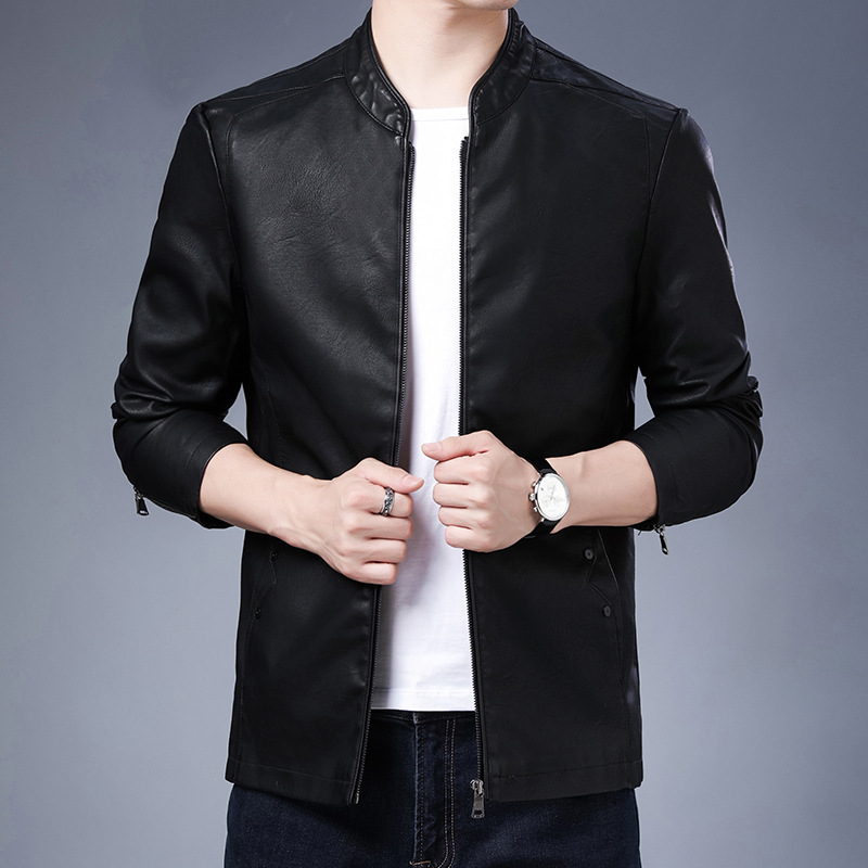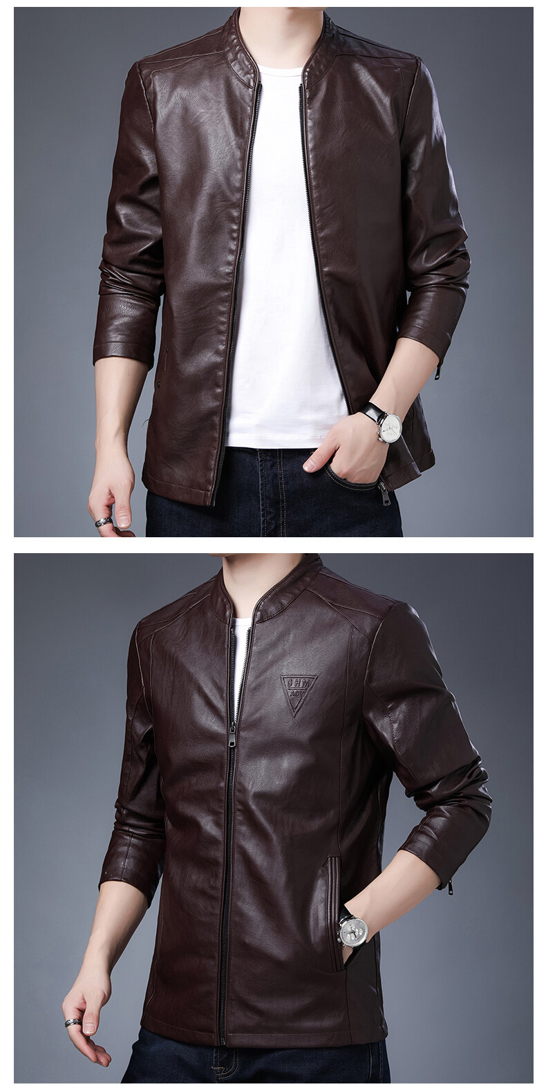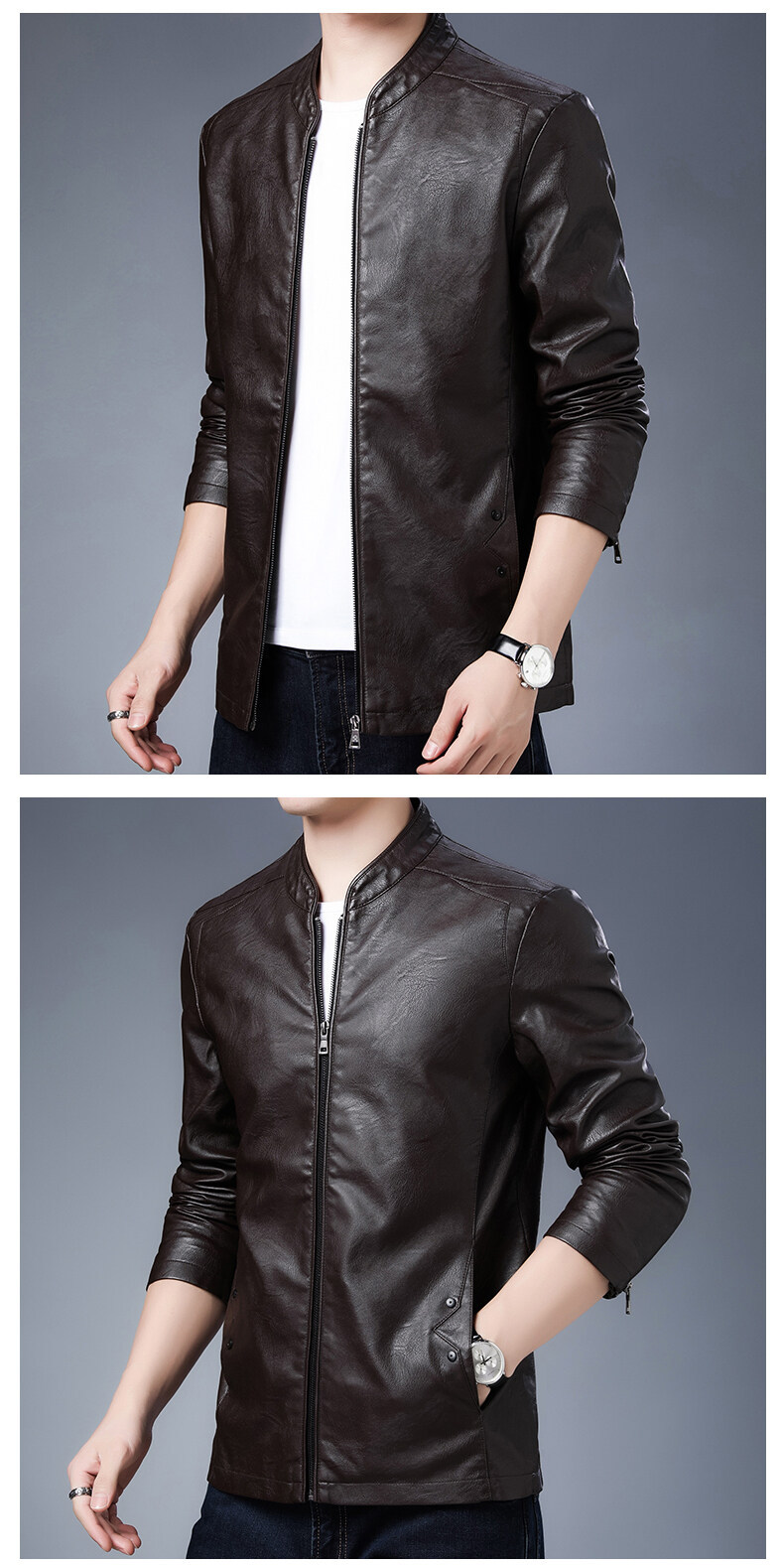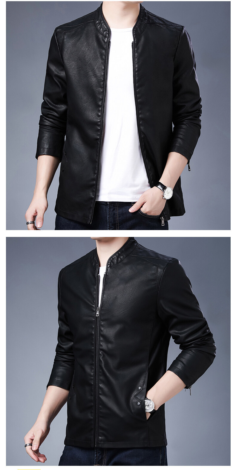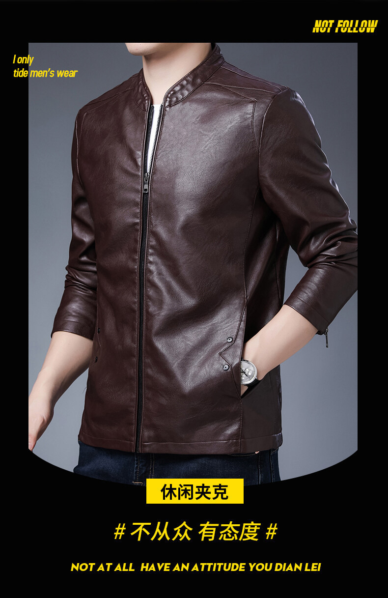 가죽 남성 코트 새로운 한국 스타일 유행 슬림핏 잘생긴 PU 가죽 자전거 의류 유행 브랜드 모든 매치 남성 잘생긴 캐주얼