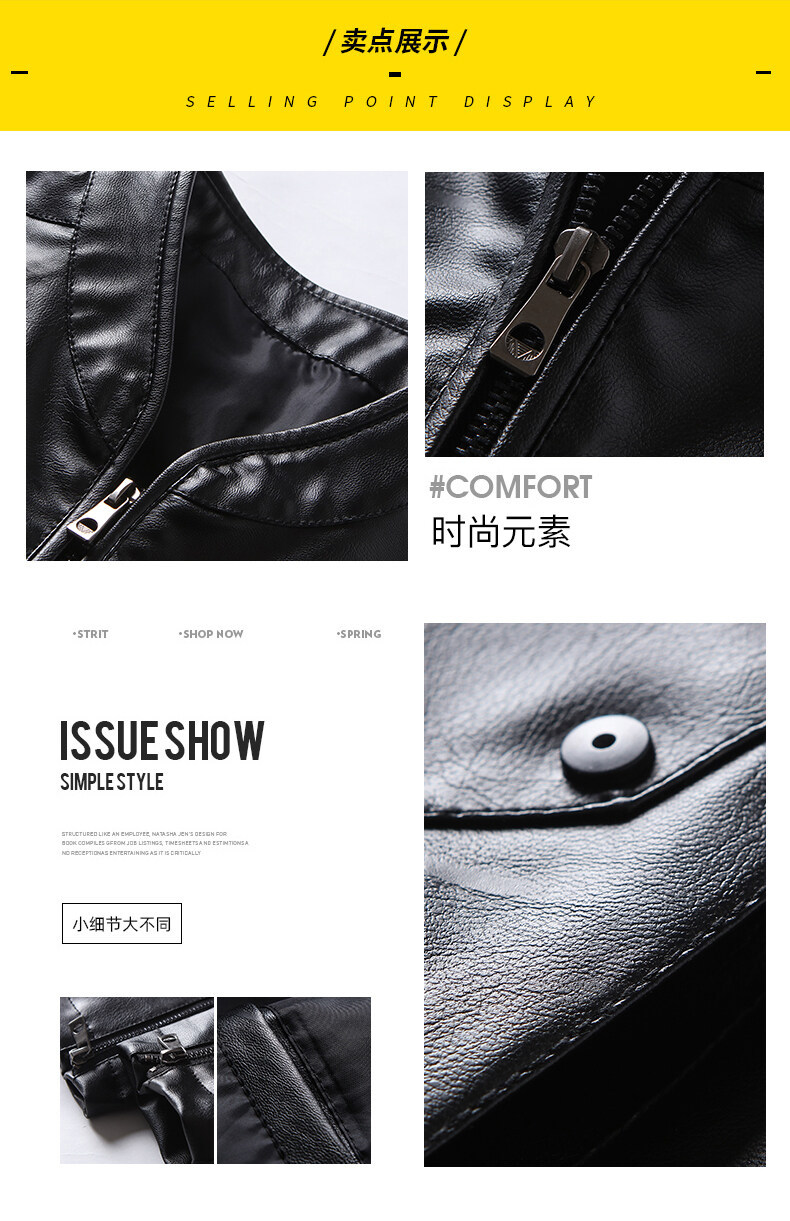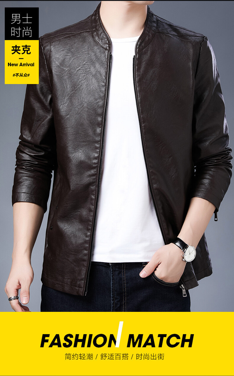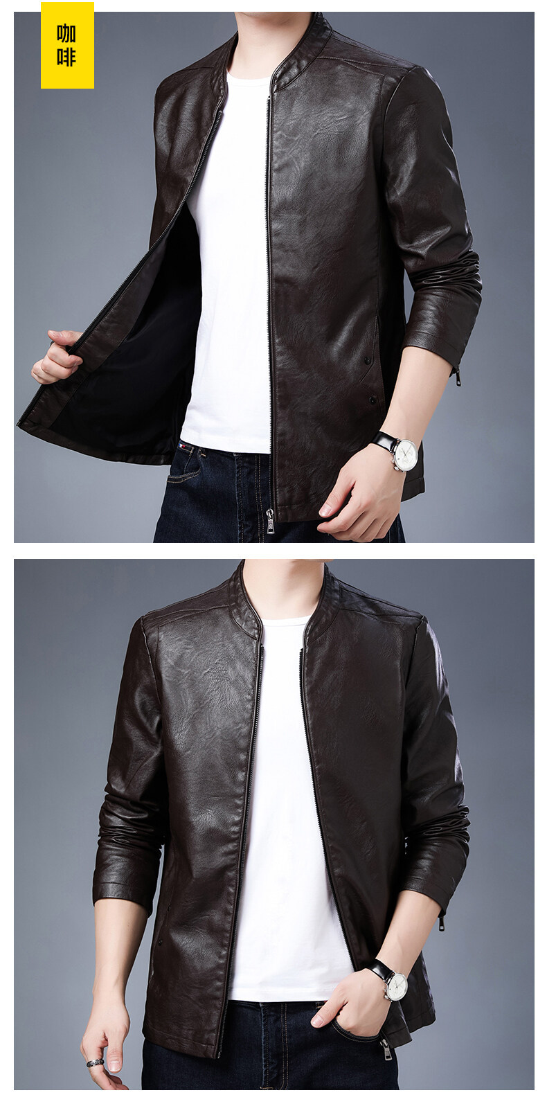 가죽 남성 코트 새로운 한국 스타일 유행 슬림핏 잘생긴 PU 가죽 자전거 의류 유행 브랜드 모든 매치 남성 잘생긴 캐주얼스토어 가기
