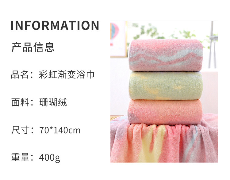 산호 양털 목욕 타올 두꺼운 무지개 그라데이션 목욕 타올 부드러운 흡수성 테두리 목욕 타올 그라디언트 선물 목욕 타올 도매스토어 가기