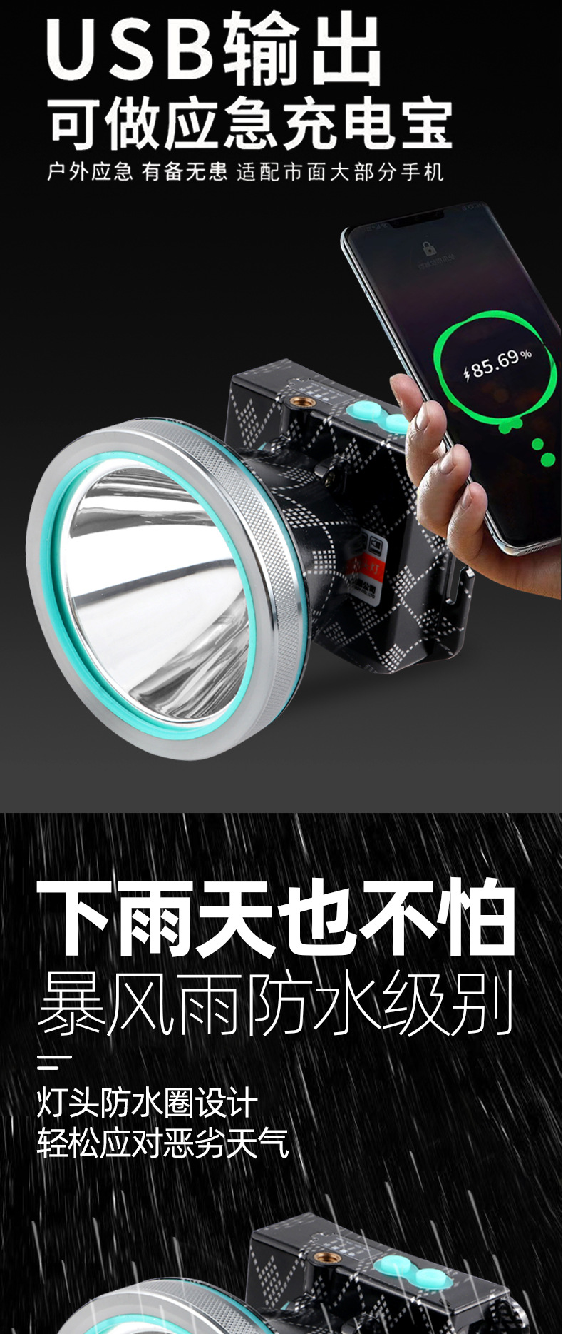 • J781 폴리머 방수 유도 헤드 라이트 배터리 10-20 시간