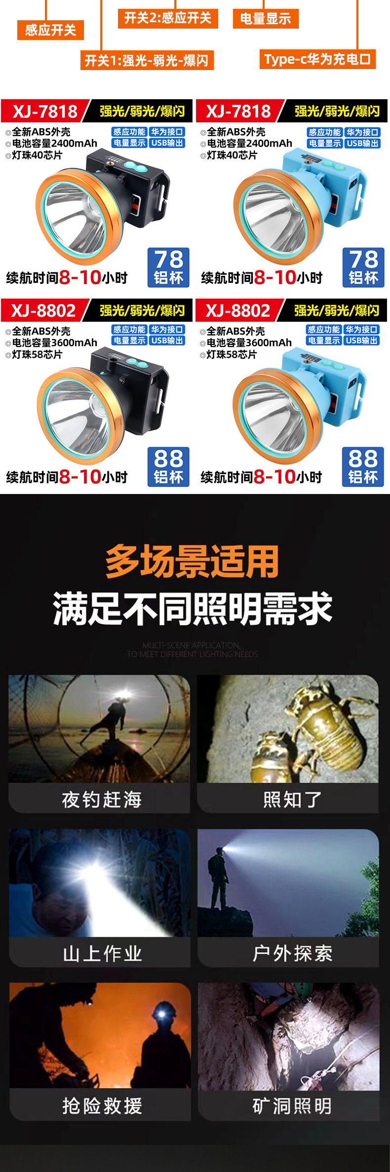 • 7819 다기능 유도 알루미늄 헤드 XPG 램프 비즈 배터리 수명 8-10 시간