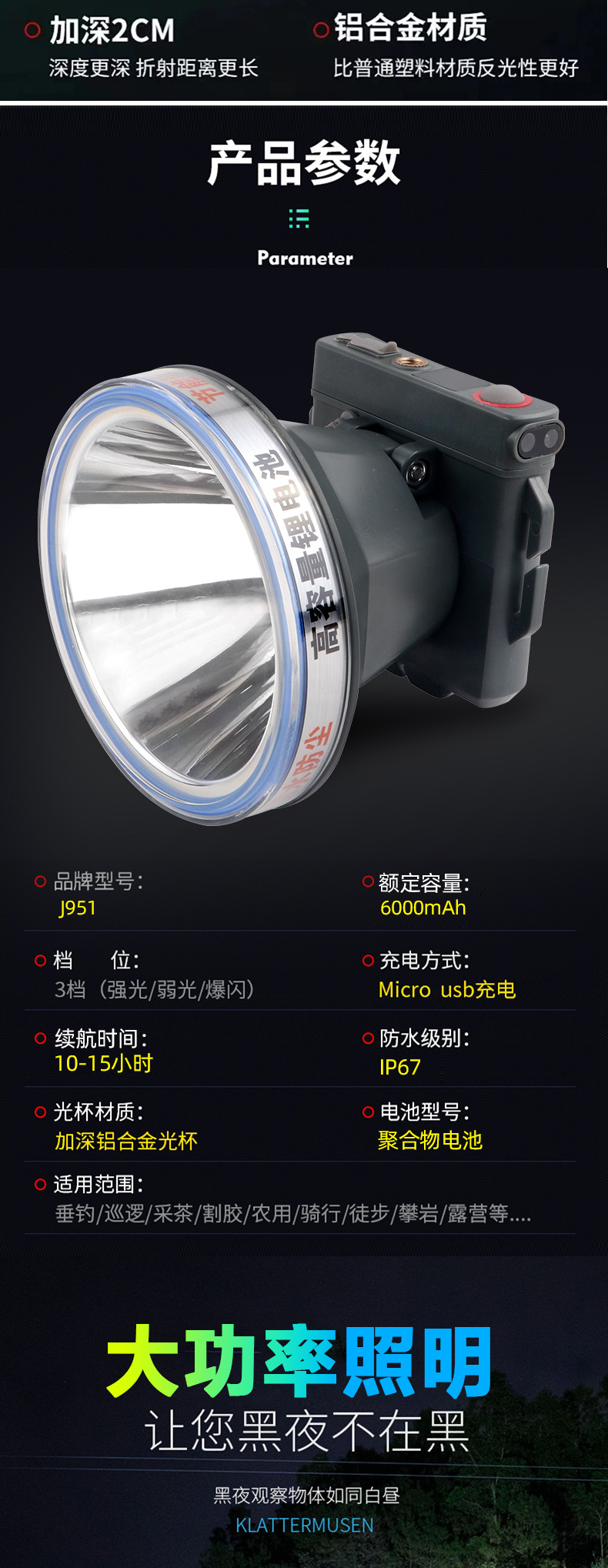 • J951 수입 화이트 레이저 유도 헤드 라이트 배터리 10-20 시간