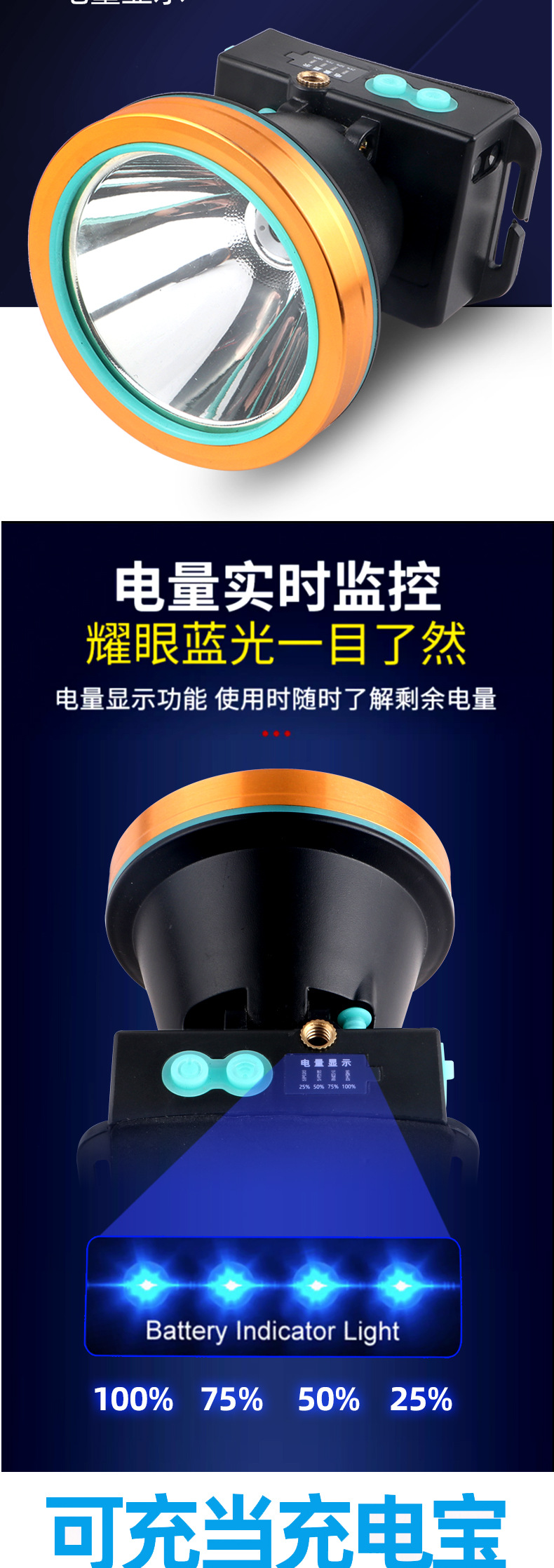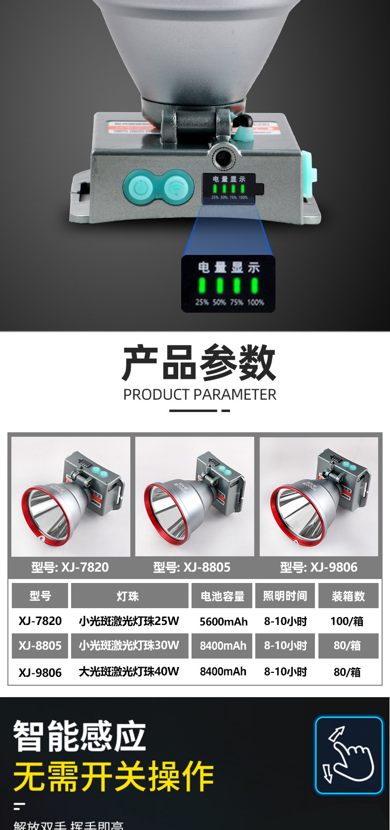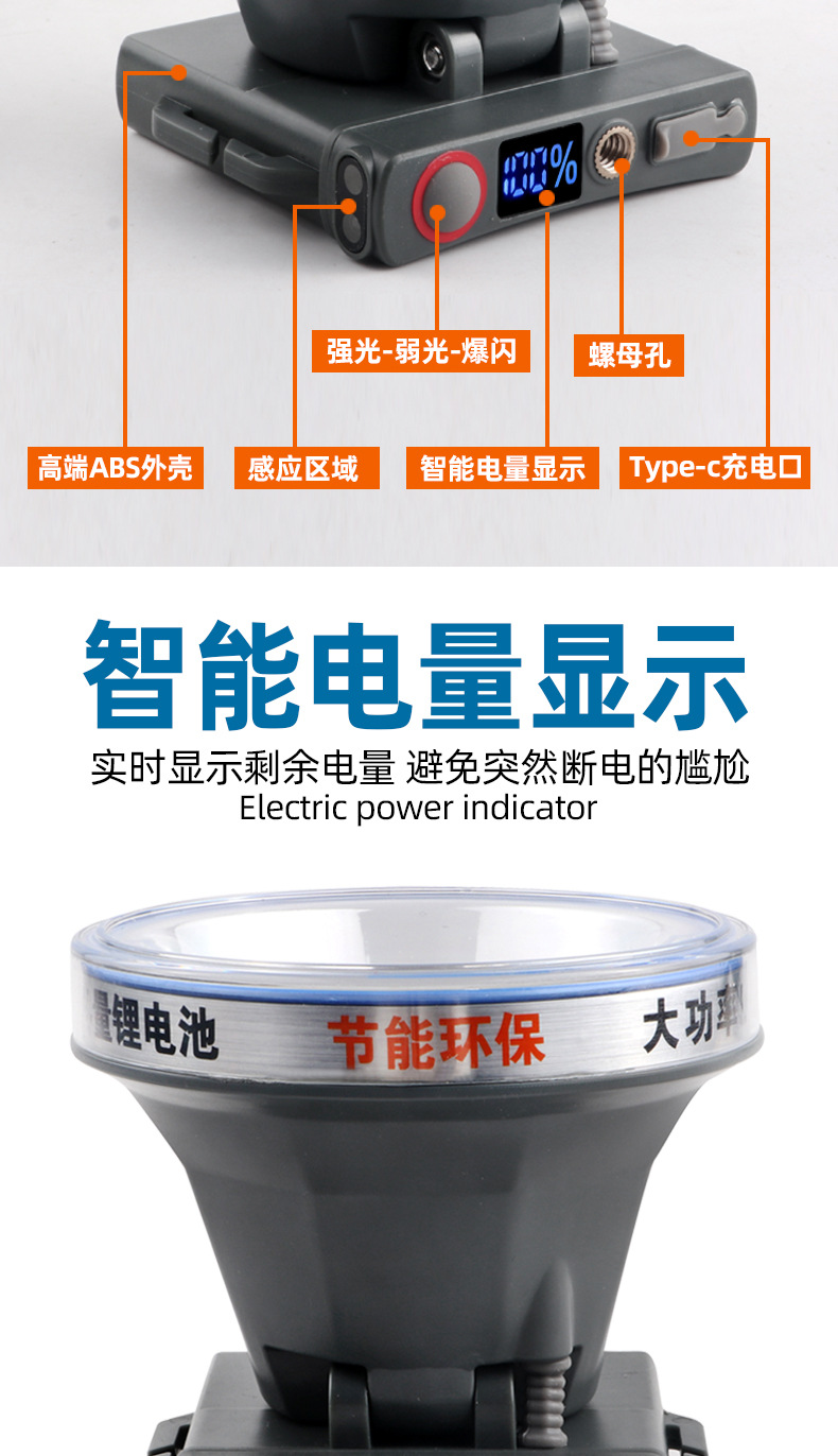 • J821 폴리머 방수 유도 헤드 라이트 배터리 10-20 시간