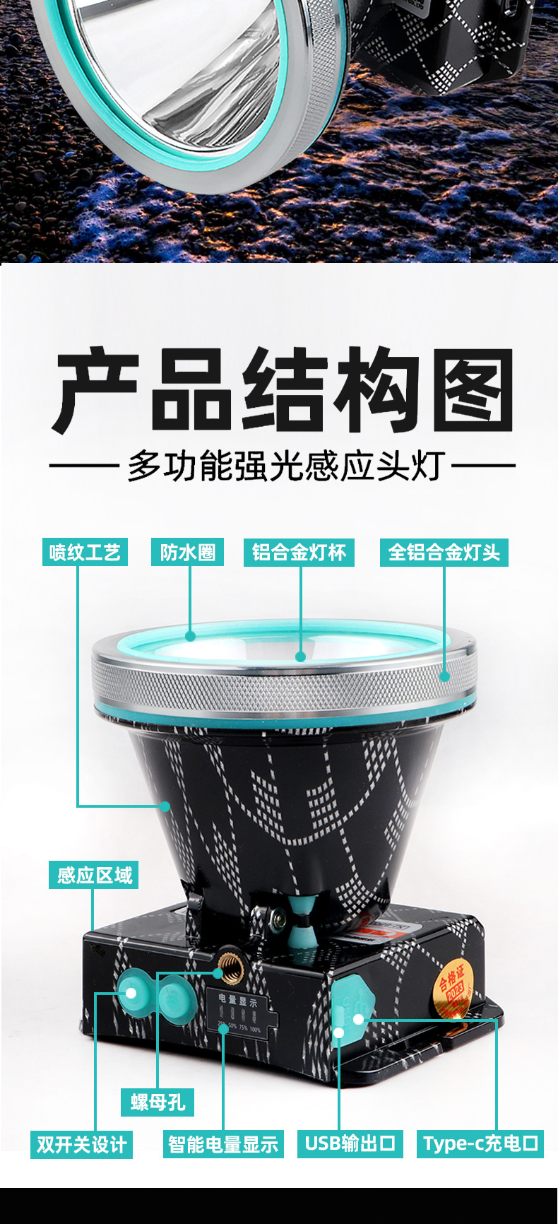 유도 전조등 led 강한 빛 충전 슈퍼 브라이트 헤드 마운트 조명 레이저 라이트 손전등 야외 슈퍼 브라이트 광부 램프스토어 가기