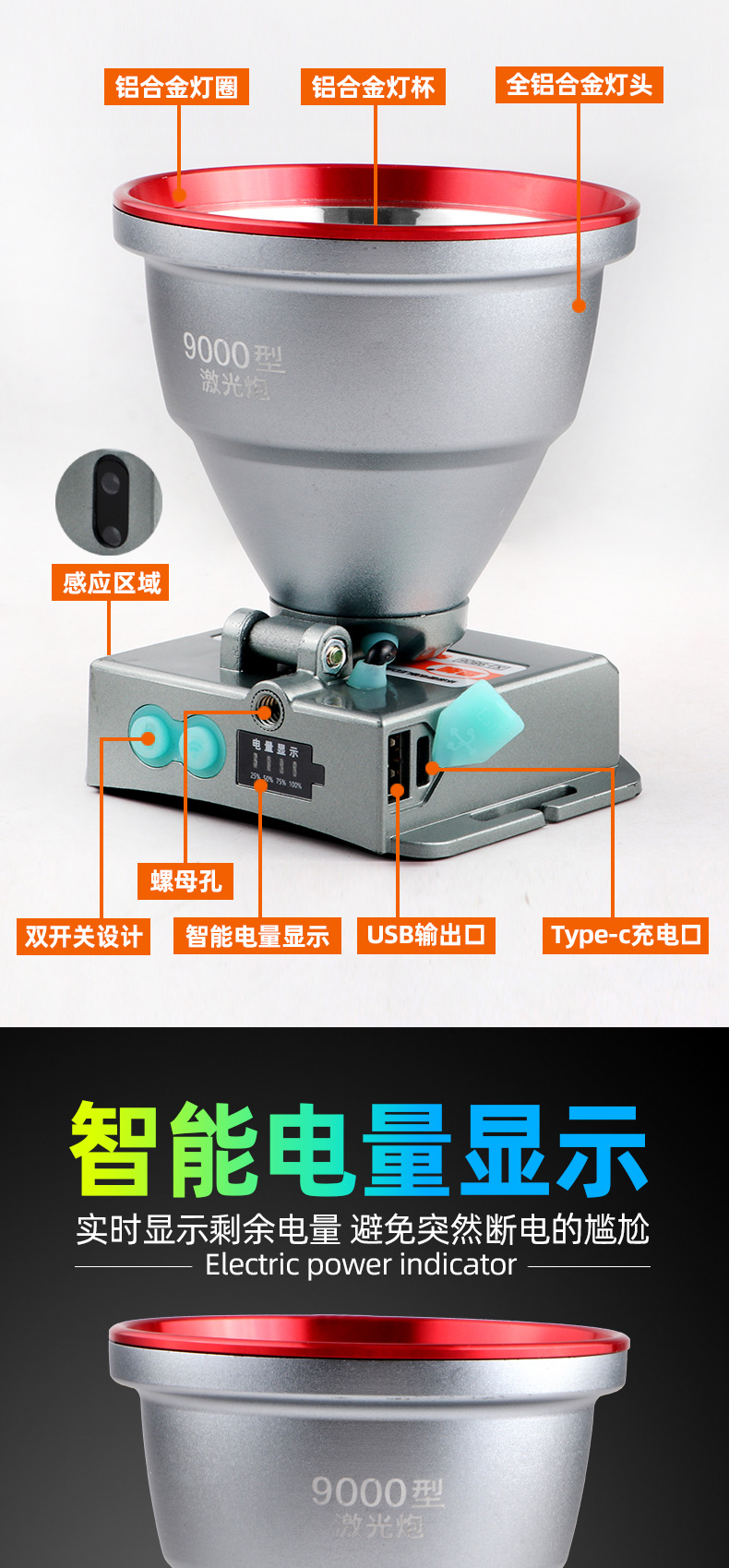 • 7820 다기능 유도 알루미늄 헤드 레이저 램프 비드 배터리 수명 8-10 시간