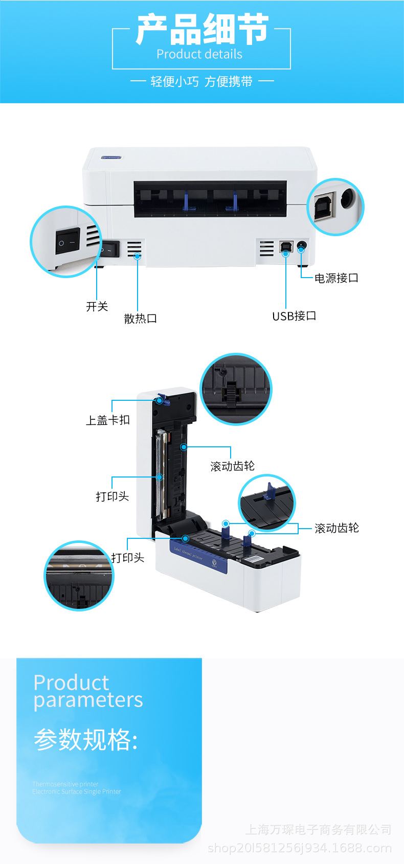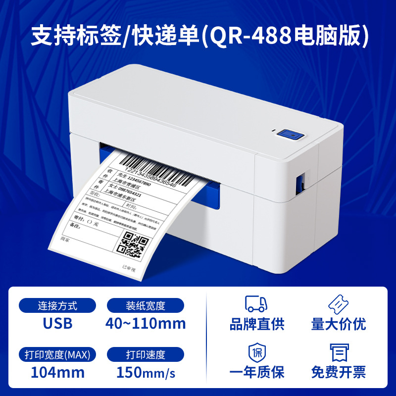 Qirui QR488 열 라벨 프린터 1 대 및 2 대 단일 고속 물류 전자 단일 라벨 바코드 인쇄스토어 가기