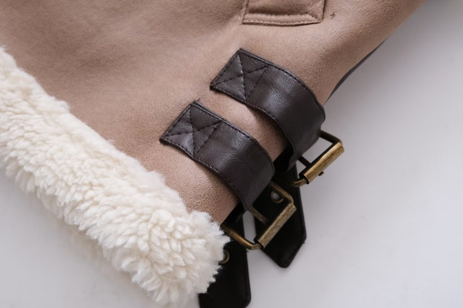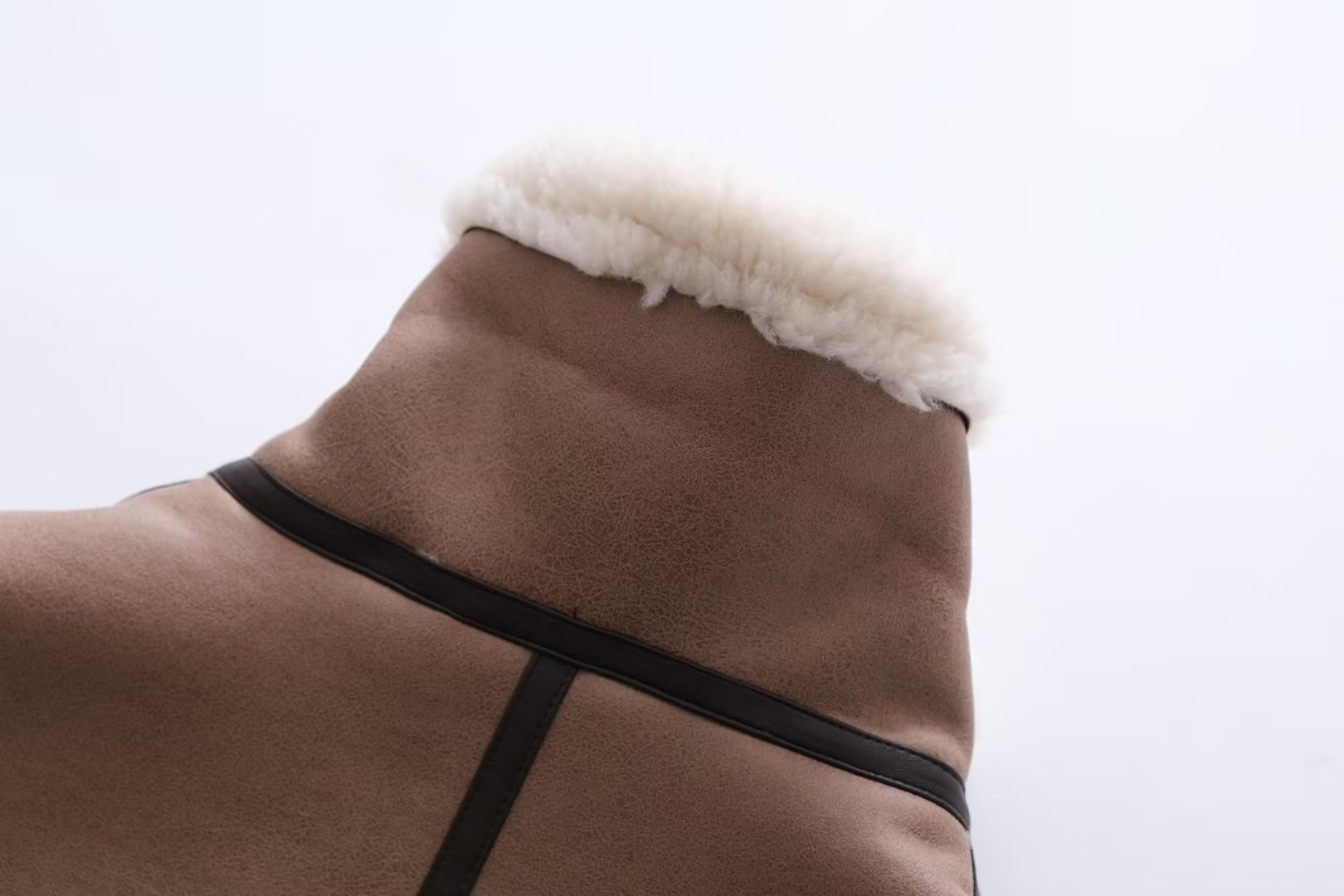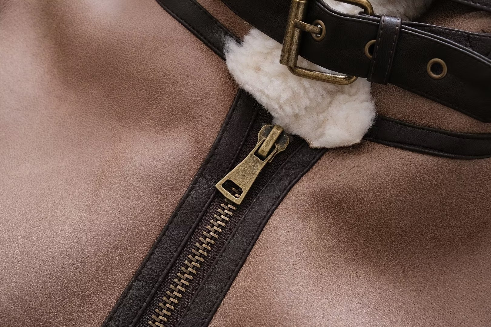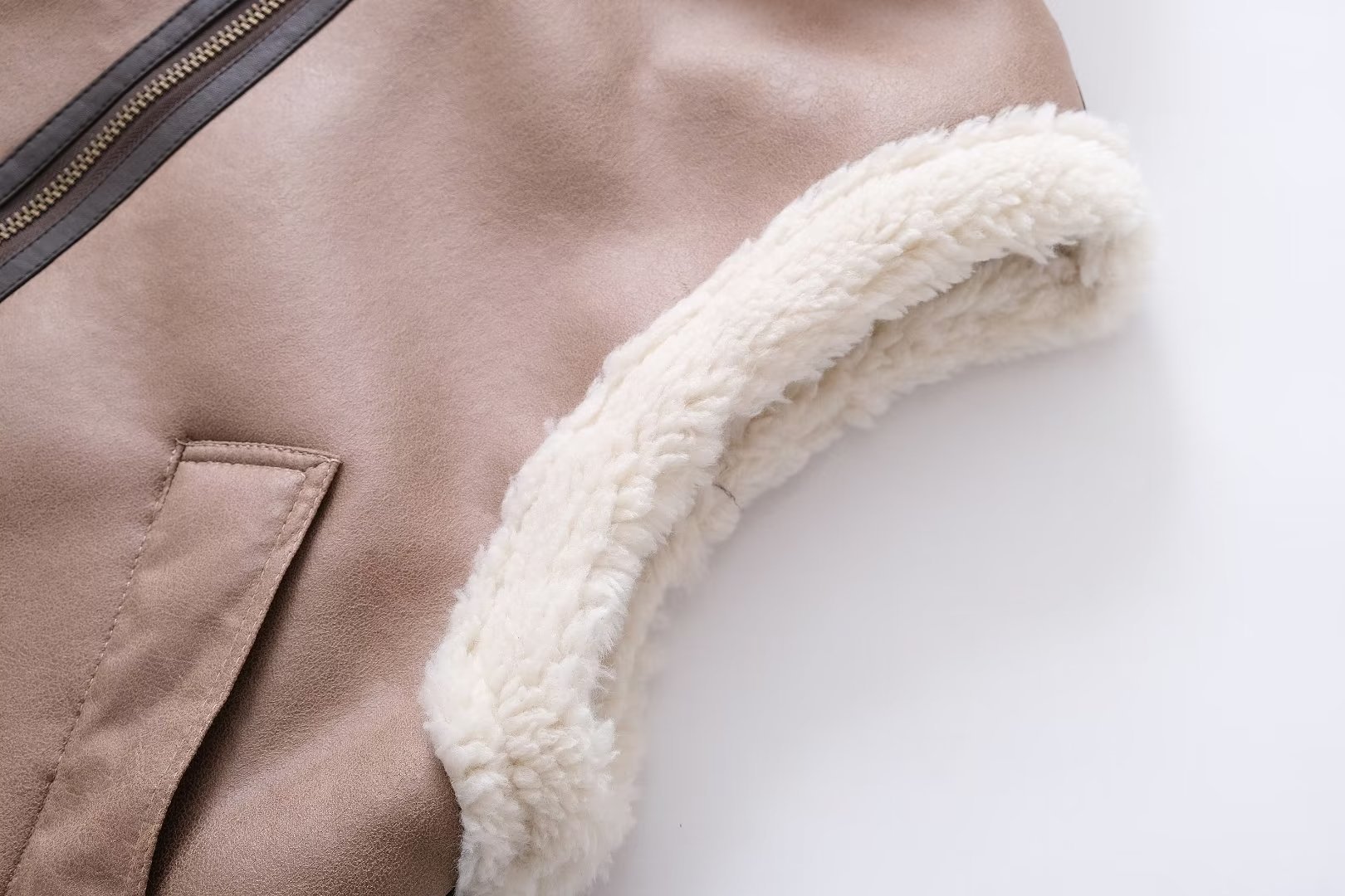 2023秋季新品女装外贸欧美风时尚潮驼色机车皮毛马甲BY1960