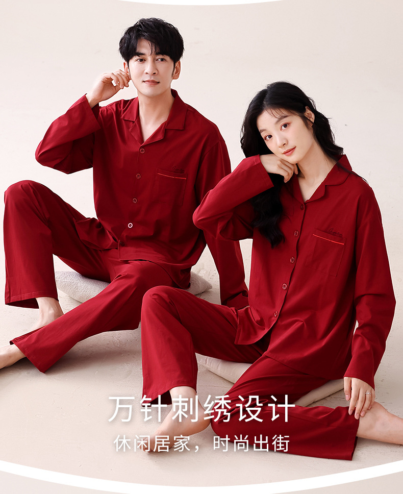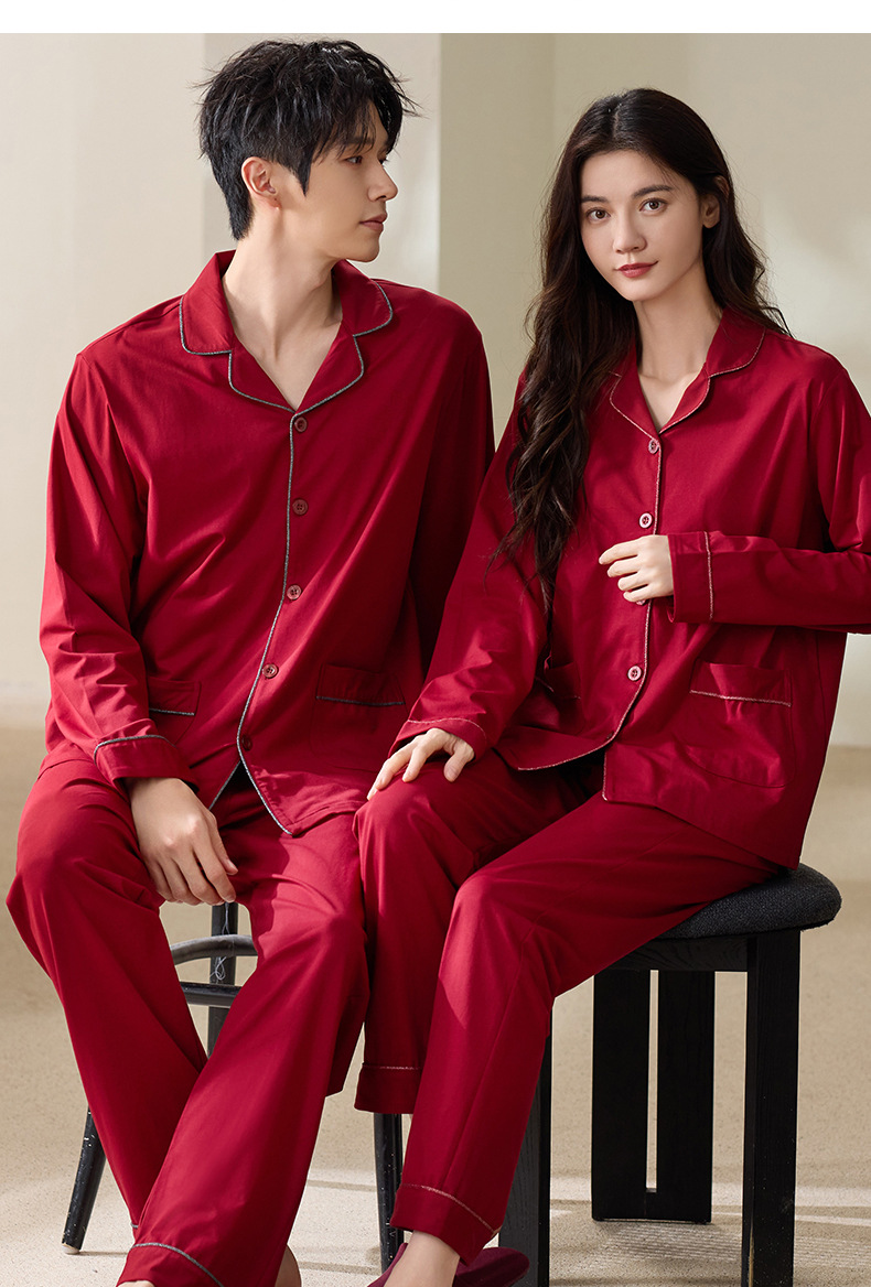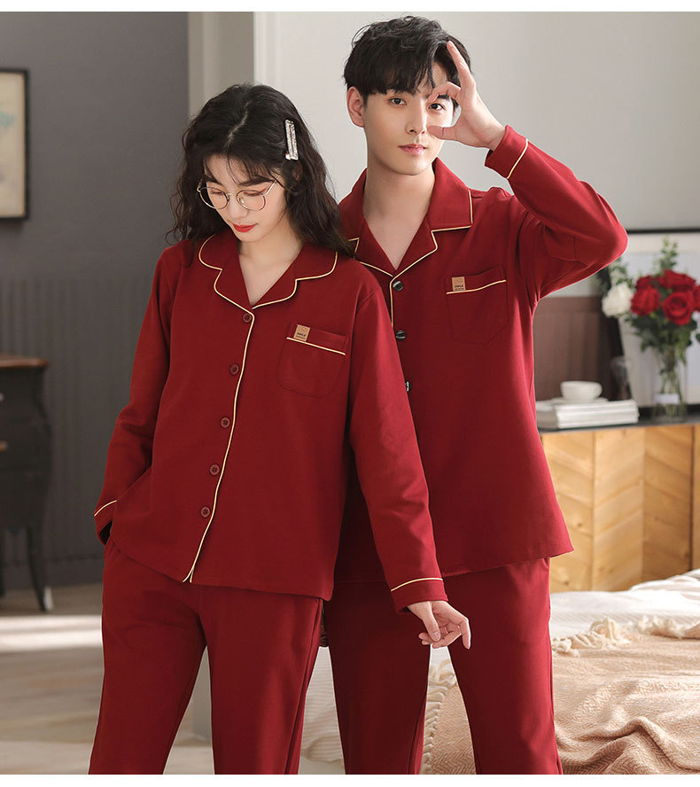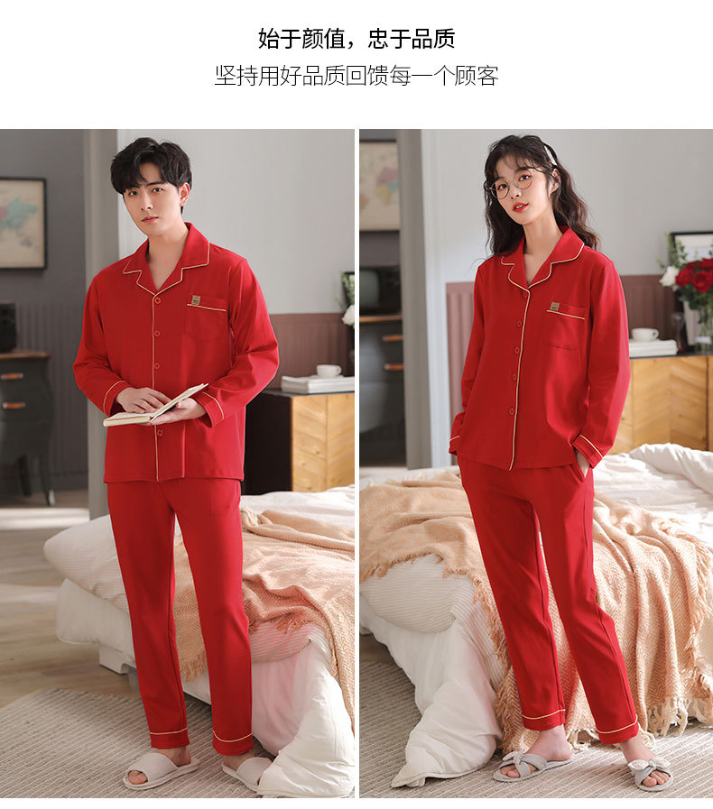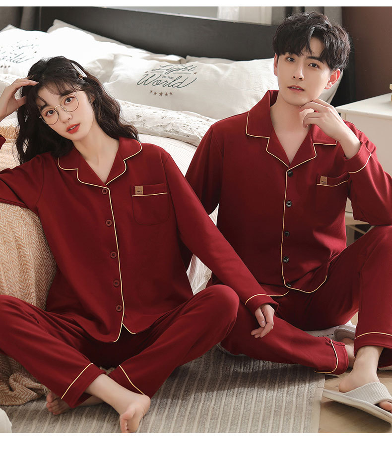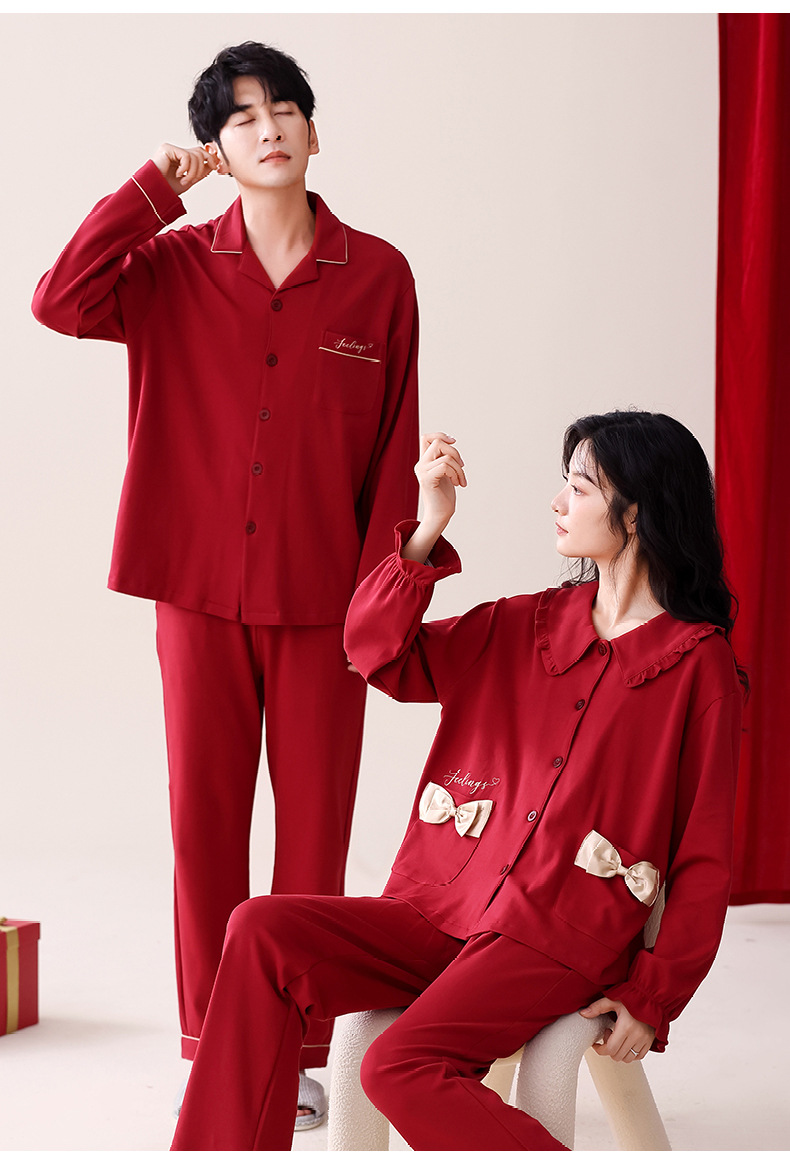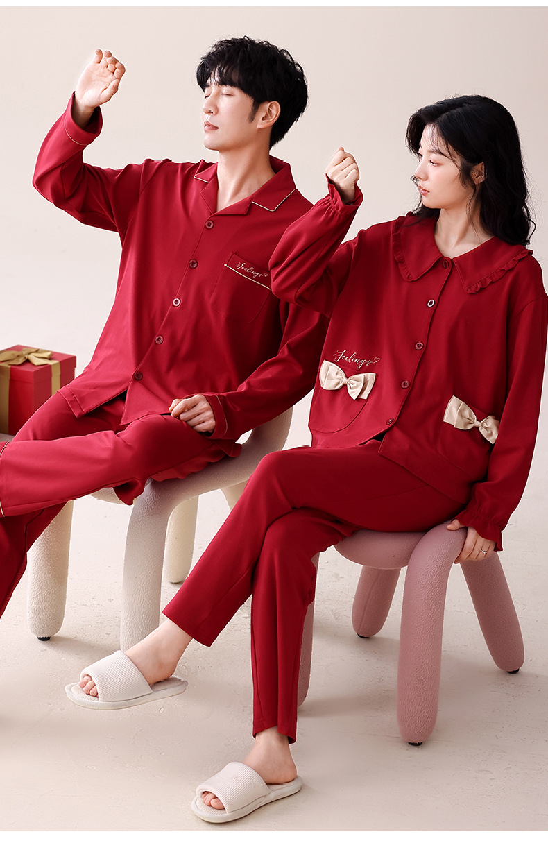 빨간 커플 잠옷 가을 겨울 순면 긴팔 공주 스타일 신혼 가정복 가을 남녀 결혼 잠옷스토어 가기