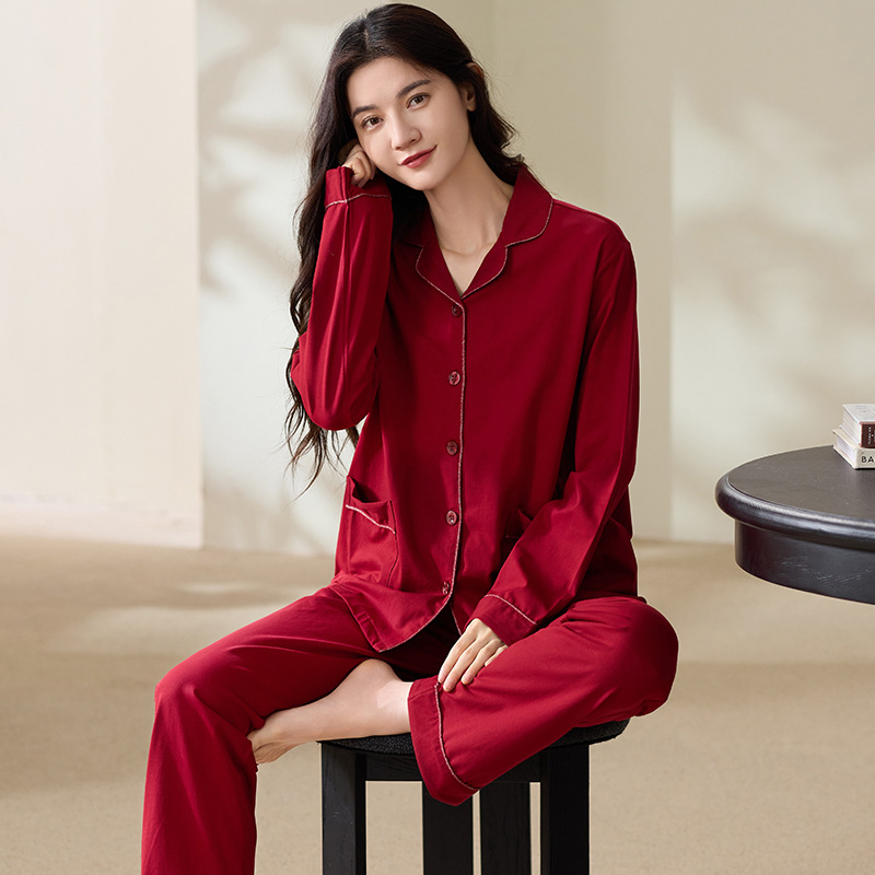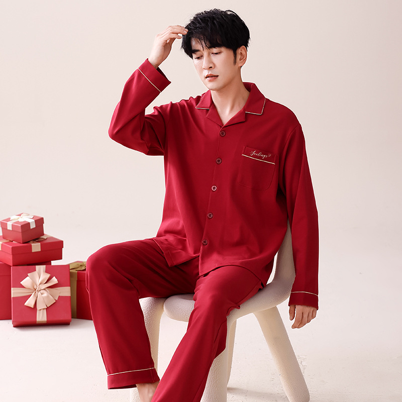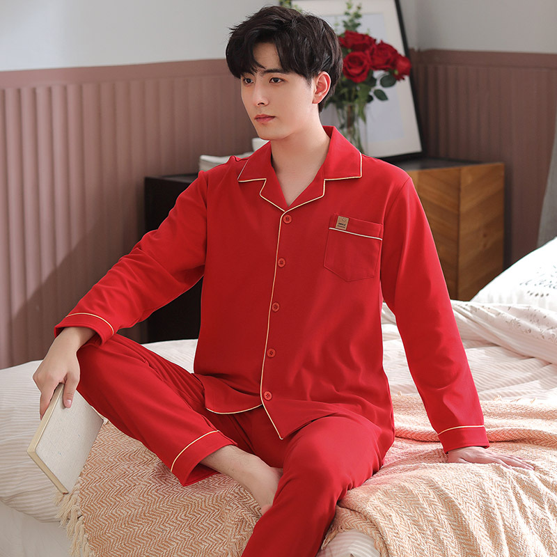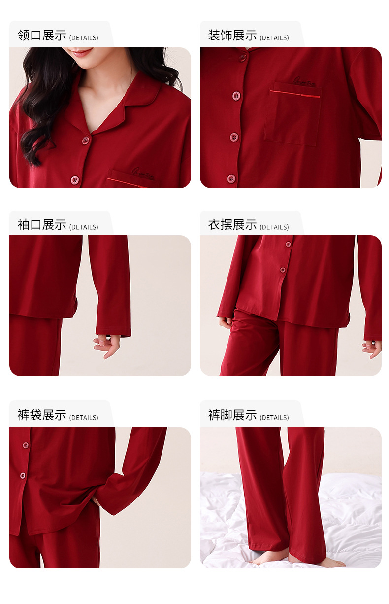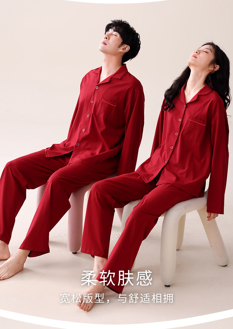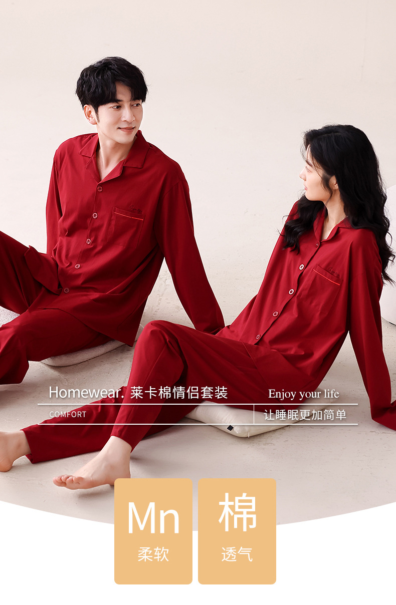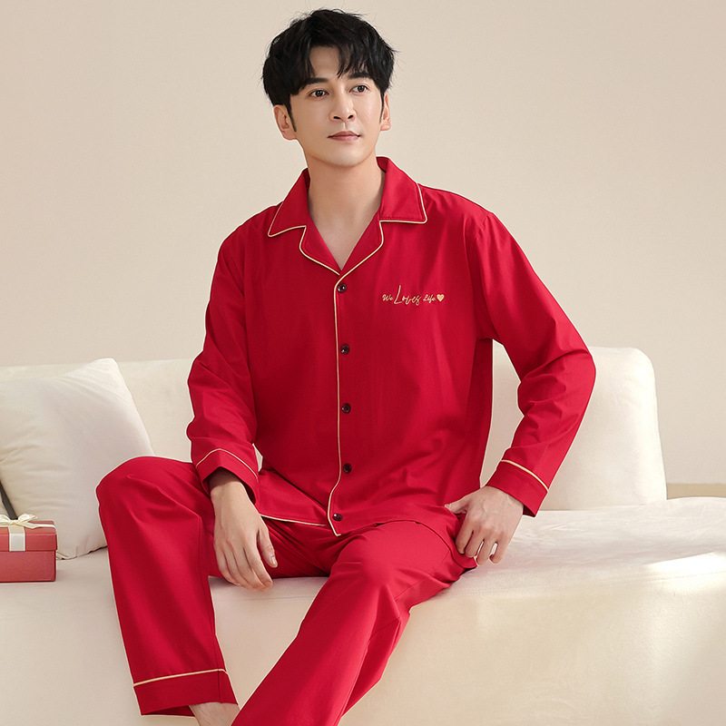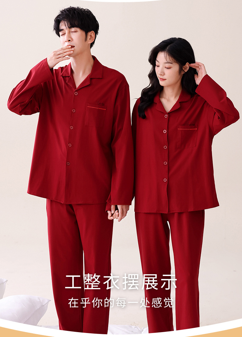빨간 커플 잠옷 가을 겨울 순면 긴팔 공주 스타일 신혼 가정복 가을 남녀 결혼 잠옷스토어 가기