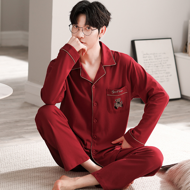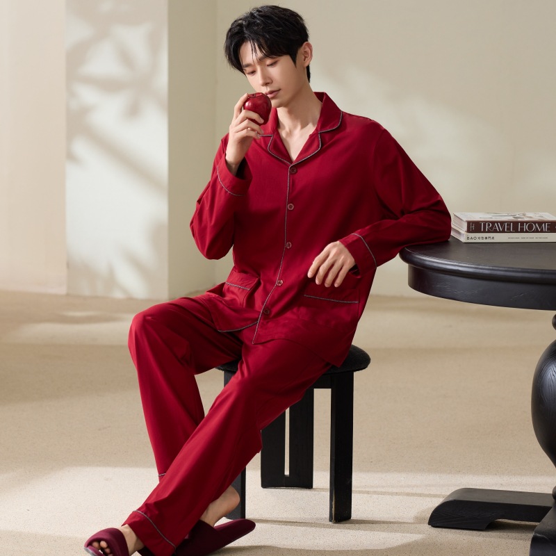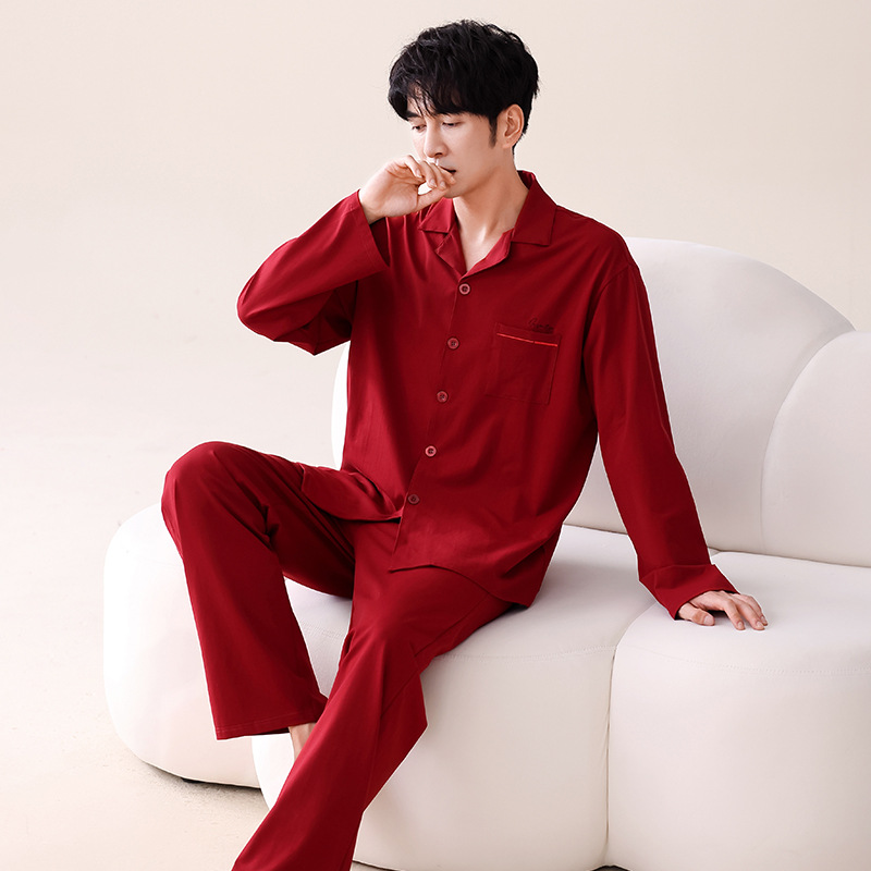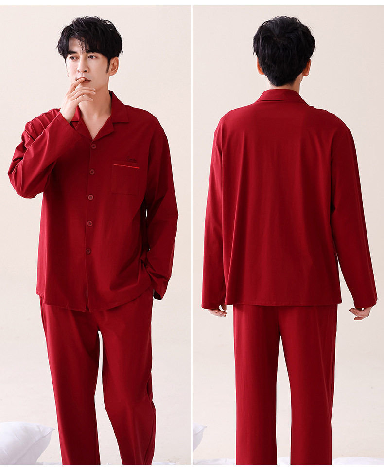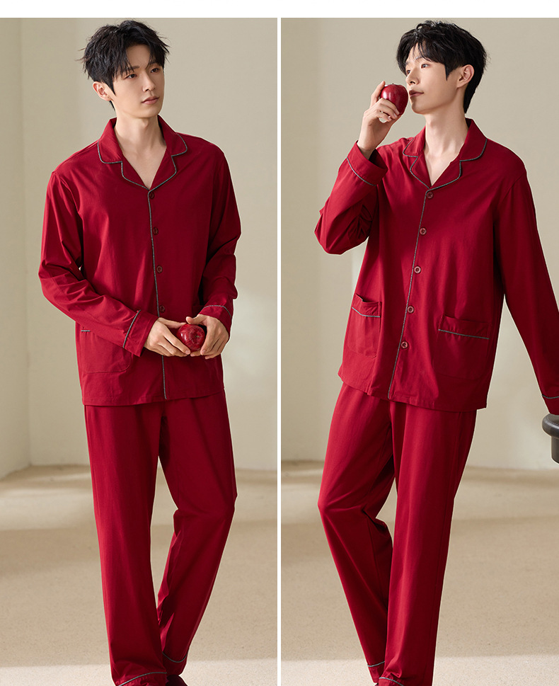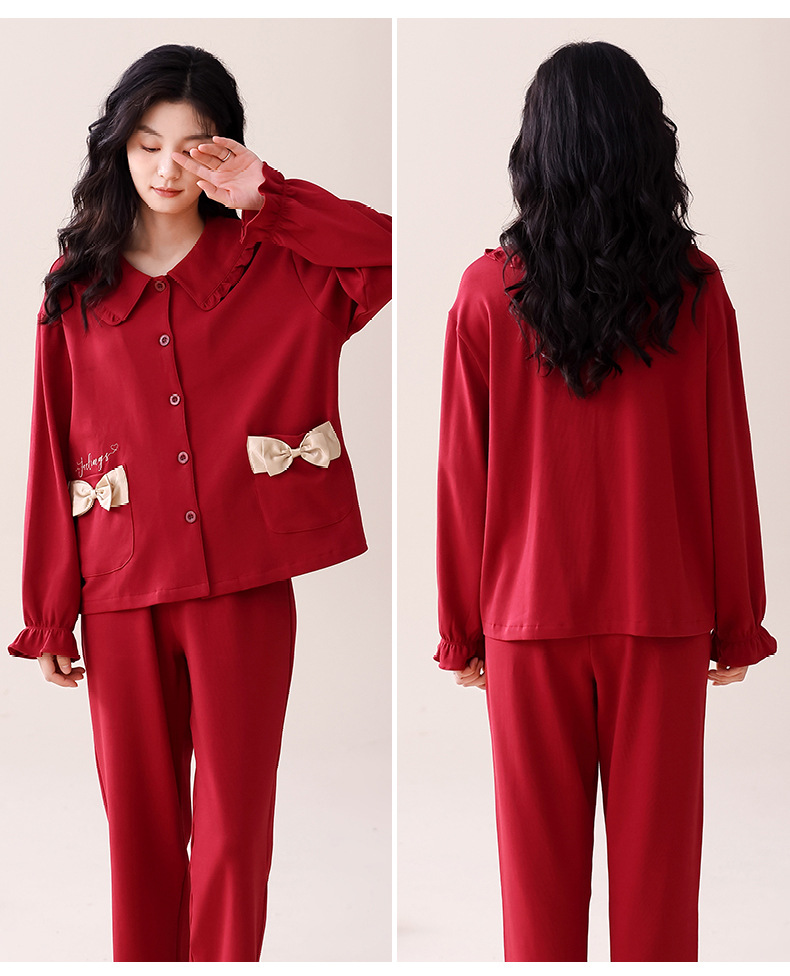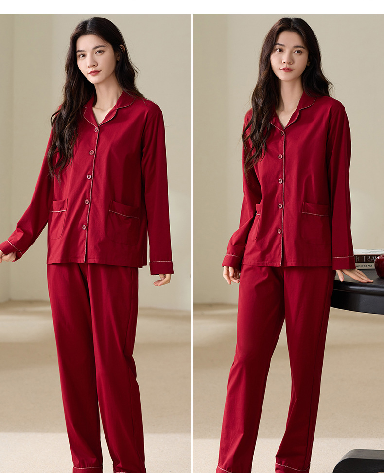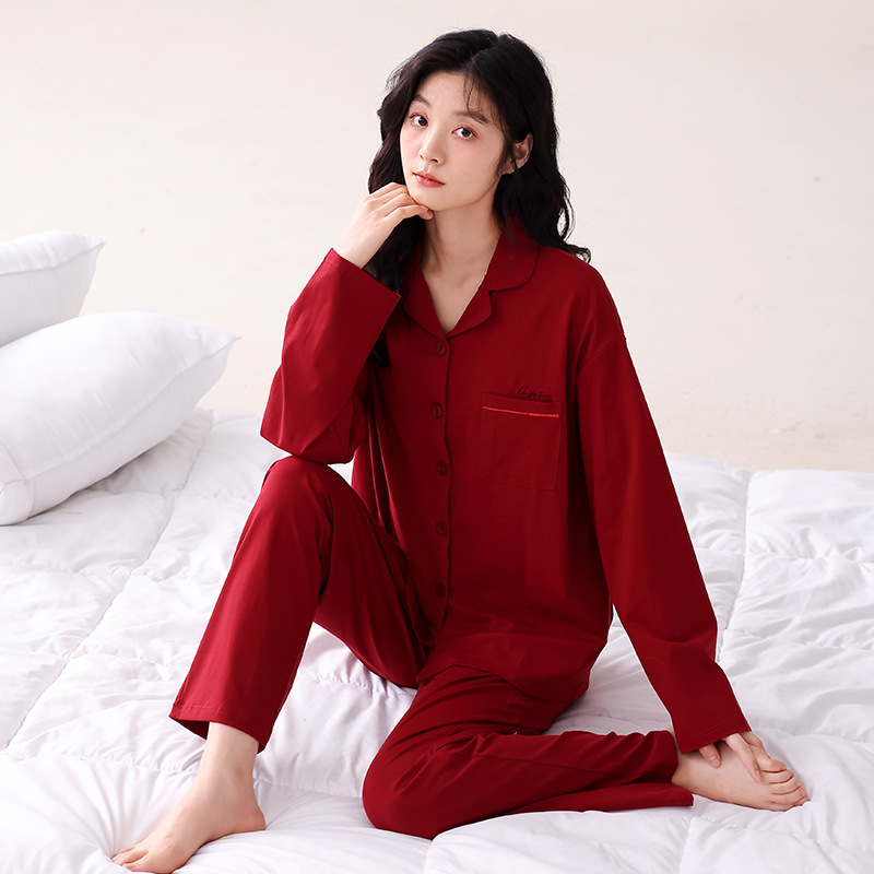 빨간 커플 잠옷 가을 겨울 순면 긴팔 공주 스타일 신혼 가정복 가을 남녀 결혼 잠옷스토어 가기
