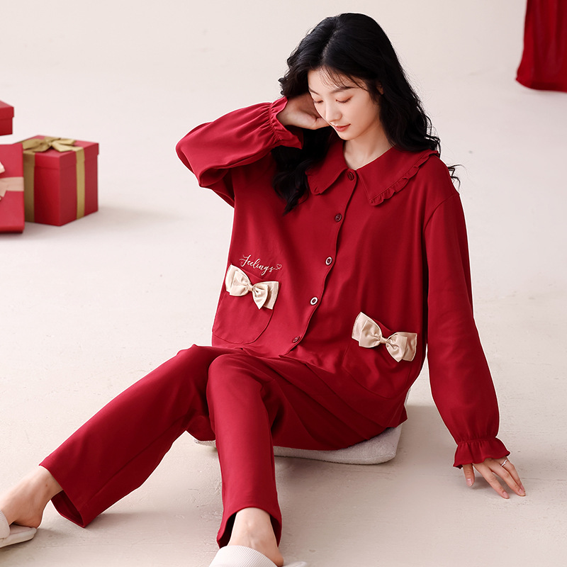 빨간 커플 잠옷 가을 겨울 순면 긴팔 공주 스타일 신혼 가정복 가을 남녀 결혼 잠옷