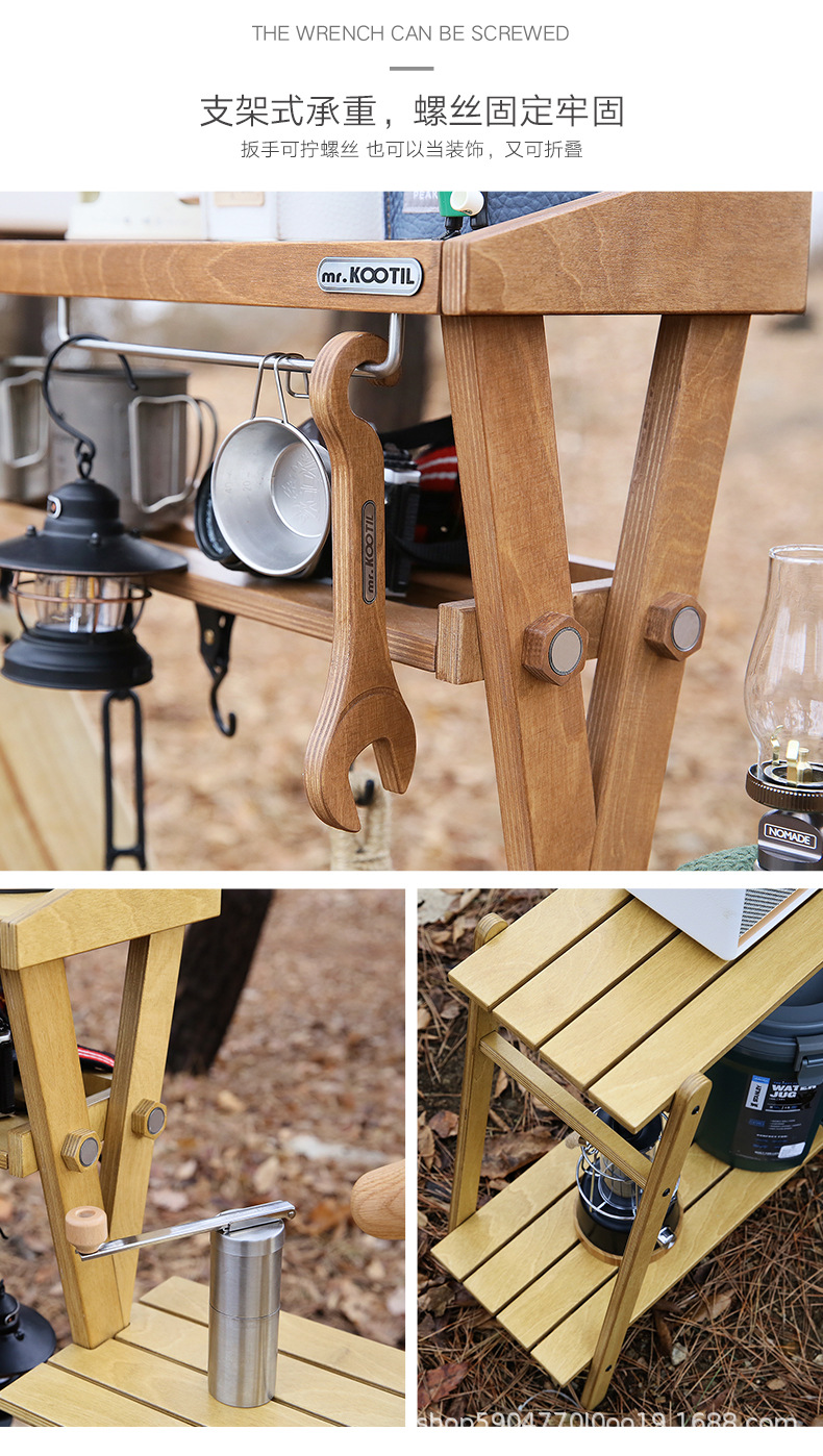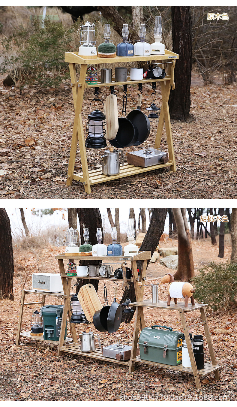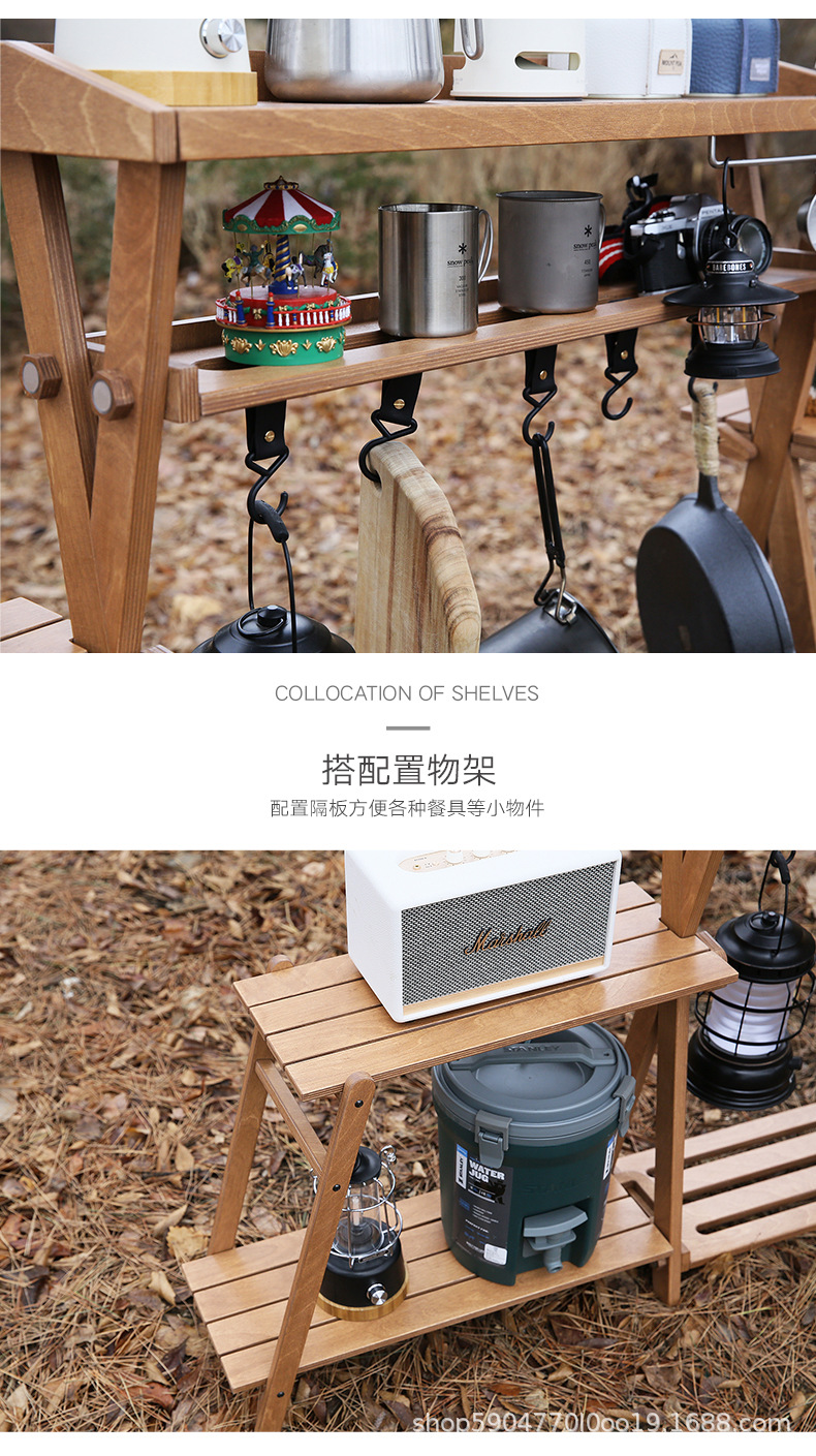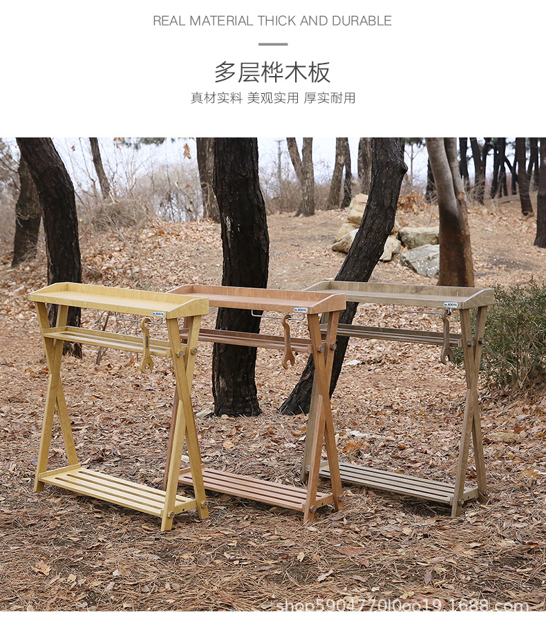 야외 피크닉 접이식 휴대용 캠핑 나무 테이블 캠핑 바베큐 보관 랙 계란 롤 식탁 램프 랙 자동차 유물스토어 가기