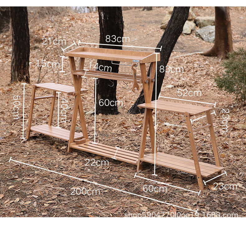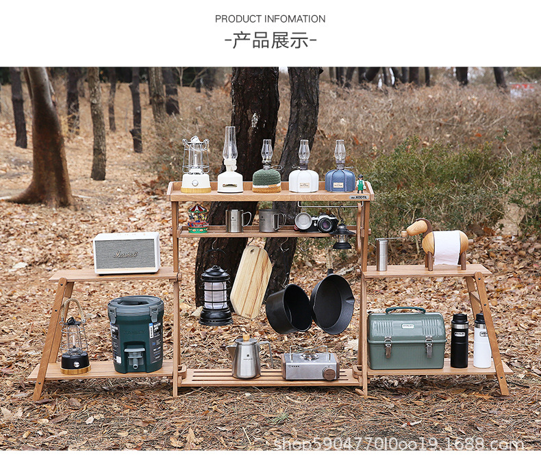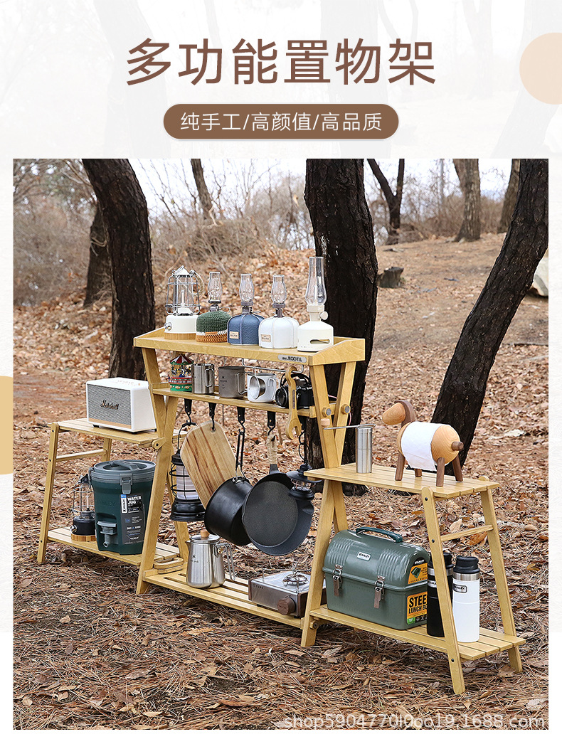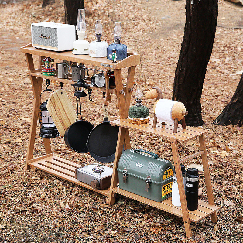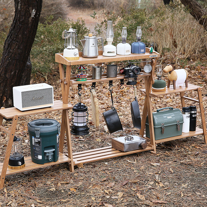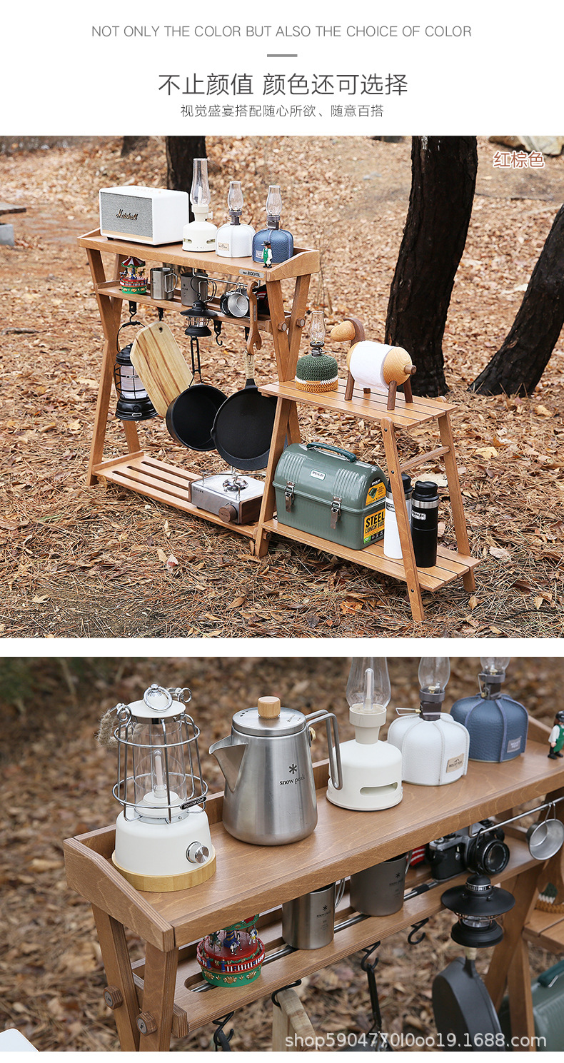 야외 피크닉 접이식 휴대용 캠핑 나무 테이블 캠핑 바베큐 보관 랙 계란 롤 식탁 램프 랙 자동차 유물스토어 가기