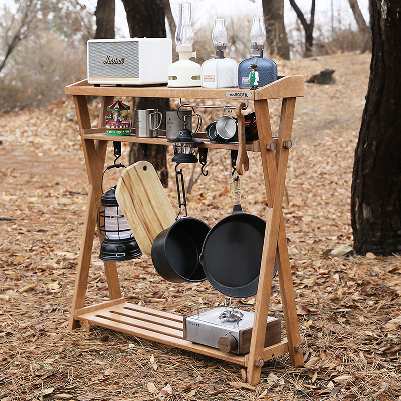 야외 피크닉 접이식 휴대용 캠핑 나무 테이블 캠핑 바베큐 보관 랙 계란 롤 식탁 램프 랙 자동차 유물