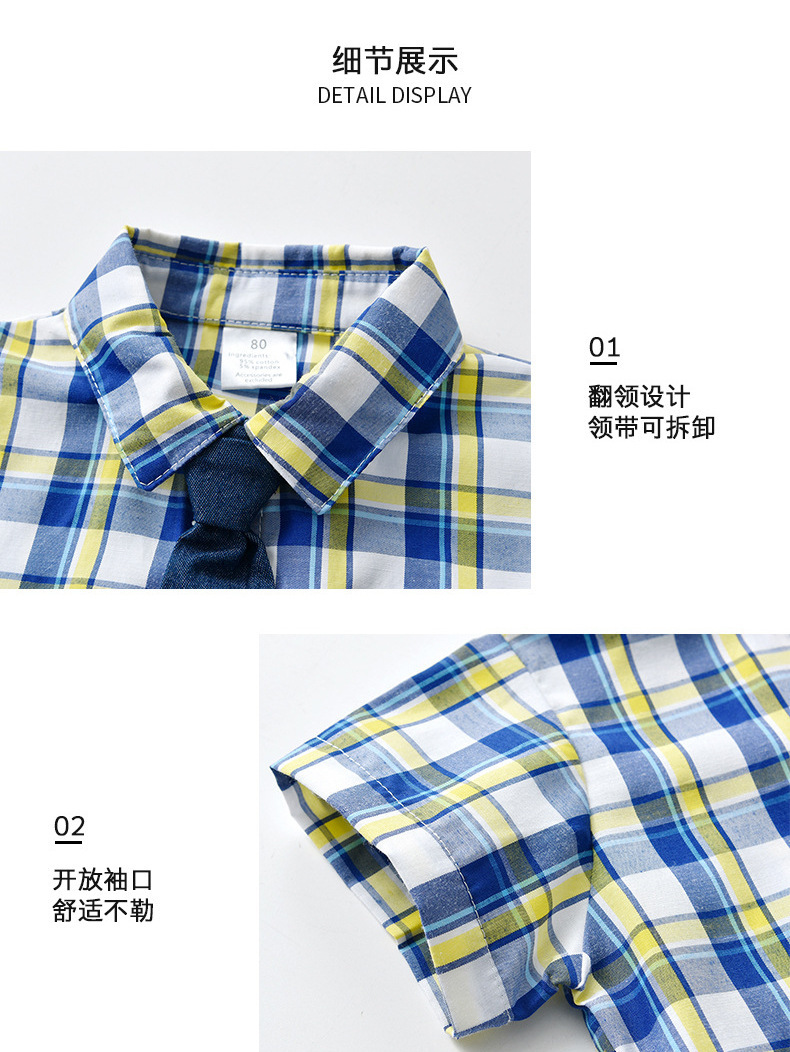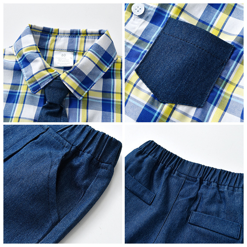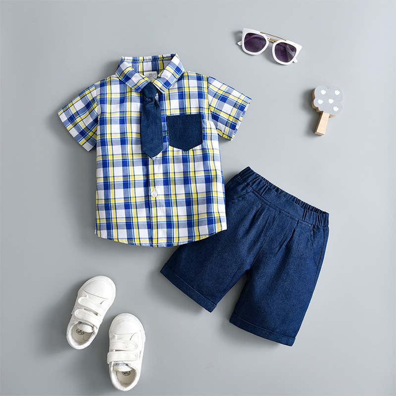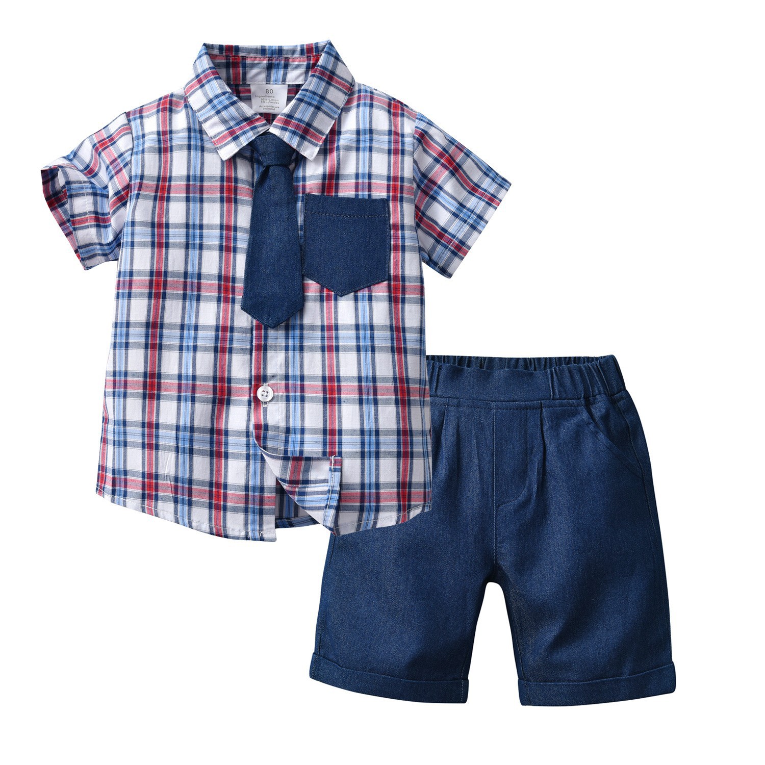 대외 무역 아동 의류 도매 영국 신사 격자 무늬 3 종 세트 소년 여름 아기 여름 반팔 어린이 세트