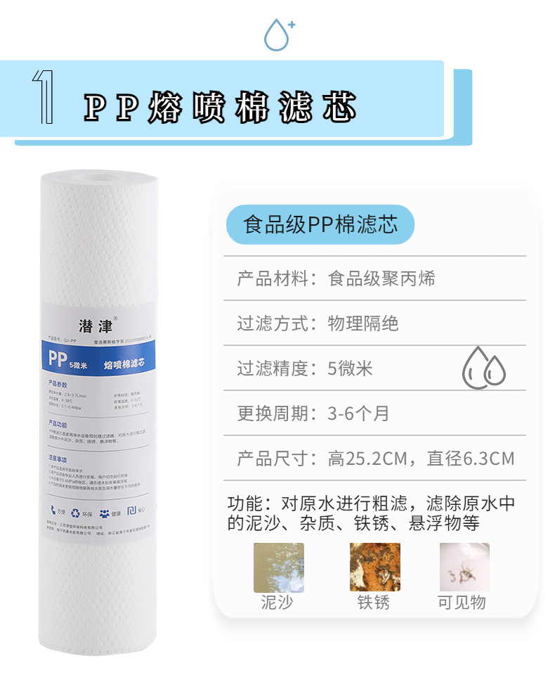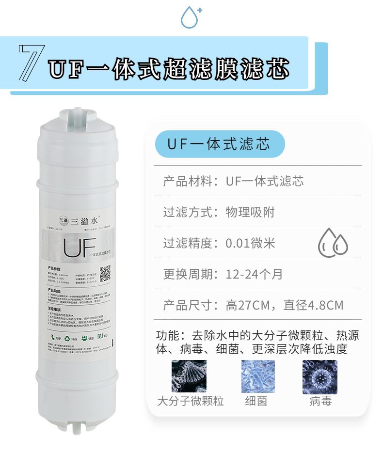 Qinyuan 정수기 필터 요소 UF1 New QG-U-1002/1003 일반 세트 한외 여과 5 단계 필터 요소 전면에 적합