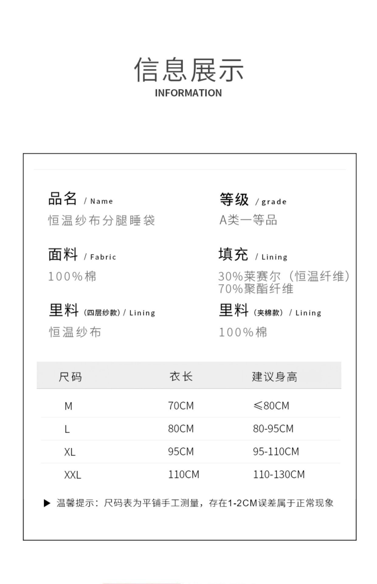 [브로큰 코드 특별 제공] 일정한 온도 아기 침낭 여름 얇은 봄과 가을 겨울 어린이 아기 거즈 다리 안티 킥스토어 가기