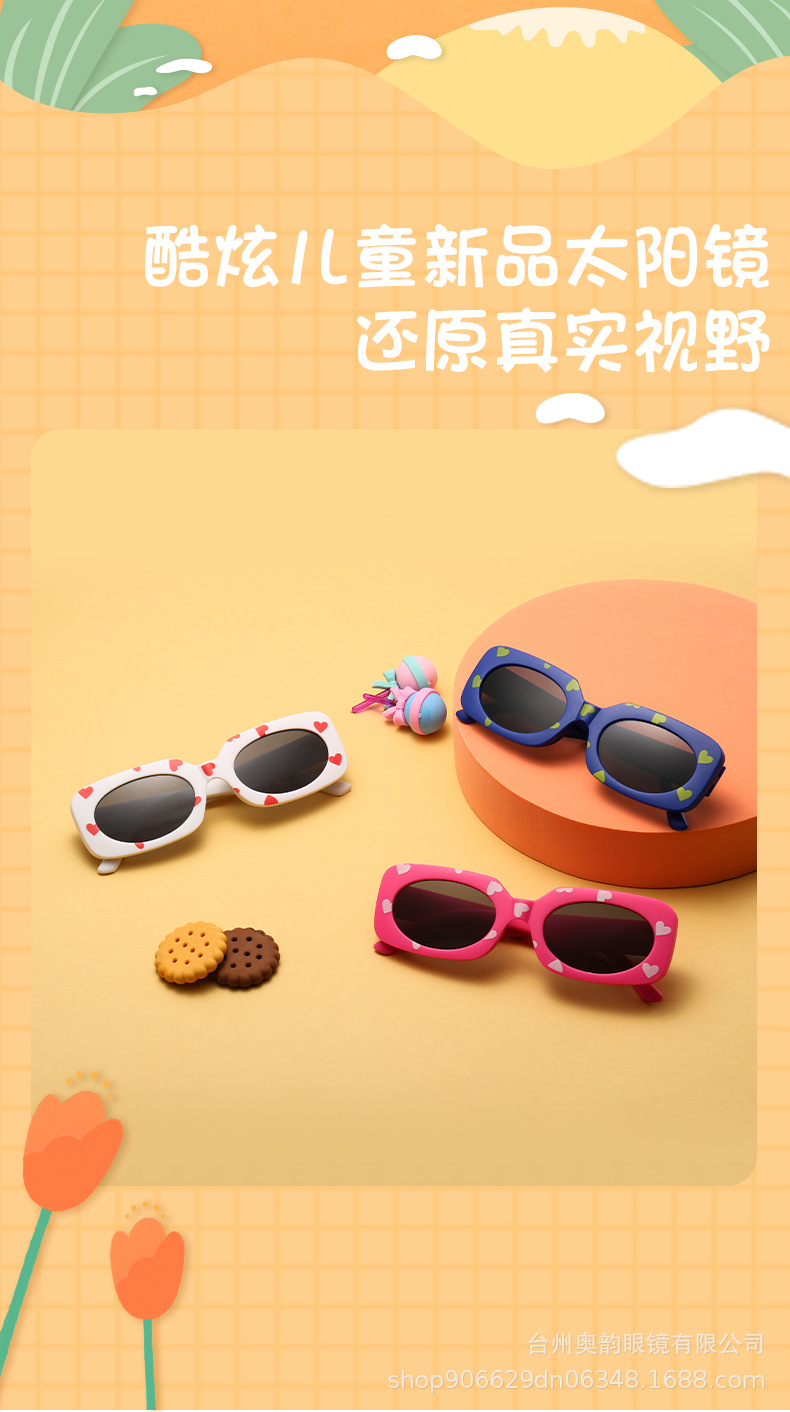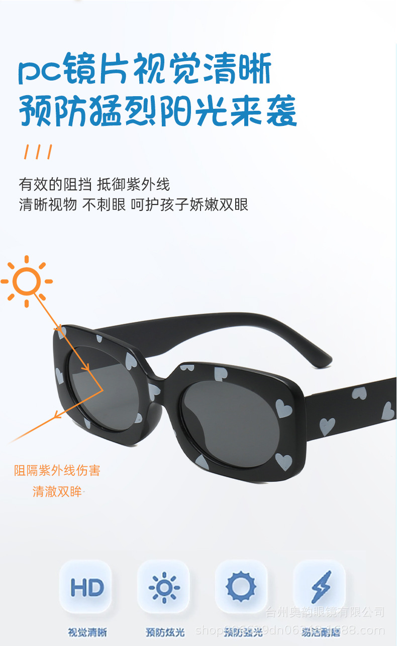 새로운 귀여운 카와이 사랑 아기 선글라스 조수 소년과 소녀 패션 스트리트 샷 UV 보호 선글라스 도매스토어 가기