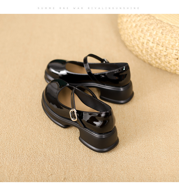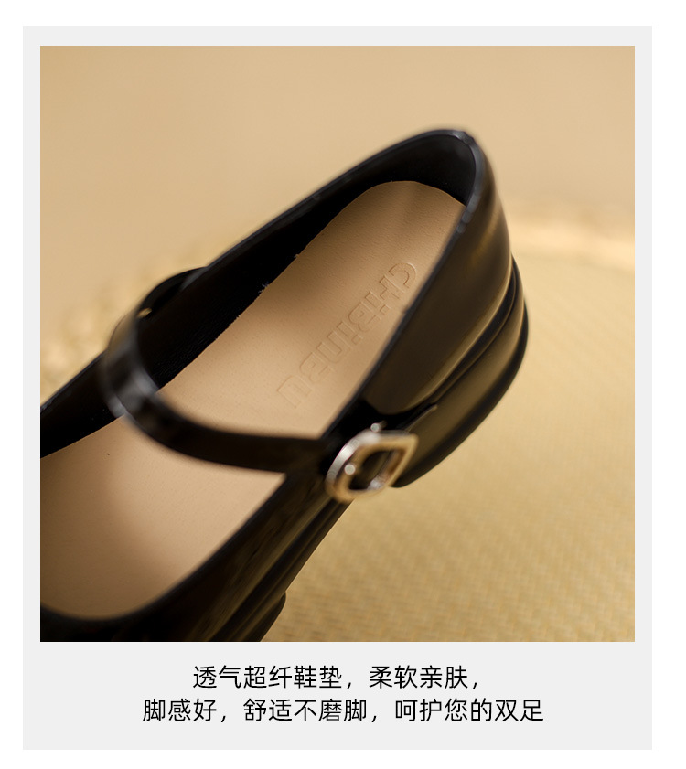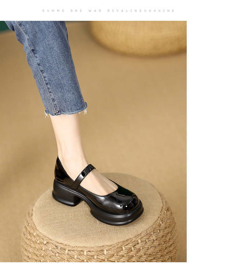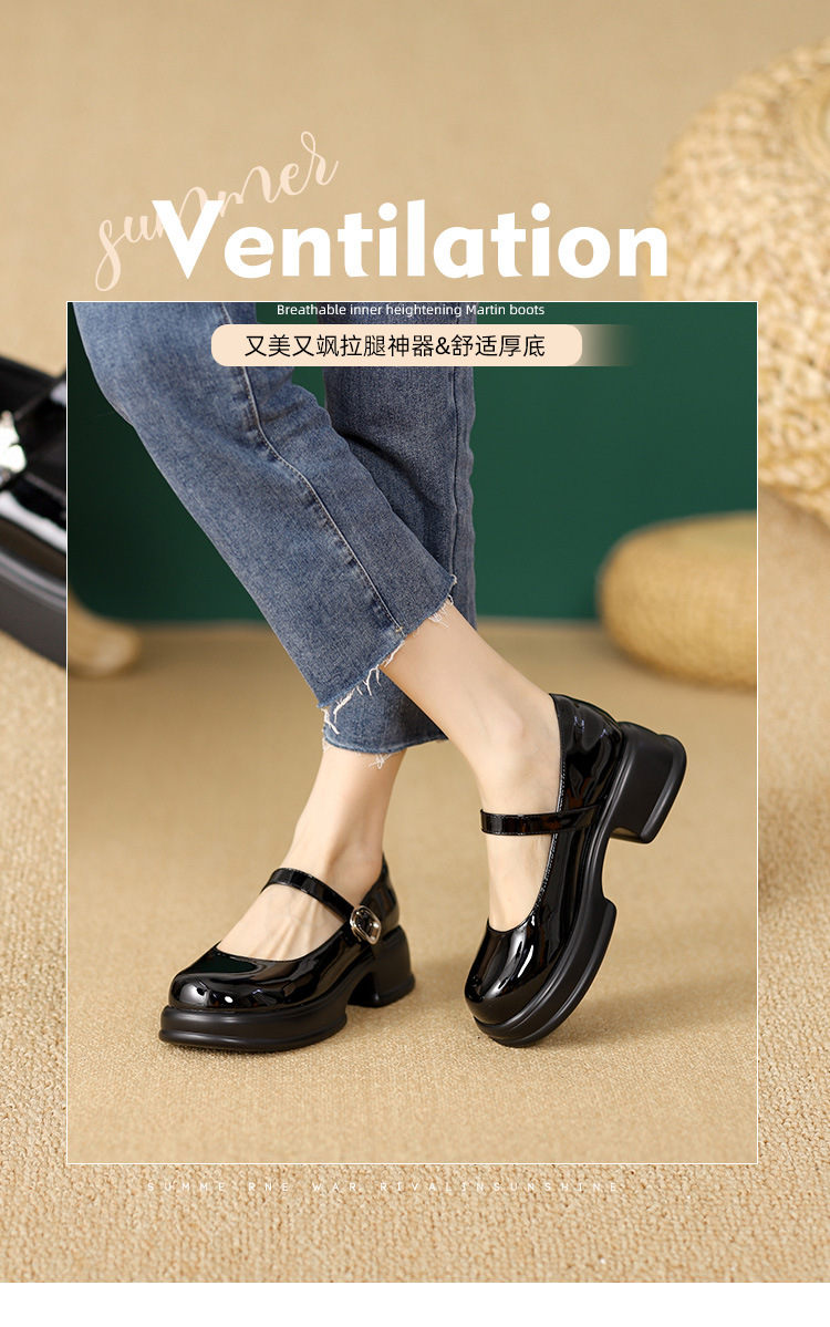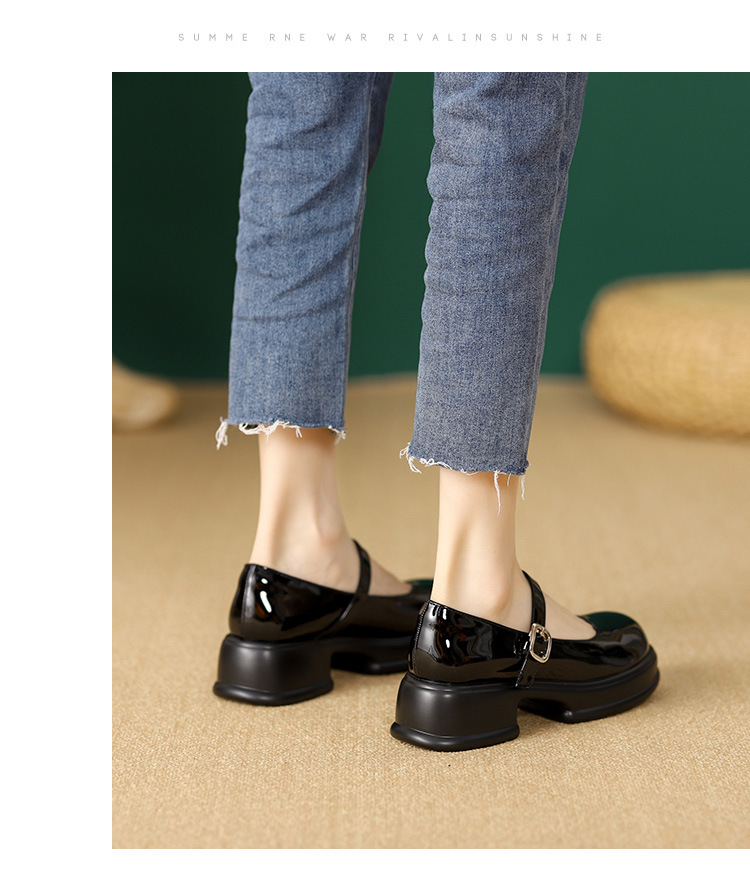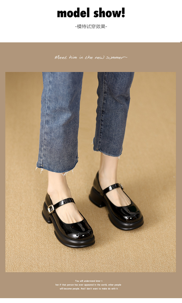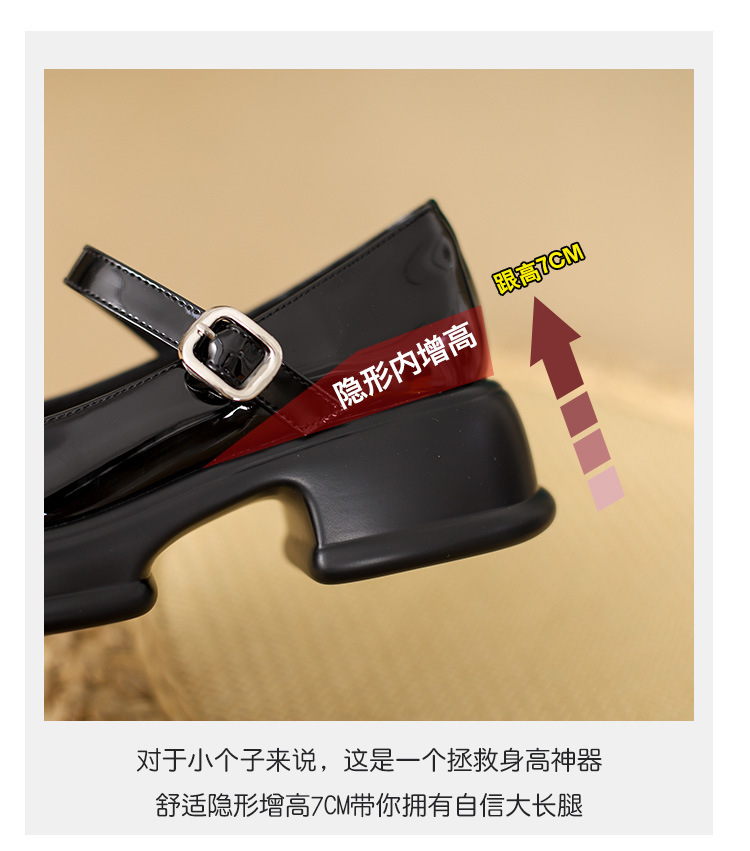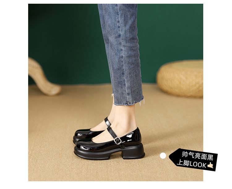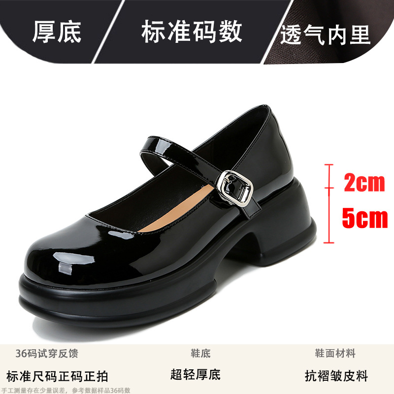 메리제인 여성화 2025년 신상 두꺼운 밑창 키높이 가죽 신발 블랙 얕은 굽 두꺼운 힐 에나멜 가죽 소형 사이즈 단화스토어 가기