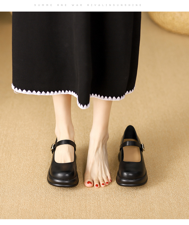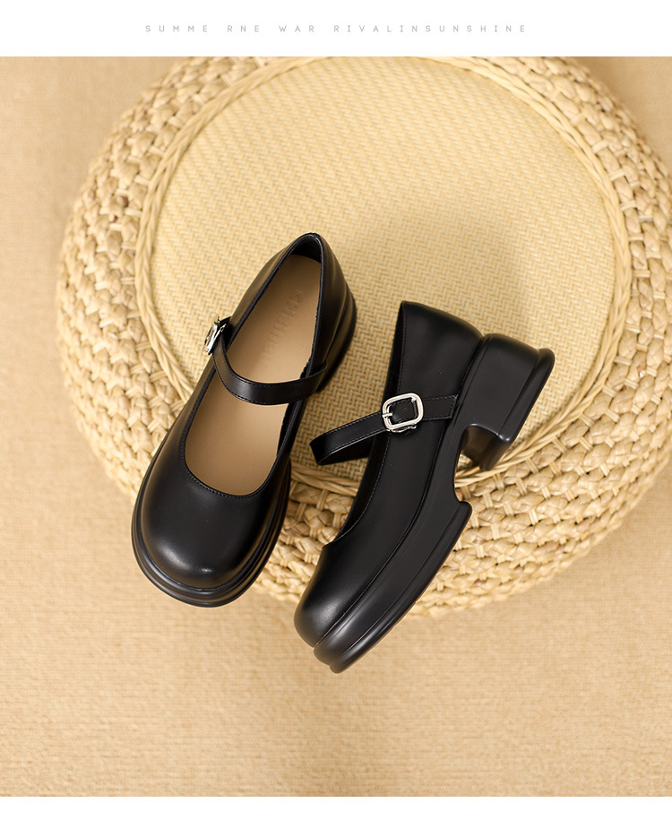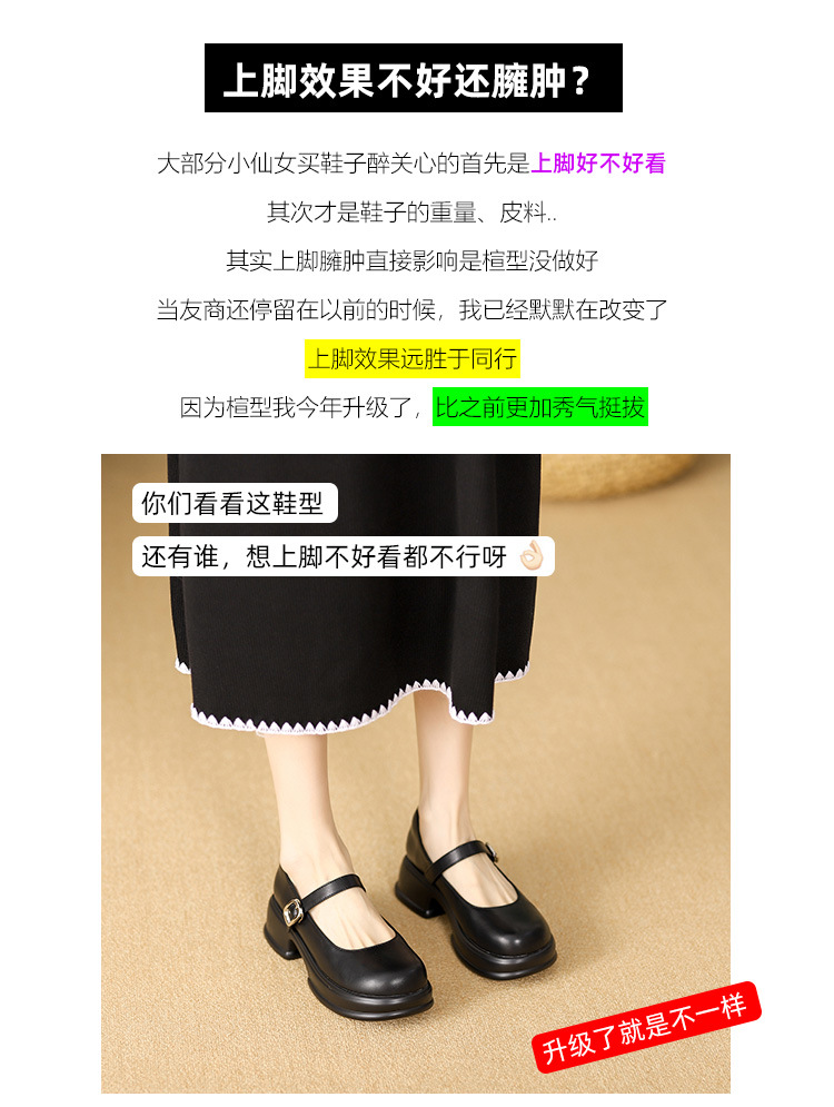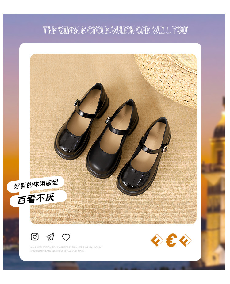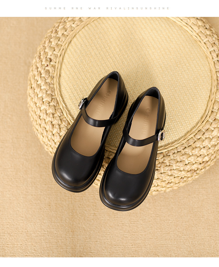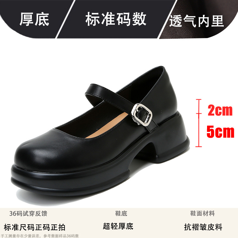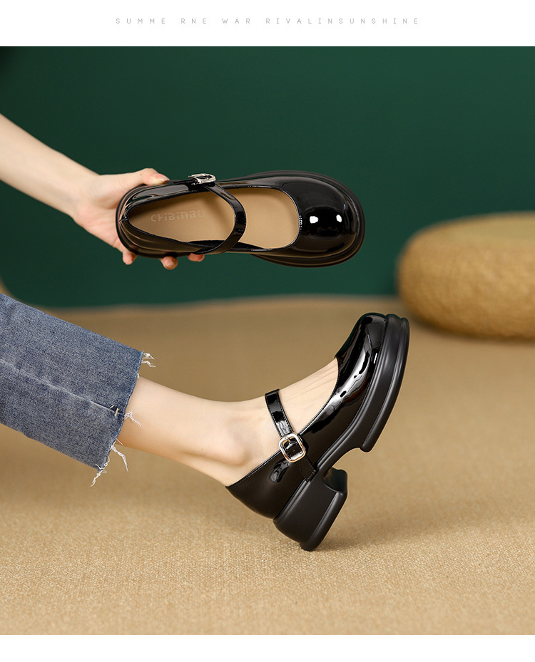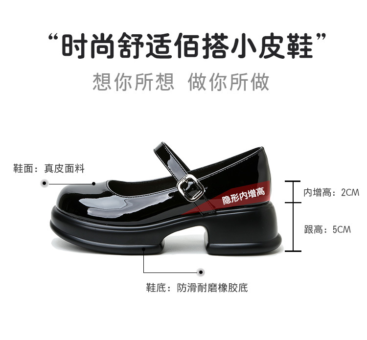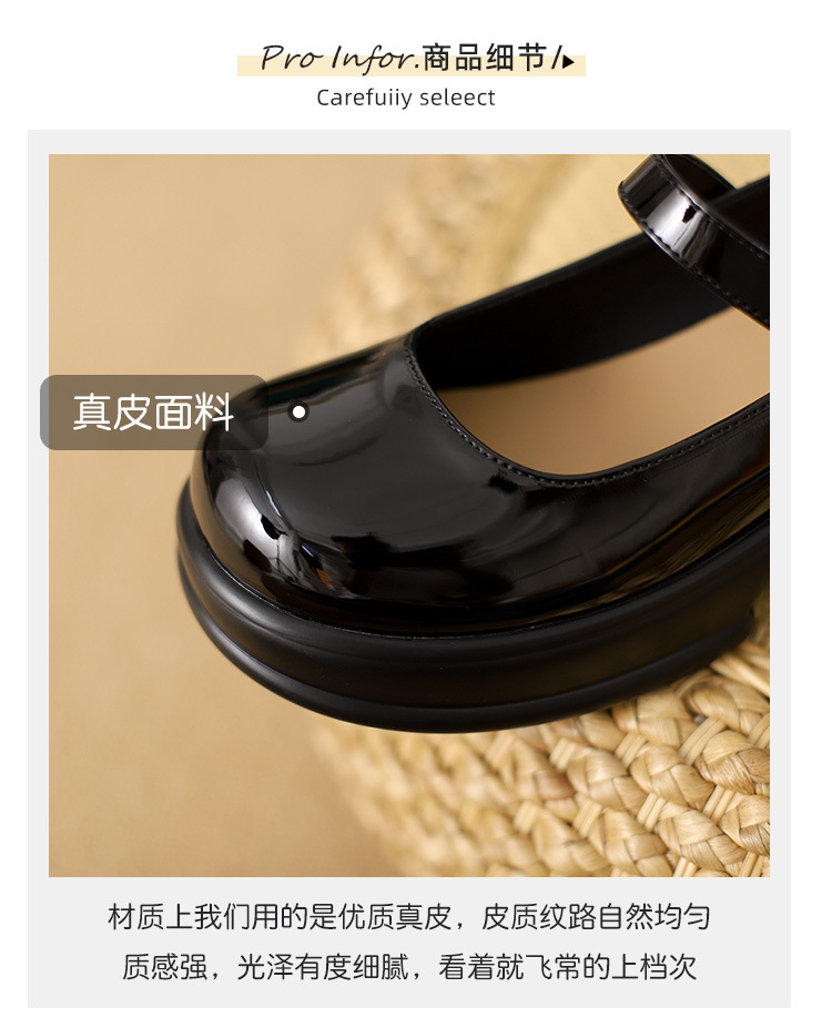 메리제인 여성화 2025년 신상 두꺼운 밑창 키높이 가죽 신발 블랙 얕은 굽 두꺼운 힐 에나멜 가죽 소형 사이즈 단화스토어 가기