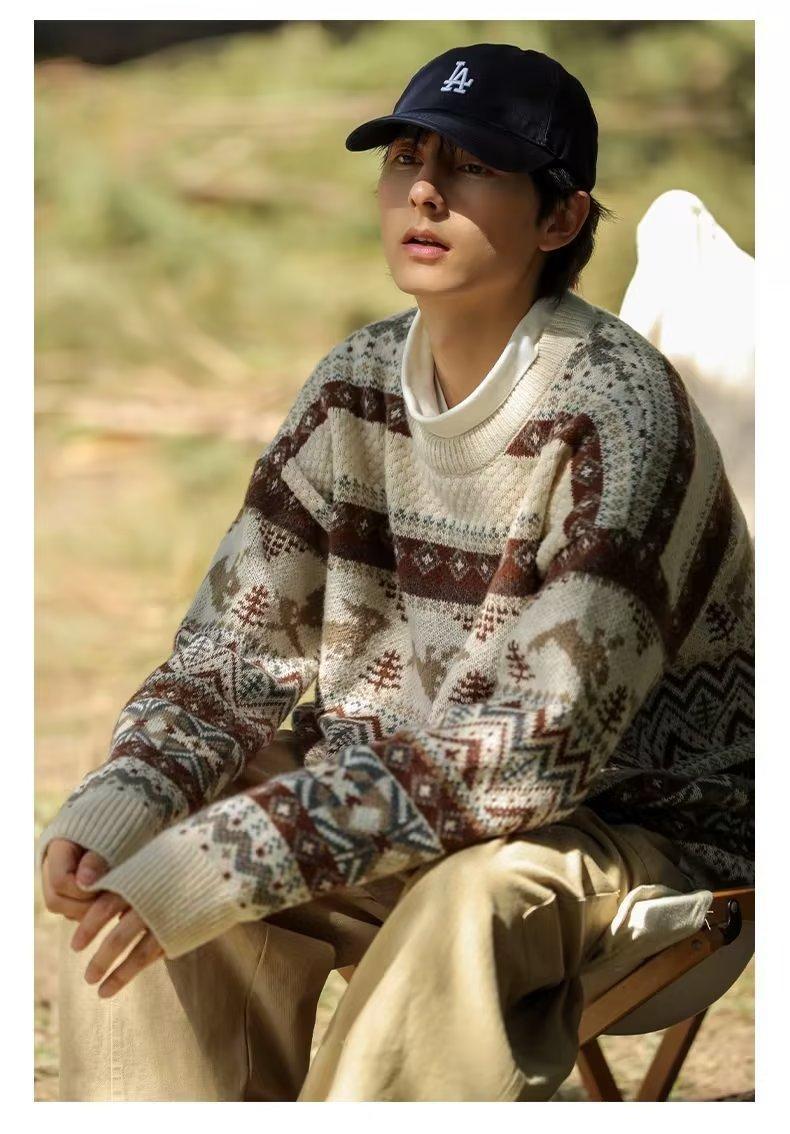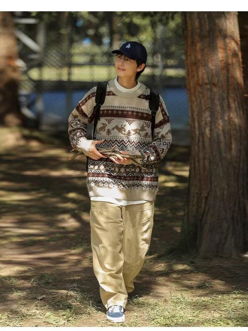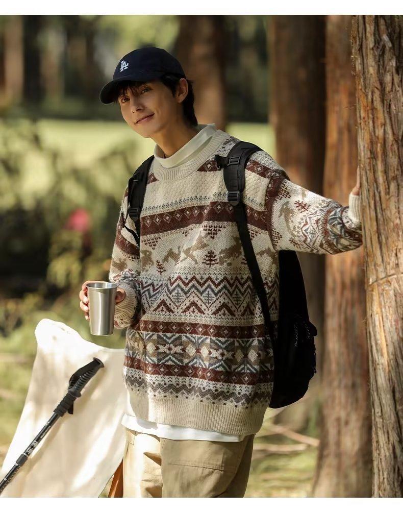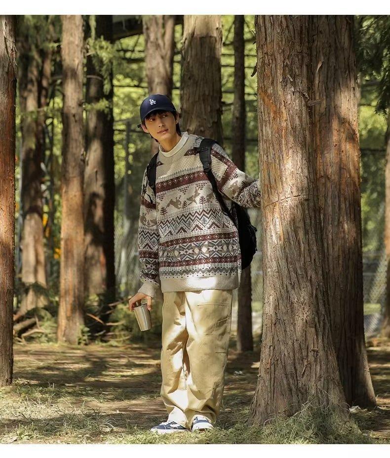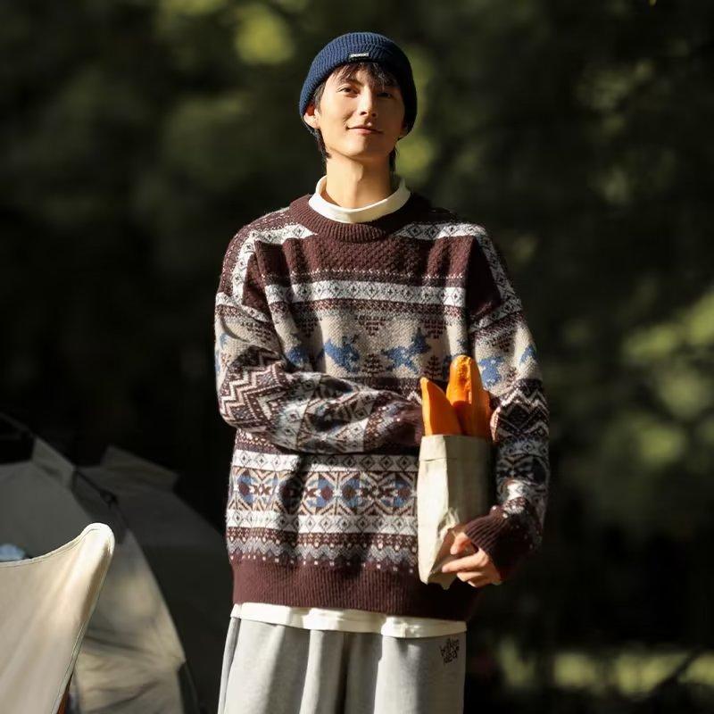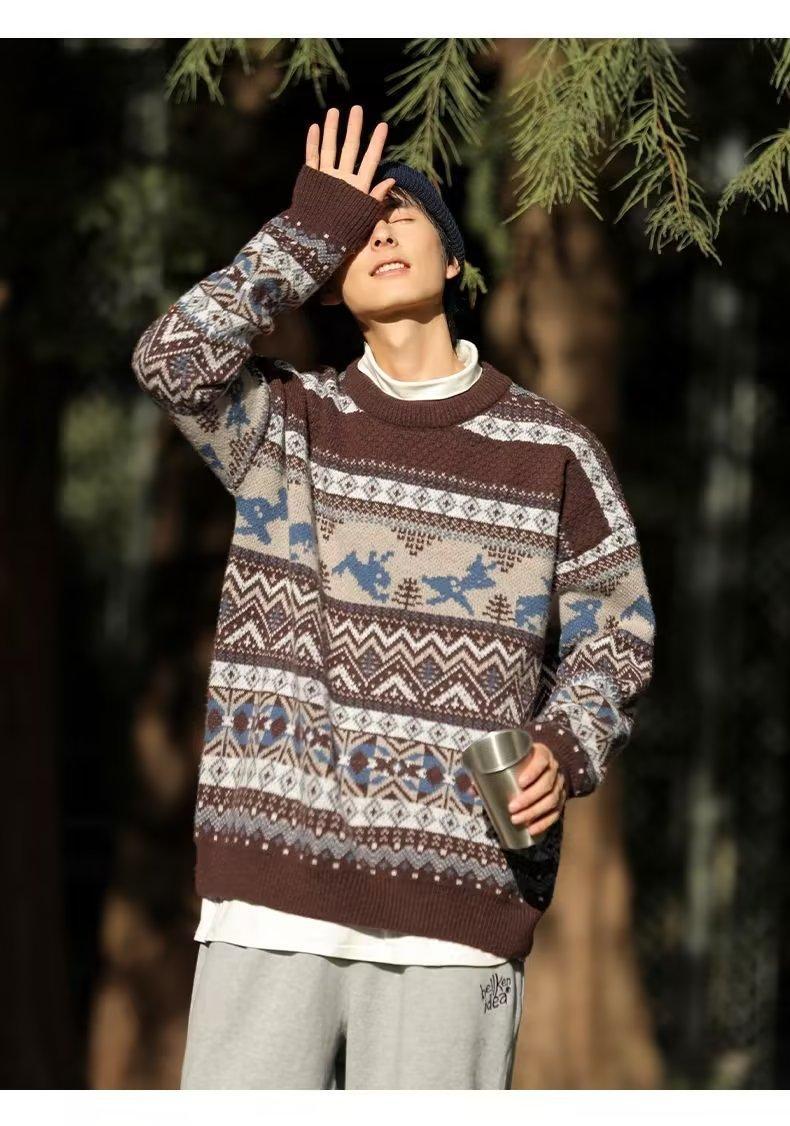 美式复古毛衣男冬季加厚高级感针织衫桐乡慵懒风韩系日系潮牌外套圣诞