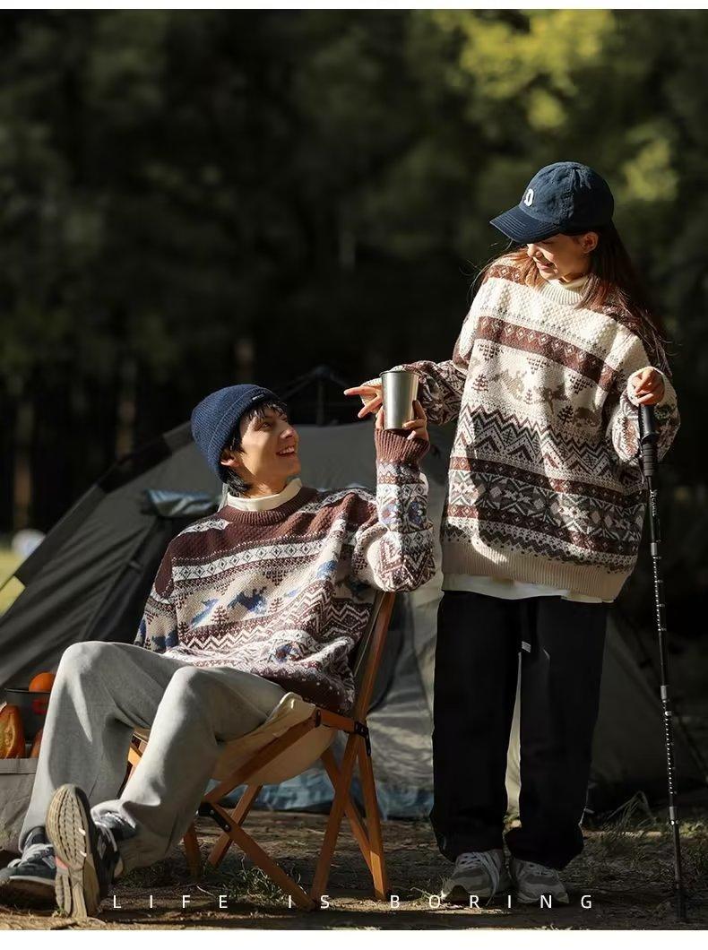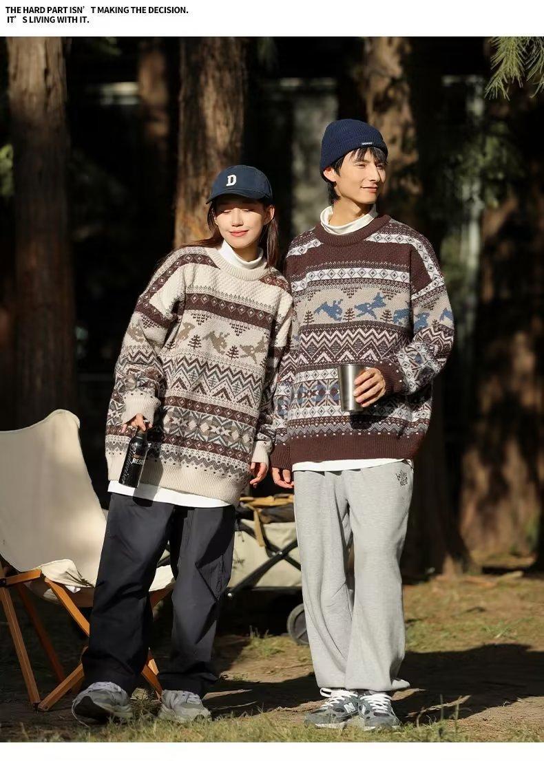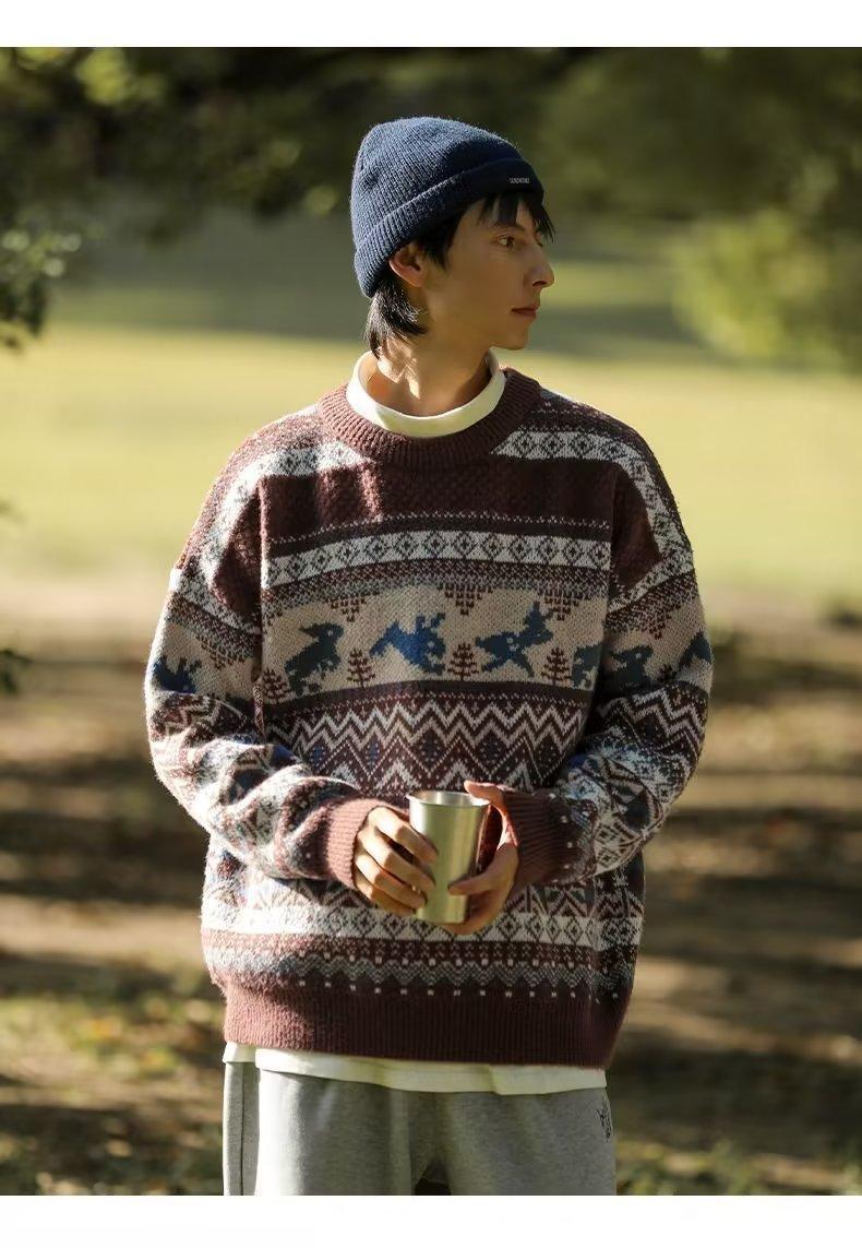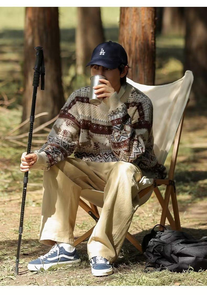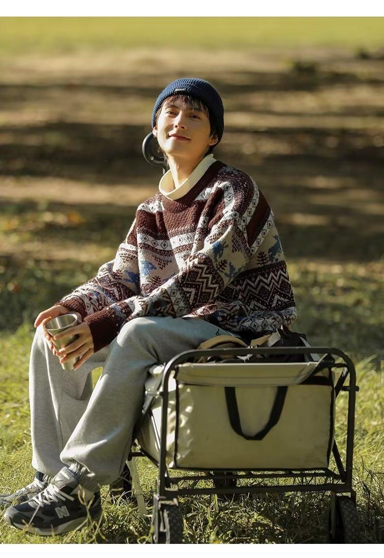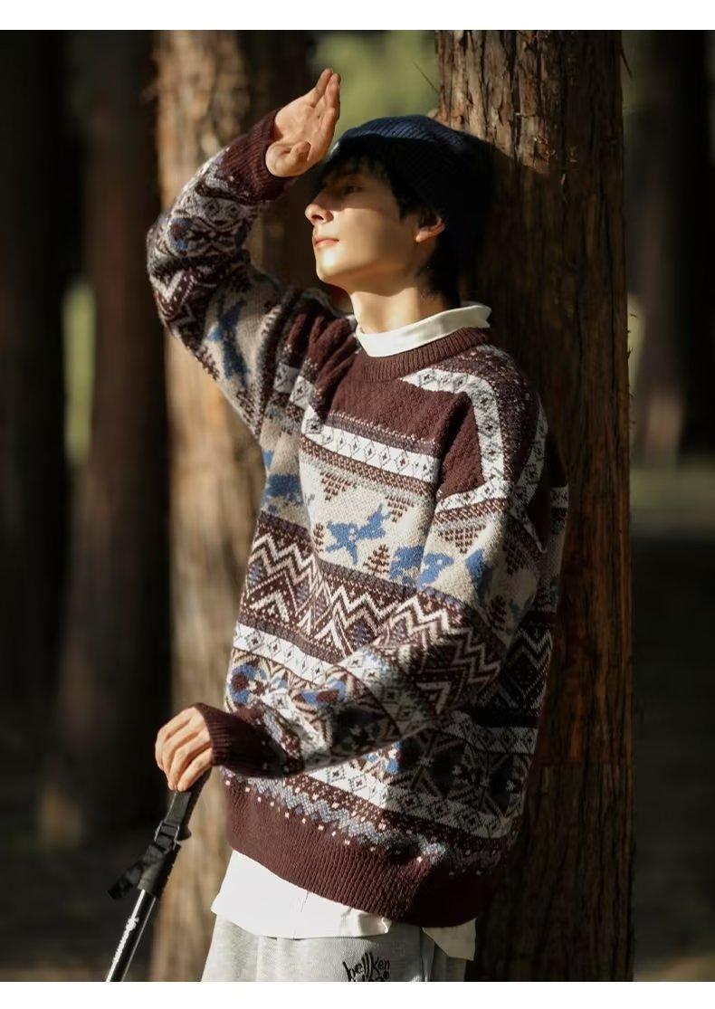 美式复古毛衣男冬季加厚高级感针织衫桐乡慵懒风韩系日系潮牌外套圣诞