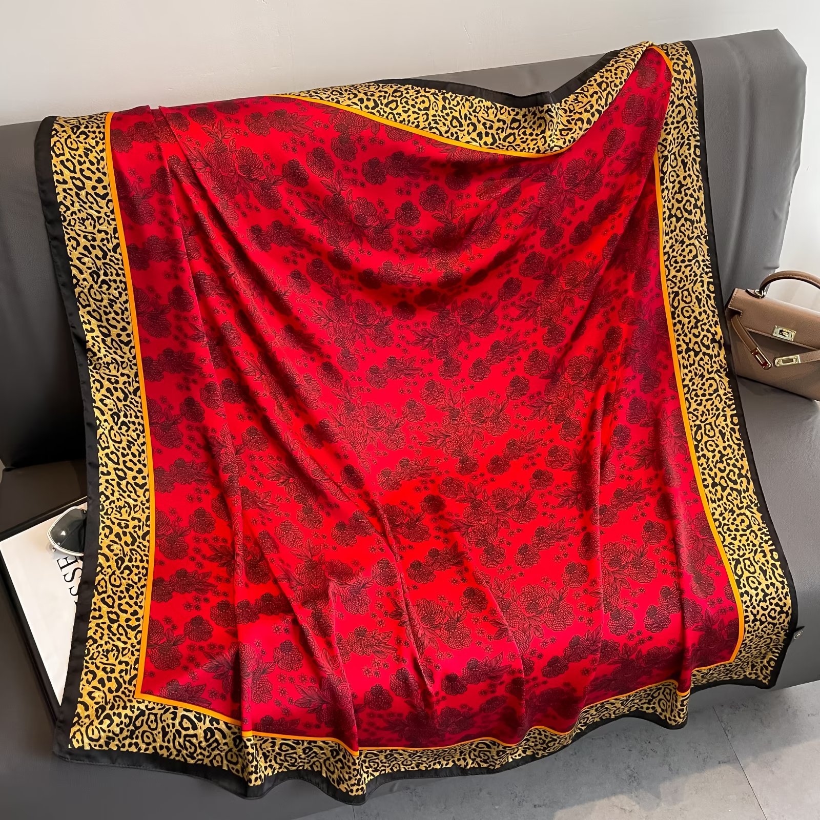 레오파드 무늬 여름 대형 스퀘어 110*110cm 리 브로케이드 새틴 실크 스카프 선 스크린 숄 비치 타월스토어 가기