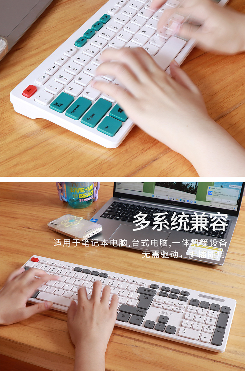 소스 도매 무선 키보드 108 키 필름 키보드 마우스 노트북 외부 초콜릿 키