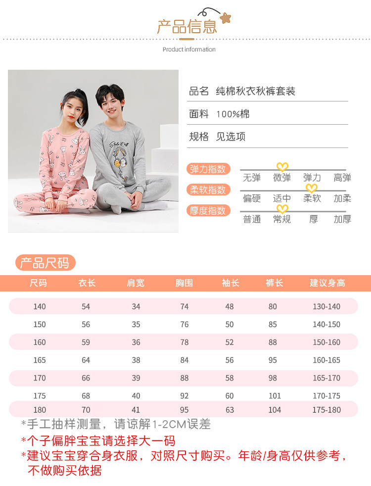 가을과 겨울 순면 가을 옷과 긴 바지 세트 청소년 열 속옷 카테고리 큰 어린이 잠옷 중학생 면 스웨터스토어 가기
