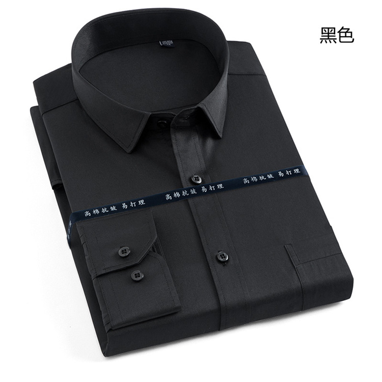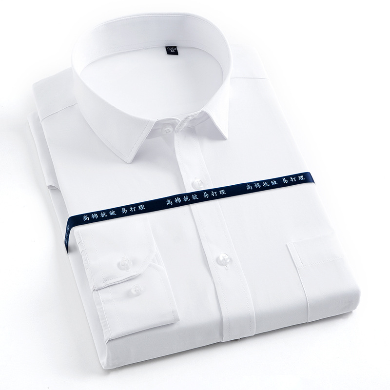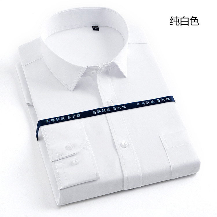 2023 긴팔 셔츠 남성용 퓨어 화이트 셔츠 비즈니스 캐주얼 전문 작업복 단색 셔츠