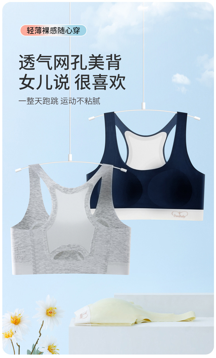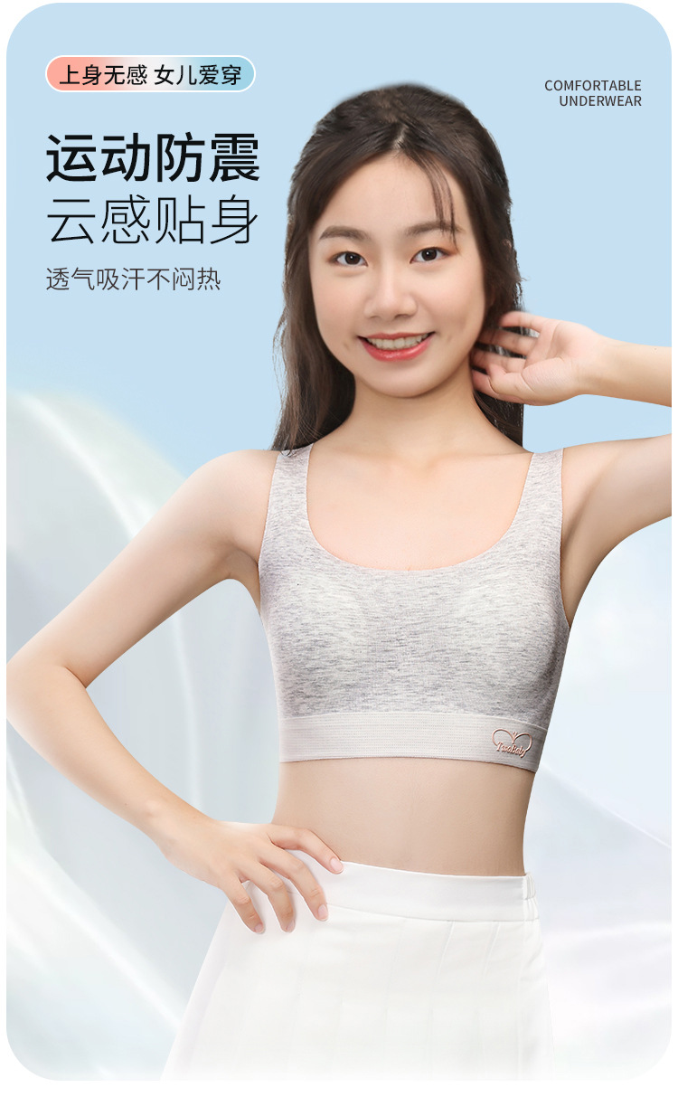 여성용 스포츠 브라 얇은 탱크탑 중학생 소녀용 충격 방지 및 등 굽힘 방지 탱크탑 스타일 학생용스토어 가기