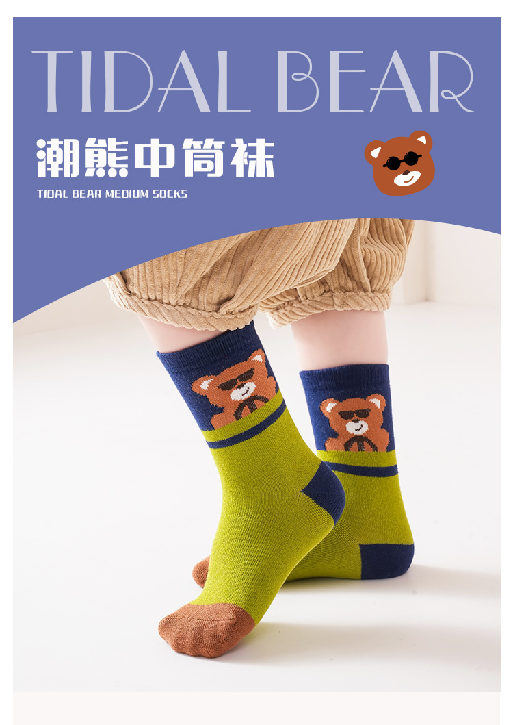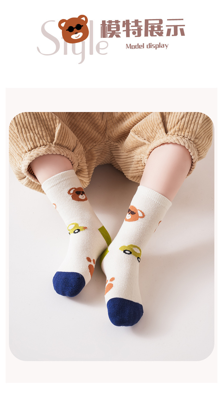 어린이 스포츠 중목 양말 가을 겨울 신상 남아용 트렌디한 곰돌이 높은 양말 귀여운 어린이 면 양말 주지 도매스토어 가기