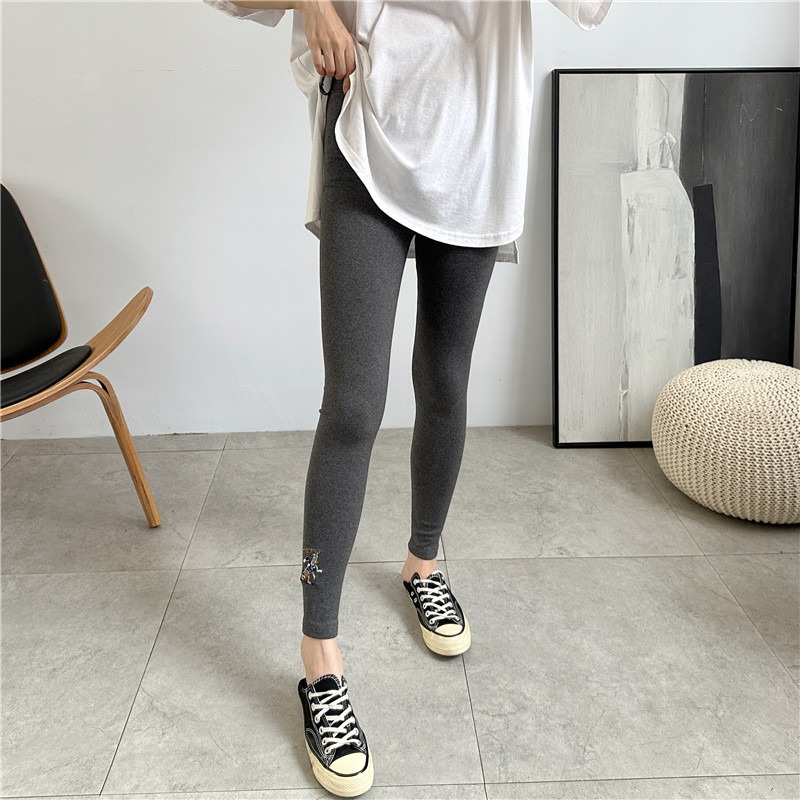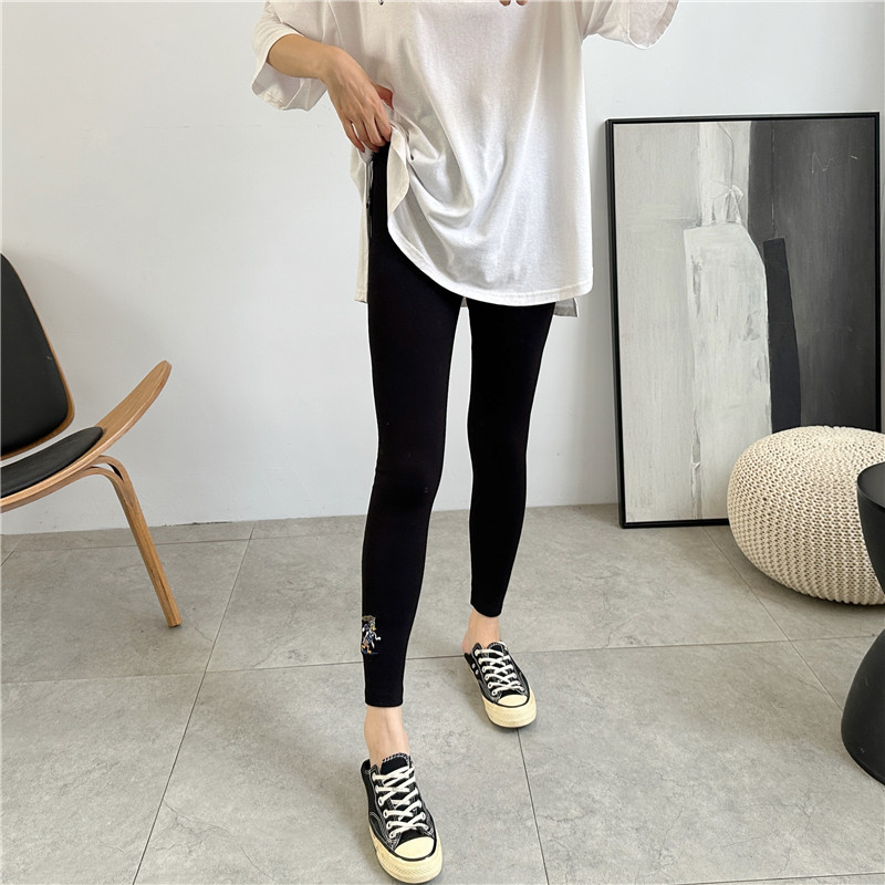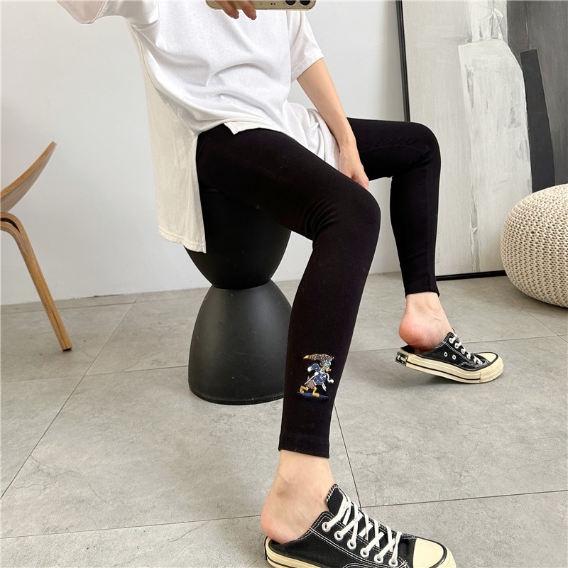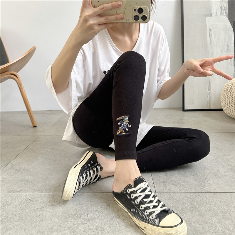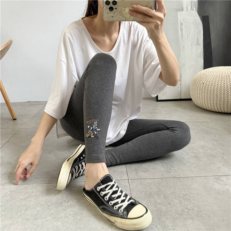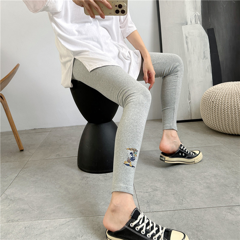 2023 봄과 가을 여성의 겉옷 레깅스 스키니 팬츠 면 위 바지 여성 자수 도날드 덕 스키니 팬츠