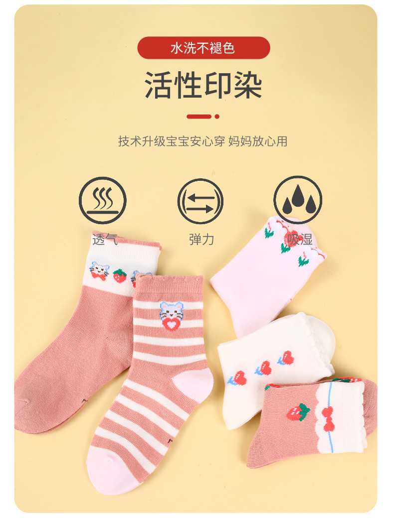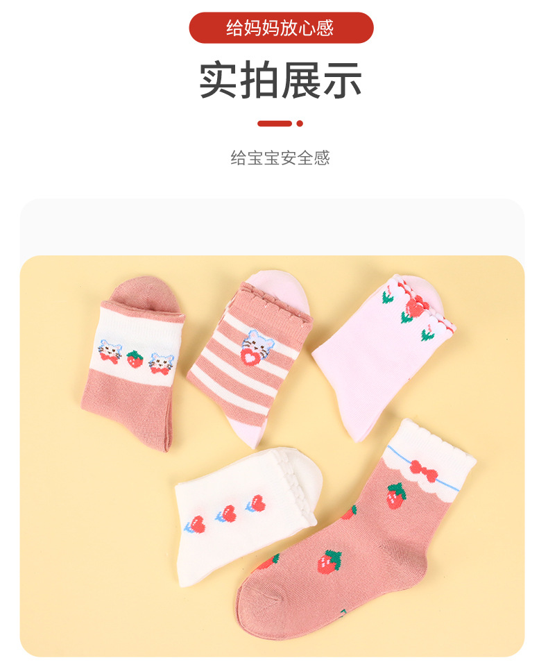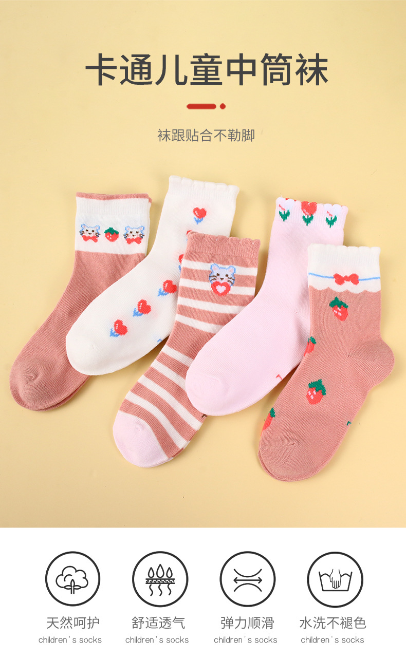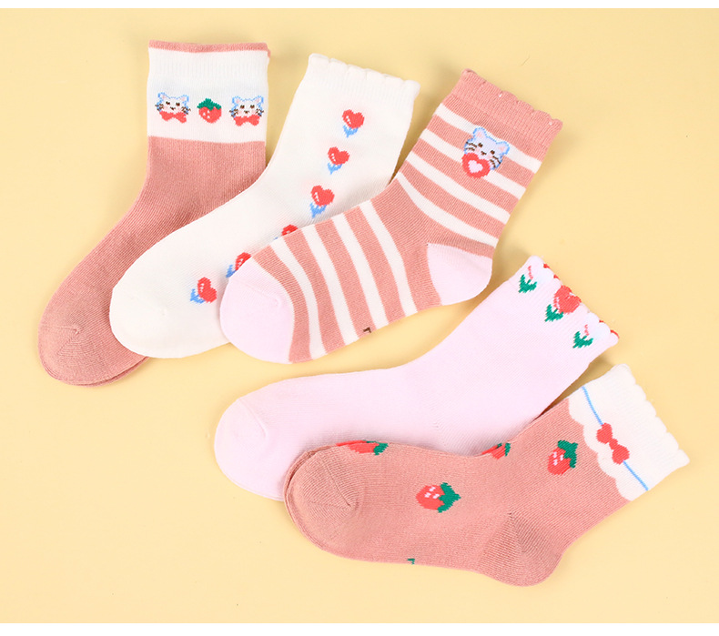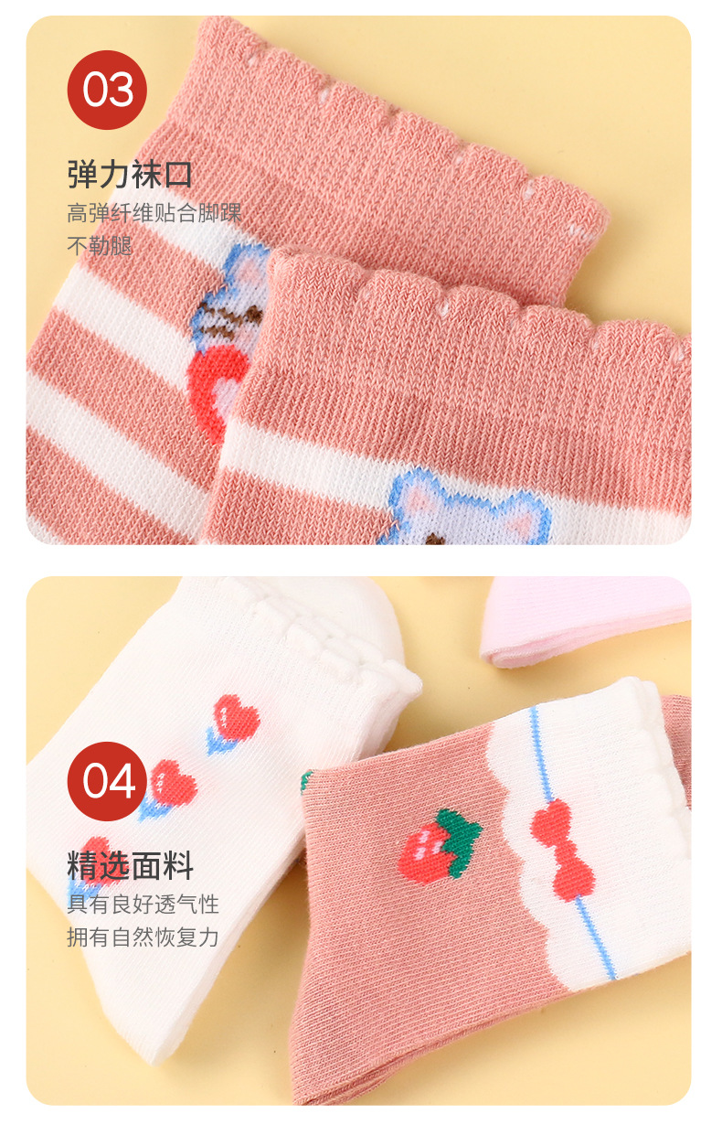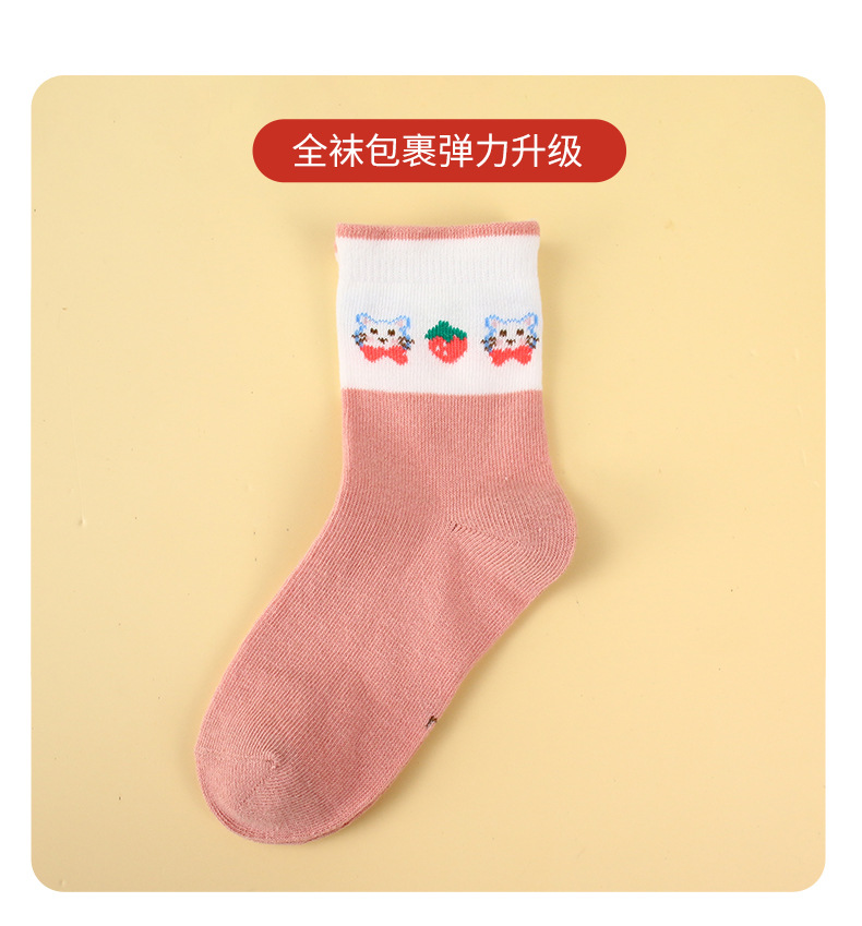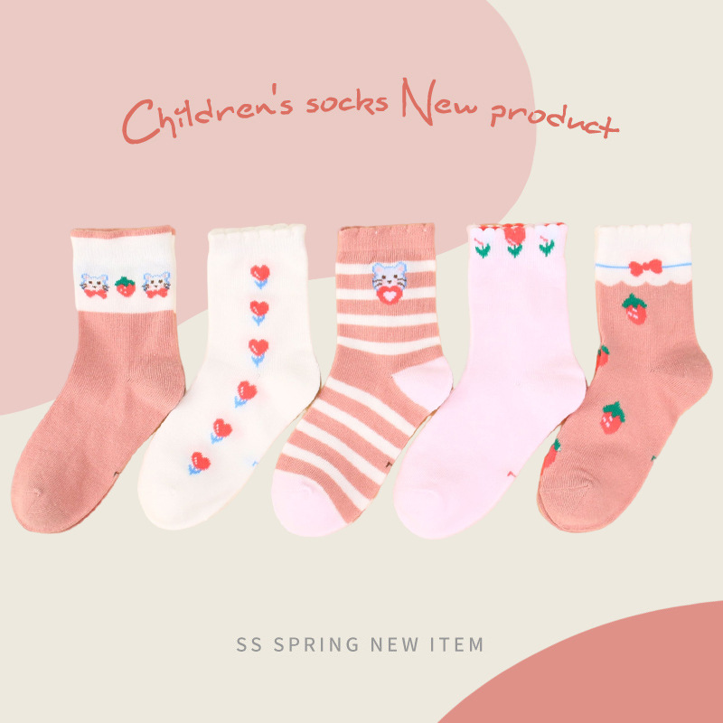 봄과 여름 얇은 어린이 양말 딸기 통기성 학생 중간 튜브 양말 소녀 탄성 느슨한 면 양말 귀여운 스포츠