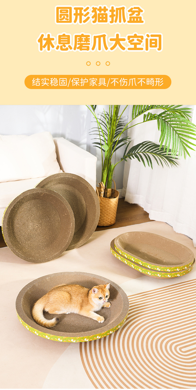 圆形35*35猫抓碗,每箱25个,圆形40*40*8CM猫抓碗,外箱尺寸90*41.5*41.5CM,每箱25个,圆形45*45*9CM猫抓碗,外箱尺寸90*46.5*46.5CM,每箱25个,圆形50*50*9CM猫抓碗,外箱尺寸90*52*52CM,每箱25个。圆形55*55*10CM猫抓碗,外箱尺寸56.5*56.5*73CM,每箱20个。椭圆52.5*37*9CM猫抓碗,外箱尺寸90*53.8*38.5CM,每箱25个。椭圆56.5*42*9CM,外箱尺寸90*58*43.5CM,每箱25个。本店主走批发,请整箱购买,产品是瓦楞纸制品,非整箱购买零售客户快递爆力可能会导致产品变形,不验货签收售后自理,本店概不负责。